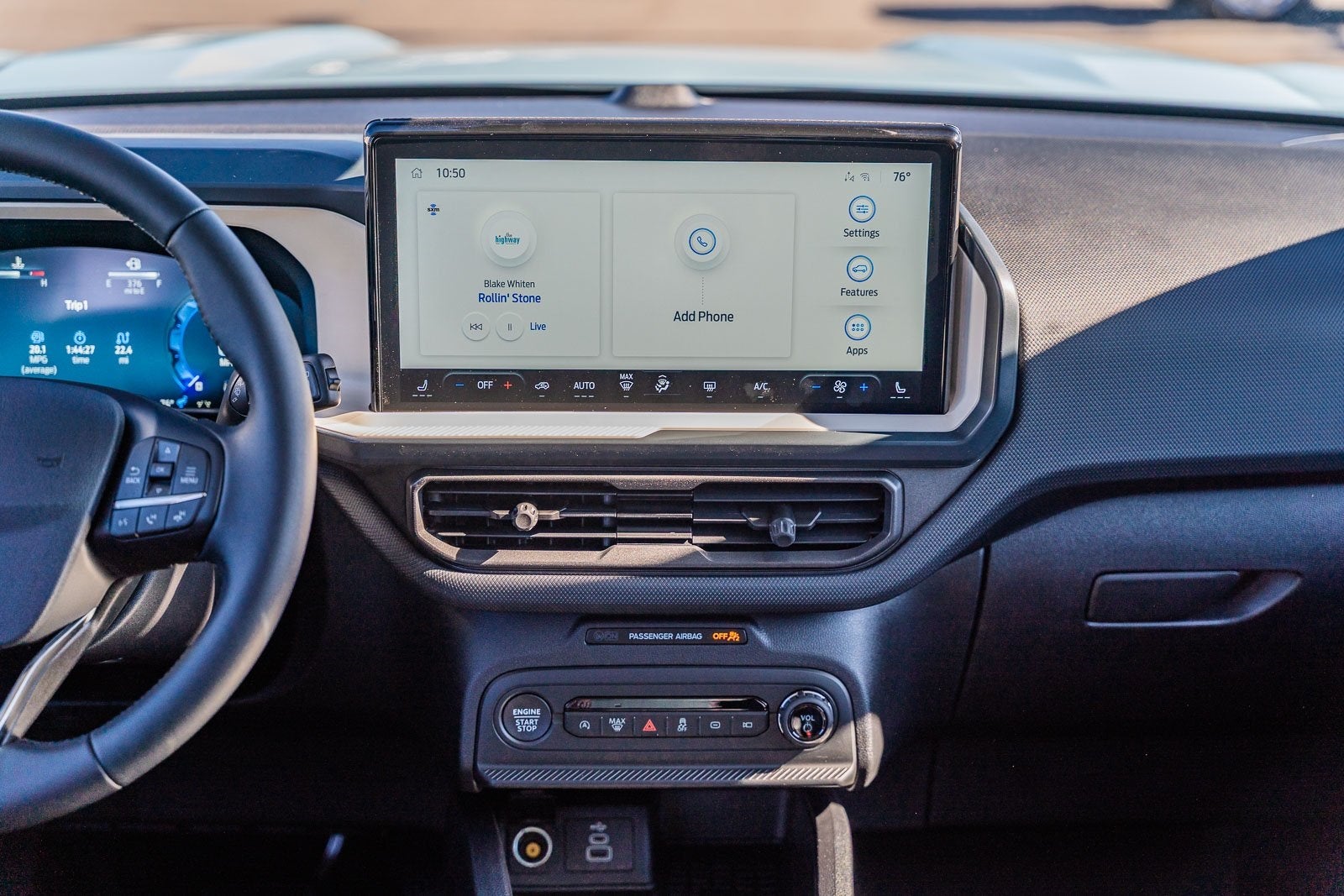 This vehicle comes equipped with Convenience Package (Front Driver/Passenger Seat Back Map Pockets, Heated 8-Way Power Driver's Seat, LED Fog Lamps, Premium Wrapped Steering Wheel, and Universal Garage Door Opener (UGDO)), Equipment Group 250A, 4-Wheel Disc Brakes, 6 Speakers, ABS brakes, Air Conditioning, Alloy wheels, AM/FM radio: SiriusXM, AM/FM Stereo, Auto High-beam Headlights, Automatic temperature control, Brake assist, Compass, Delay-off headlights, Driver door bin, Driver vanity mirror, Dual front impact airbags, Dual front side impact airbags, Electronic Stability Control, Emergency communication system: SYNC 4 911 Assist, Four wheel independent suspension, Front & Rear Floor Liners w/o Carpet Mats, Front anti-roll bar, Front Bucket Seats, Front Center Armrest, Front License Plate Bracket, Front reading lights, Fully automatic headlights, Heated door mirrors, Illuminated entry, Knee airbag, Low tire pressure warning, Occupant sensing airbag, Outside temperature display, Overhead airbag, Overhead console, Panic alarm, Passenger door bin, Passenger vanity mirror, Plaid Cloth Front Bucket Seats, Power door mirrors, Power Moonroof, Power steering, Power windows, Radio data system, Rear anti-roll bar, Rear Parking Sensors, Rear reading lights, Rear seat center armrest, Rear window defroster, Rear window wiper, Remote keyless entry, Security system, SiriusXM, Speed control, Speed-sensing steering, Speed-Sensitive Wipers, Split folding rear seat, Steering wheel mounted audio controls, SYNC 4 w/Enhanced Voice Recognition, Tachometer, Telescoping steering wheel, Tilt steering wheel, Traction control, Trip computer, Variably intermittent wipers, and Wheels: 17 Oxford White-Painted Aluminum.