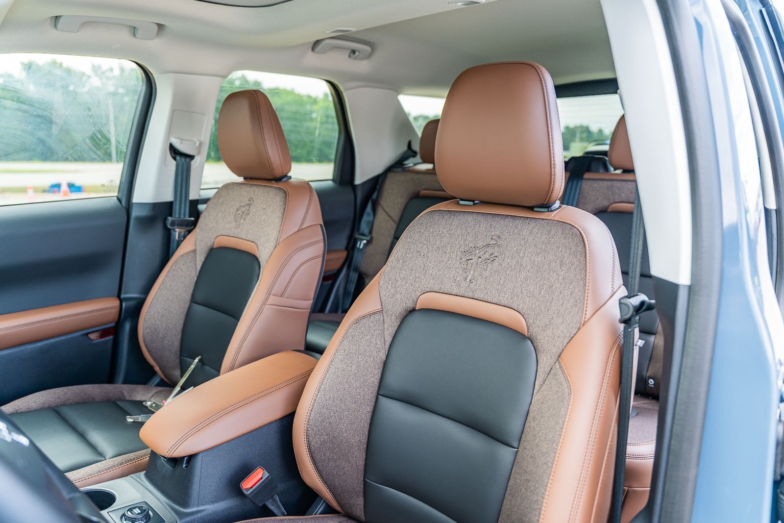 This vehicle comes equipped with Equipment Group 300A, Outer Banks Tech Package+ (B&O Sound System by Bang & Olufsen, Connected Navigation, and HD Radio), 360-Degree Camera w/Trail & Split View, 4-Wheel Disc Brakes, 6 Speakers, ABS brakes, Air Conditioning, Alloy wheels, AM/FM radio: SiriusXM, AM/FM Stereo, Auto High-beam Headlights, Auto-dimming Rear-View mirror, Automatic temperature control, Brake assist, Compass, Delay-off headlights, Driver door bin, Driver vanity mirror, Dual front impact airbags, Dual front side impact airbags, Electronic Stability Control, Emergency communication system: SYNC 4 911 Assist, Four wheel independent suspension, Front & Rear Floor Liners w/o Carpet Mats, Front anti-roll bar, Front Bucket Seats, Front Center Armrest, Front Driver/Passenger Seat Back Map Pockets, Front dual zone A/C, Front fog lights, Front License Plate Bracket, Front Parking Sensors, Front reading lights, Fully automatic headlights, Garage door transmitter, Heated door mirrors, Heated front seats, Heated steering wheel, Illuminated entry, Knee airbag, Low tire pressure warning, Memory seat, Occupant sensing airbag, Outside temperature display, Overhead airbag, Overhead console, Panic alarm, Passenger door bin, Passenger vanity mirror, Power door mirrors, Power driver seat, Power Moonroof, Power passenger seat, Power steering, Power windows, Premium Trimmed Front Bucket Seats w/Ebony/Roast, Radio data system, Rain sensing wipers, Rear anti-roll bar, Rear Parking Sensors, Rear reading lights, Rear seat center armrest, Rear window defroster, Rear window wiper, Remote keyless entry, Reverse Brake Assist, Security system, SiriusXM, Speed control, Speed-sensing steering, Speed-Sensitive Wipers, Split folding rear seat, Steering wheel mounted audio controls, SYNC 4 w/Enhanced Voice Recognition, Tachometer, Telescoping steering wheel, Tilt steering wheel, Traction control, Trip computer, Variably intermittent wipers, and Wheels: 18 Ebony Black-Painted Aluminum.