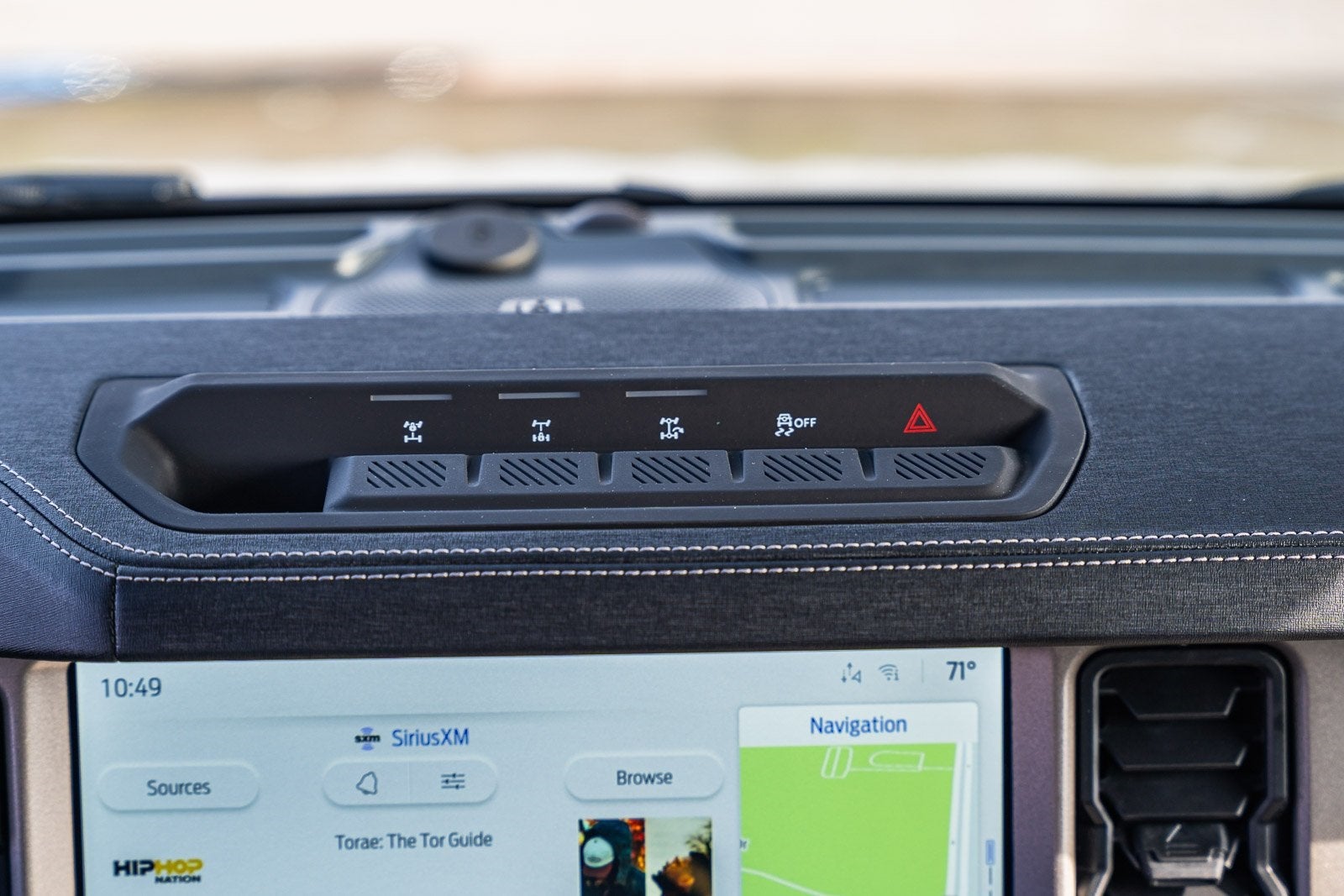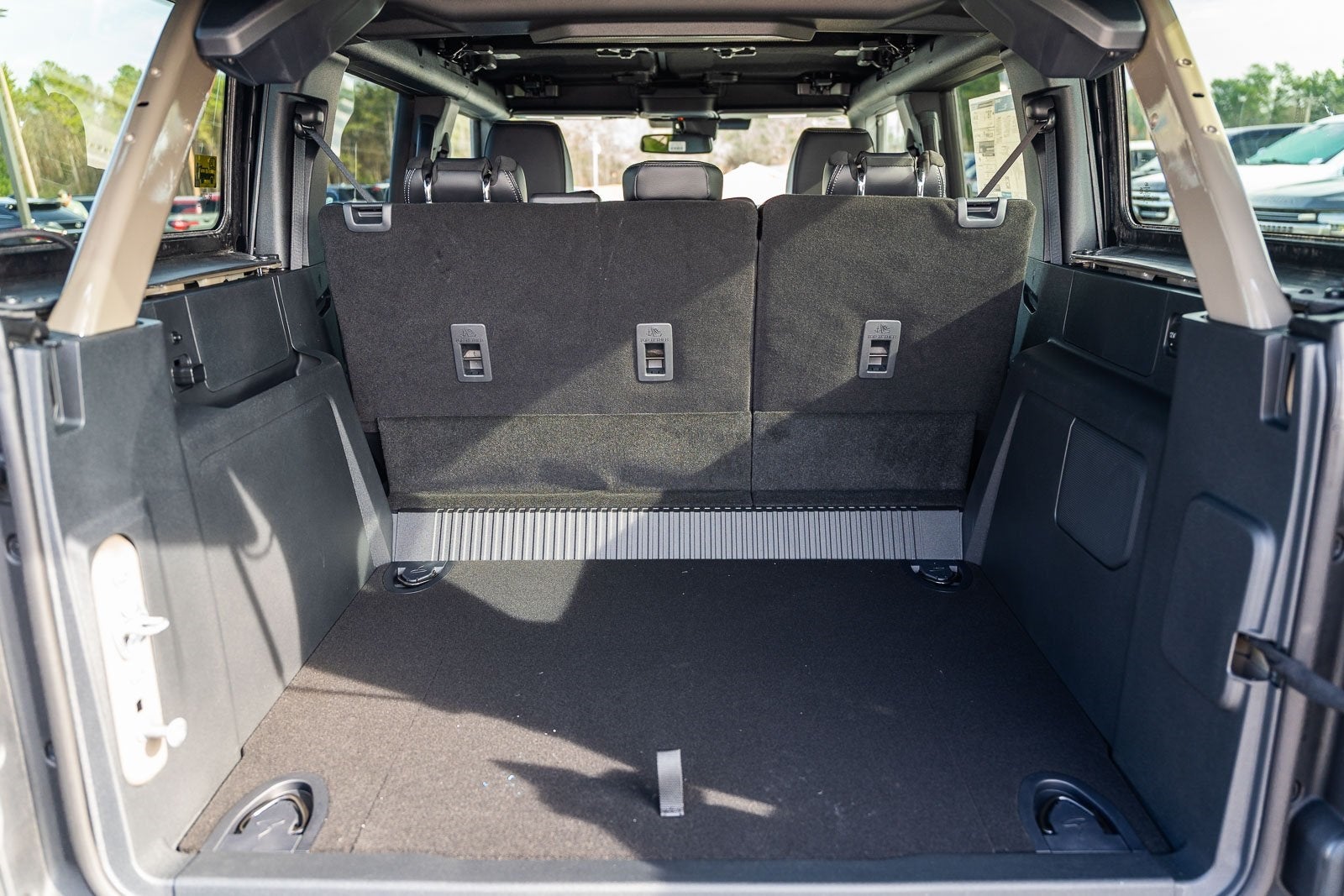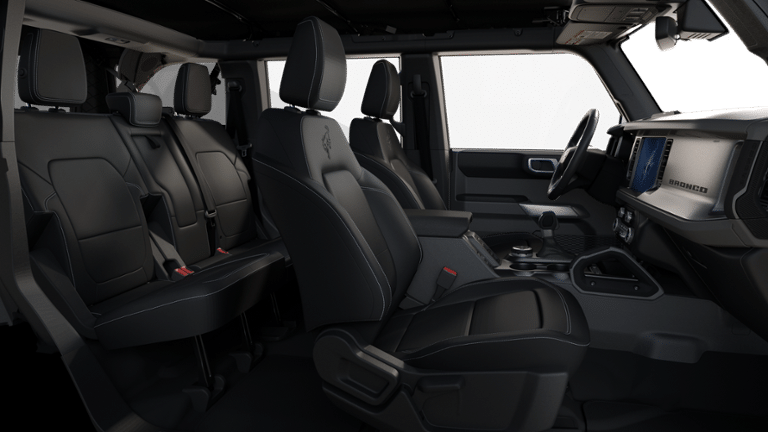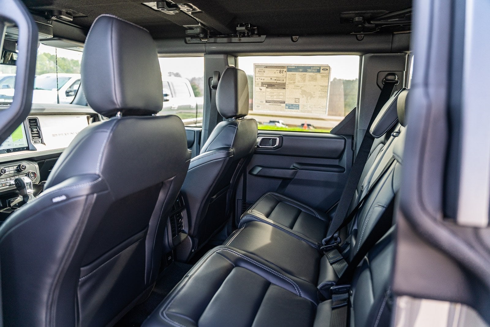This vehicle comes equipped with Equipment Group 314A Lux Package (360-Degree Camera, Adaptive Cruise Control, Evasive Steering Assist, Front Parking Sensors, Information on Demand Panel, Radio: B&O Sound System by Bang & Olufsen, Sideview Mirrors, and Universal Garage Door Opener), Sasquatch Package (High Clearance Fender Flares, High Clearance Suspension, Position-Sensitive Bilstein Shock Absorbers, and Wheels: 17 Carbonized Gray Painted Aluminum), 18 Bright Machined Aluminum Wheels, 4-Wheel Disc Brakes, 7 Speakers, ABS brakes, Air Conditioning, Alloy wheels, AM/FM radio: SiriusXM with 360L, AM/FM Stereo, Auto High-beam Headlights, Auto-dimming Rear-View mirror, Automatic temperature control, Brake assist, Carbonized Gray Molded-In-Color Hard Top, Compass, Connected Navigation, Delay-off headlights, Driver door bin, Driver vanity mirror, Dual front impact airbags, Dual front side impact airbags, Electronic Stability Control, Emergency communication system: 911 Assist, Exterior Parking Camera Rear, Front anti-roll bar, Front Bucket Seats, Front Center Armrest, Front dual zone A/C, Front fog lights, Front License Plate Bracket, Front reading lights, Front wheel independent suspension, Fully automatic headlights, Hard Top Sound Deadening Headliner, Heated door mirrors, Heated front seats, Heated Leather-Trimmed/Vinyl Bucket Seats, Heated steering wheel, Illuminated entry, Integrated roll-over protection, Internet access capable: FordPass Connect, Leather Shift Knob, Low tire pressure warning, Navigation system: Connected Navigation, Occupant sensing airbag, Outside temperature display, Overhead airbag, Overhead console, Panic alarm, Passenger door bin, Passenger vanity mirror, Power door mirrors, Power driver seat, Power passenger seat, Power steering, Power windows, Radio data system, Rear seat center armrest, Rear-Window Defroster & Washer, Remote keyless entry, Security system, SiriusXM w/360L, Speed control, Split folding rear seat, Steering wheel mounted audio controls, SYNC 4, Tachometer, Telescoping steering wheel, Tilt steering wheel, Traction control, Trip computer, Variably intermittent wipers, Voltmeter, and Wheels: 17 Black High Gloss-Painted Aluminum (64X).
