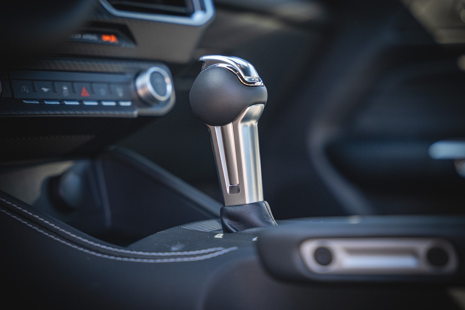 This vehicle comes equipped with Equipment Group 400A Standard Package, Ford Co-Pilot360 Assist+ (Pre-Collision Assist w/Automatic Emergency Braking), GT Performance Package, 4-Wheel Disc Brakes, ABS brakes, Air Conditioning, Alloy wheels, AM/FM Stereo, Auto High-beam Headlights, Automatic temperature control, B&O Sound System by Bang & Olufsen w/12 Speakers, Brake assist, Bumpers: body-color, Compass, Delay-off headlights, Driver door bin, Driver vanity mirror, Dual front impact airbags, Dual front side impact airbags, Electronic Stability Control, Emergency communication system: 911 Assist, Exterior Parking Camera Rear, Four wheel independent suspension, Front anti-roll bar, Front Bucket Seats, Front Center Armrest, Front dual zone A/C, Front reading lights, Fully automatic headlights, Illuminated entry, Internet access capable: FordPass Connect, Knee airbag, Leather Shift Knob, Leather steering wheel, Low tire pressure warning, Occupant sensing airbag, Outside temperature display, Overhead airbag, Overhead console, Panic alarm, Passenger door bin, Passenger vanity mirror, Power door mirrors, Power steering, Power windows, Radio data system, Rain sensing wipers, Rear anti-roll bar, Rear Parking Sensors, Rear window defroster, Remote keyless entry, Speed control, Speed-sensing steering, Speed-Sensitive Wipers, Split folding rear seat, Spoiler, Sport steering wheel, Steering wheel mounted audio controls, SYNC 4, Tachometer, Telescoping steering wheel, Tilt steering wheel, Traction control, Trip computer, Variably intermittent wipers, and Voltmeter.