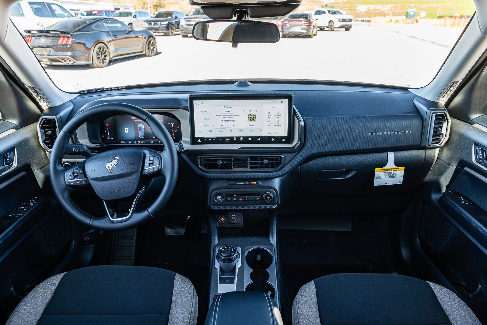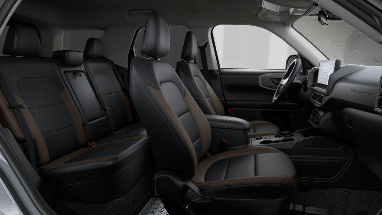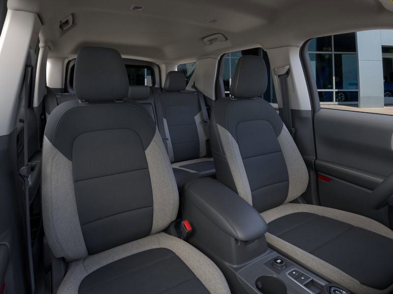 This vehicle comes equipped with Convenience Package (Front Driver/Passenger Seat Back Map Pockets, Heated 8-Way Power Driver's Seat, LED Fog Lamps, and Premium Wrapped Steering Wheel), Equipment Group 200A Standard Package (AM/FM Stereo, Cloth with Easy-to-Clean Front Bucket Seats, SiriusXM with 360L, SYNC 4 with Enhanced Voice Recognition, and Wheels: 17 Carbonized Gray Painted Aluminum), Ford Connectivity Package (1-Year Included), Internet access capable: 5G Modem - Ford Connectivity Package, 4-Wheel Disc Brakes, 6 Speakers, ABS brakes, Air Conditioning, Alloy wheels, AM/FM radio: SiriusXM with 360L, Apple CarPlay/Android Auto, Auto High-beam Headlights, Automatic temperature control, Brake assist, Compass, Delay-off headlights, Driver door bin, Driver vanity mirror, Dual front impact airbags, Dual front side impact airbags, Electronic Stability Control, Emergency communication system: SYNC 4 911 Assist, Exterior Parking Camera Rear, Four wheel independent suspension, Front and Rear Floor Liners Without Carpet Mats, Front anti-roll bar, Front Bucket Seats, Front Center Armrest, Front License Plate Bracket, Front reading lights, Fully automatic headlights, Heated door mirrors, Illuminated entry, Knee airbag, Liftgate with Black BRONCO SPORT Lettering, Low tire pressure warning, Occupant sensing airbag, Outside temperature display, Overhead airbag, Overhead console, Panic alarm, Passenger door bin, Passenger vanity mirror, Power door mirrors, Power steering, Power windows, Radio data system, Rear anti-roll bar, Rear Parking Sensors, Rear reading lights, Rear seat center armrest, Rear window defroster, Rear window wiper, Remote keyless entry, Security system, Speed control, Speed-sensing steering, Speed-Sensitive Wipers, Split folding rear seat, Steering wheel mounted audio controls, Tachometer, Telescoping steering wheel, Tilt steering wheel, Traction control, Trip computer, Variably intermittent wipers, and Wheels: 17 Carbonized Gray-Painted Aluminum.