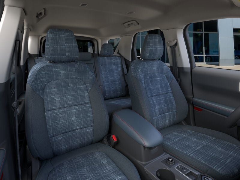 This vehicle comes equipped with Convenience Package (Front Driver/Passenger Seat Back Map Pockets, Heated 8-Way Power Driver's Seat, LED Fog Lamps, and Premium Wrapped Steering Wheel), Equipment Group 250A Standard Package (AM/FM Stereo, Plaid Cloth Front Bucket Seats, SiriusXM with 360L, SYNC 4 with Enhanced Voice Recognition, and Wheels: 17 Oxford White-Painted Aluminum), Ford Connectivity Package (1-Year Included), Internet access capable: 5G Modem - Ford Connectivity Package, 4-Wheel Disc Brakes, 6 Speakers, ABS brakes, Air Conditioning, Alloy wheels, AM/FM radio: SiriusXM with 360L, Apple CarPlay/Android Auto, Auto High-beam Headlights, Automatic temperature control, Brake assist, Compass, Delay-off headlights, Driver door bin, Driver vanity mirror, Dual front impact airbags, Dual front side impact airbags, Electronic Stability Control, Emergency communication system: SYNC 4 911 Assist, Exterior Parking Camera Rear, Four wheel independent suspension, Front and Rear Floor Liners Without Carpet Mats, Front anti-roll bar, Front Bucket Seats, Front Center Armrest, Front License Plate Bracket, Front reading lights, Fully automatic headlights, Heated door mirrors, Illuminated entry, Knee airbag, Low tire pressure warning, Occupant sensing airbag, Outside temperature display, Overhead airbag, Overhead console, Panic alarm, Passenger door bin, Passenger vanity mirror, Power door mirrors, Power steering, Power windows, Radio data system, Rear anti-roll bar, Rear Parking Sensors, Rear reading lights, Rear seat center armrest, Rear window defroster, Rear window wiper, Remote keyless entry, Security system, Speed control, Speed-sensing steering, Speed-Sensitive Wipers, Split folding rear seat, Steering wheel mounted audio controls, Tachometer, Telescoping steering wheel, Tilt steering wheel, Traction control, Trip computer, and Variably intermittent wipers.