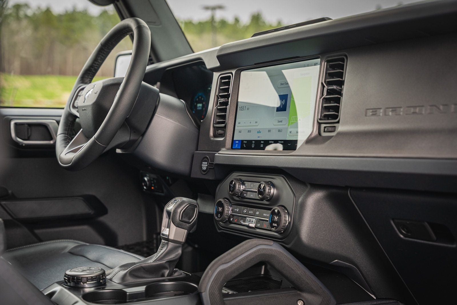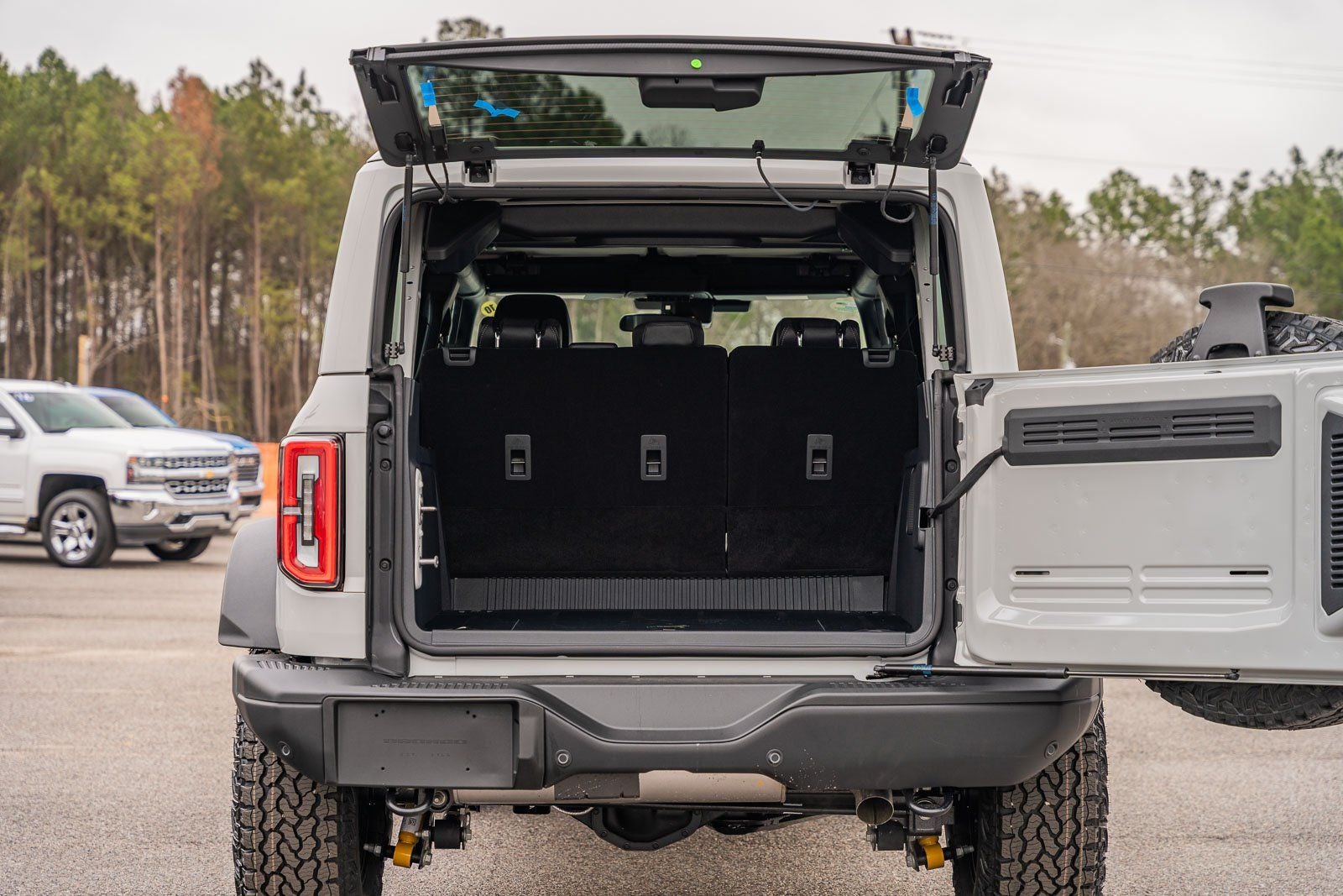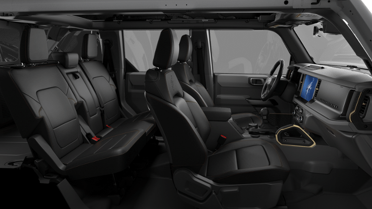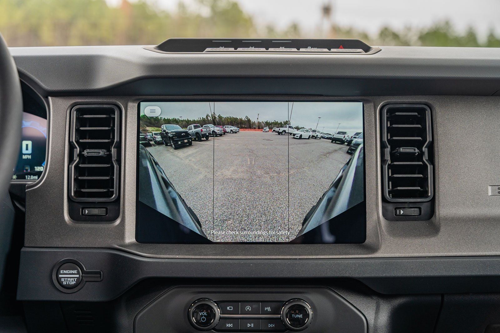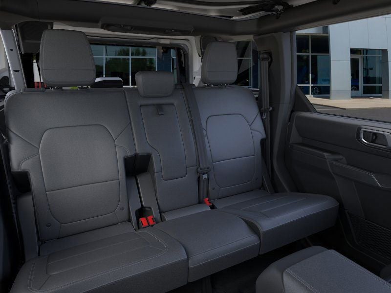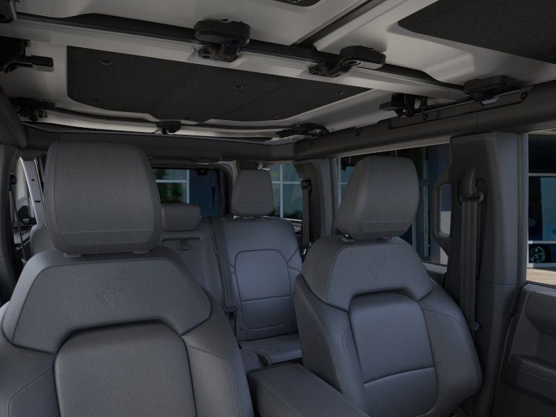 This vehicle comes equipped with Equipment Group 334A Lux Package (2-Door Intelligent Access with Lock/Unlock, 360-Degree Camera, Adaptive Cruise Control, Ambient Footwell Lighting, Connected Navigation, Driver and Front Passenger Illuminated Sliding Visor Vanity Mirrors, Dual Smart Charging USB Ports, Dual-Zone Electronic Automatic Temperature Control, Evasive Steering Assist, Front Parking Sensors, Front Row Heated Seats, Heated Steering Wheel, Information on Demand Panel, Marine Grade Vinyl Heated Bucket Seats, Pro Power Onboard - 400W, Rear Parking Sensors, Sideview Mirrors, and Wheels: 17 Carbonized Gray-Painted Aluminum), Ford Connectivity Package (1-Year Included), 4-Wheel Disc Brakes, 4.7 Axle Ratio, 7 Speakers, ABS brakes, Air Conditioning, Alloy wheels, AM/FM radio: SiriusXM with 360L, AM/FM Stereo, Auto High-Beam Headlamps, Auto High-beam Headlights, Auto-dimming Rear-View mirror, BLIS Blind Spot Information System, Brake assist, Compass, Delay-off headlights, Driver door bin, Driver vanity mirror, Dual front impact airbags, Dual front side impact airbags, Electronic Stability Control, Emergency communication system: 911 Assist, Exterior Parking Camera Rear, Front anti-roll bar, Front Bucket Seats, Front Center Armrest, Front fog lights, Front License Plate Bracket, Front reading lights, Front wheel independent suspension, Fully automatic headlights, Hard Top Sound Deadening Headliner, Heated door mirrors, Heated front seats, Illuminated entry, Integrated roll-over protection, Lane-Keeping System, Leather Shift Knob, Low tire pressure warning, Occupant sensing airbag, Outside temperature display, Overhead airbag, Overhead console, Painted Hard Top, Panic alarm, Passenger door bin, Passenger vanity mirror, Power door mirrors, Power steering, Power windows, Pre-Collision Assist with Automatic Emergency Braking, Radio data system, Rear-View Camera, Rear-Window Defroster and Washer, Remote keyless entry, Security system, SiriusXM with 360L, Speed control, Split folding rear seat, Steering wheel mounted audio controls, SYNC 4, Tachometer, Telescoping steering wheel, Tilt steering wheel, Traction control, Trip computer, Variably intermittent wipers, and Voltmeter.