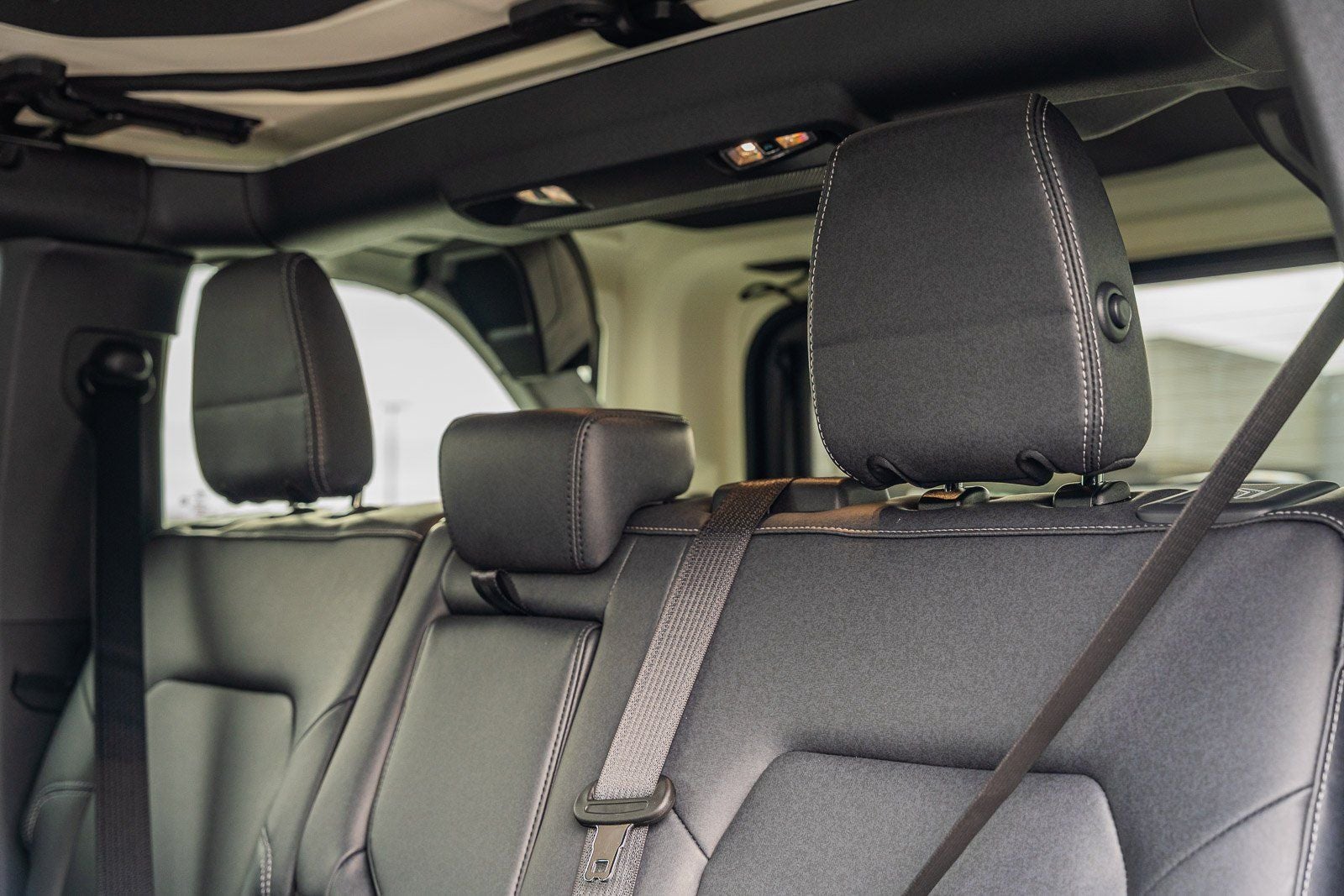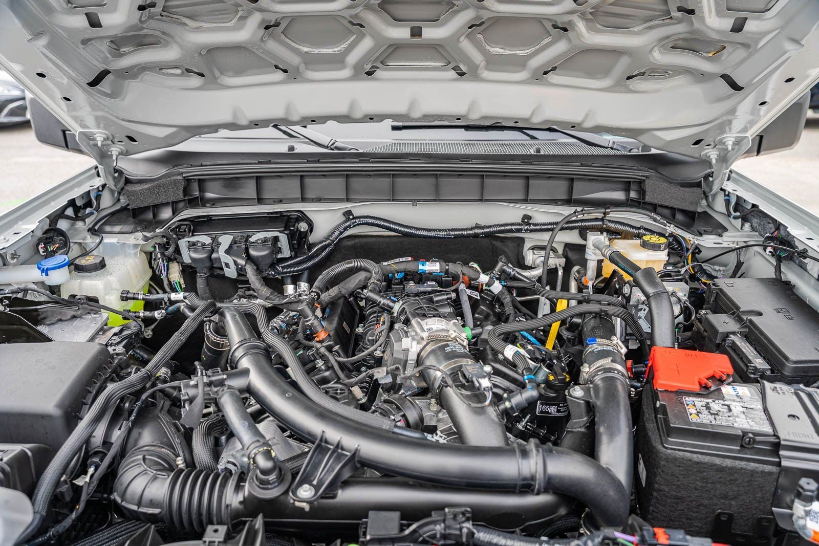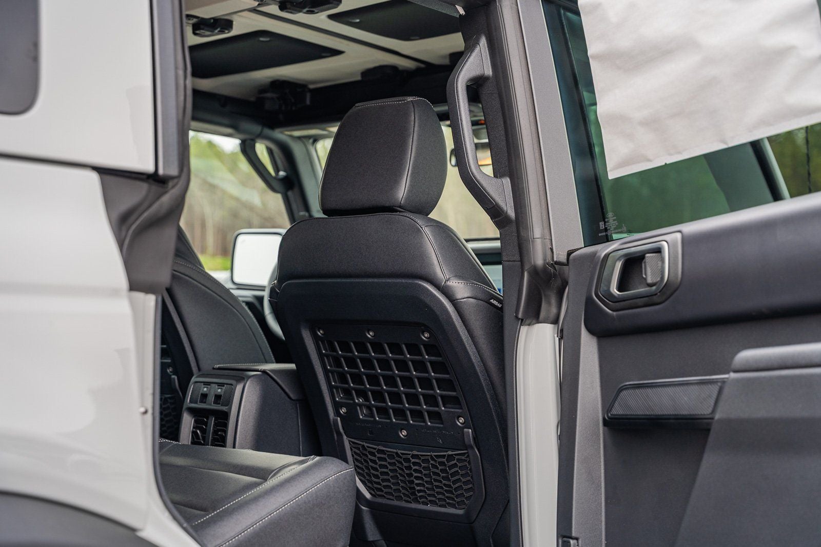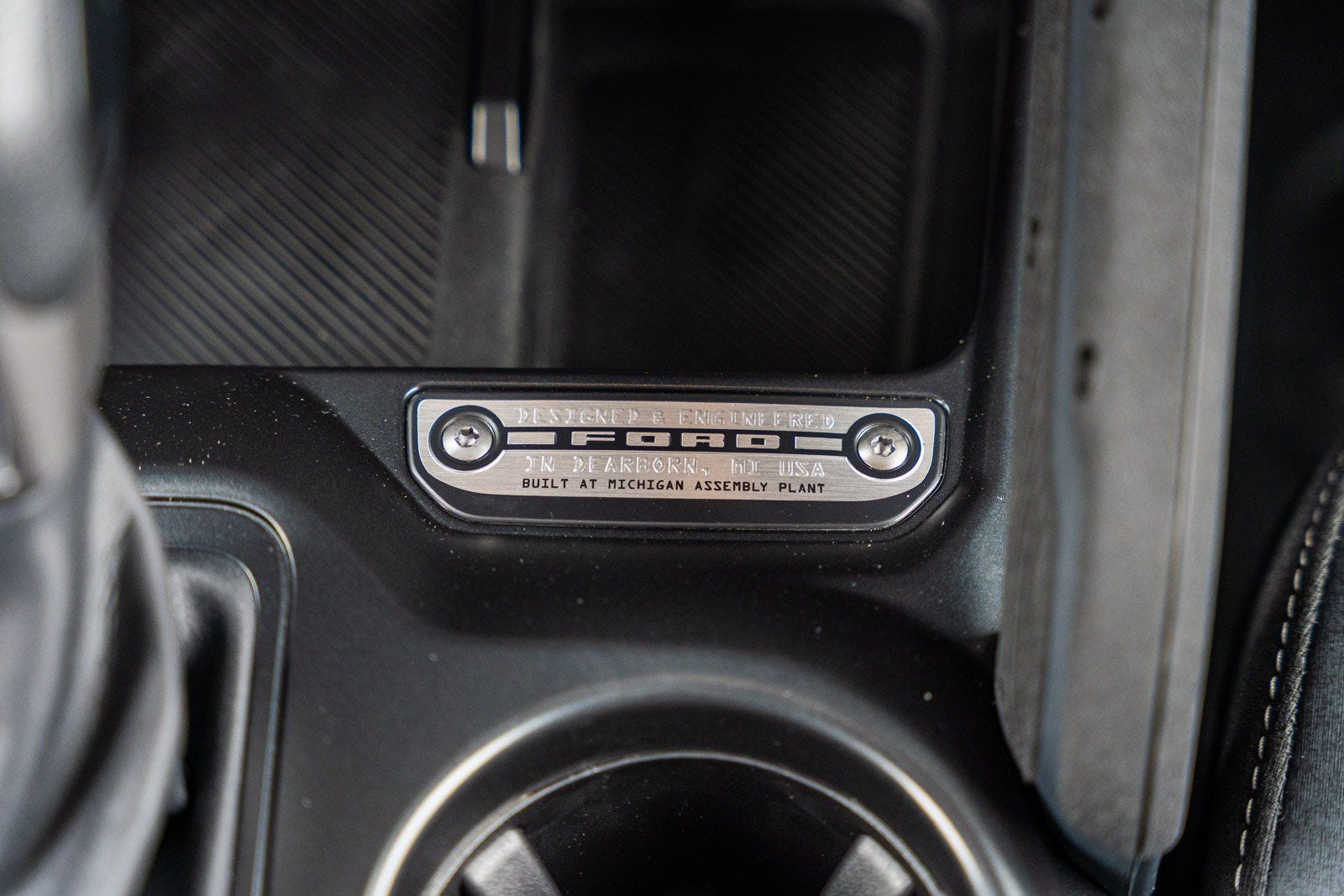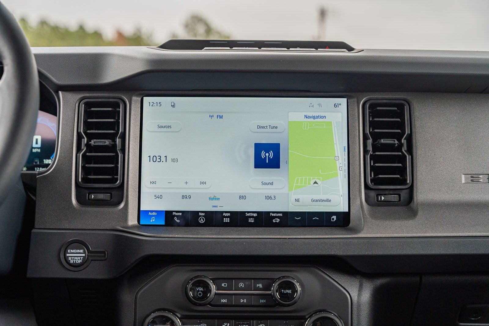 This vehicle comes equipped with Equipment Group 334A Lux Package (2-Door Intelligent Access with Lock/Unlock, 360-Degree Camera, Adaptive Cruise Control, Ambient Footwell Lighting, Connected Navigation, Driver and Front Passenger Illuminated Sliding Visor Vanity Mirrors, Dual Smart Charging USB Ports, Dual-Zone Electronic Automatic Temperature Control, Evasive Steering Assist, Front Parking Sensors, Front Row Heated Seats, Heated Steering Wheel, Information on Demand Panel, Marine Grade Vinyl Heated Bucket Seats, Pro Power Onboard - 400W, Rear Parking Sensors, Sideview Mirrors, and Wheels: 17 Carbonized Gray-Painted Aluminum), Ford Connectivity Package (1-Year Included), 4-Wheel Disc Brakes, 4.7 Axle Ratio, 7 Speakers, ABS brakes, Air Conditioning, Alloy wheels, AM/FM radio: SiriusXM with 360L, AM/FM Stereo, Auto High-Beam Headlamps, Auto High-beam Headlights, Auto-dimming Rear-View mirror, BLIS Blind Spot Information System, Brake assist, Compass, Delay-off headlights, Driver door bin, Driver vanity mirror, Dual front impact airbags, Dual front side impact airbags, Electronic Stability Control, Emergency communication system: 911 Assist, Exterior Parking Camera Rear, Front anti-roll bar, Front Bucket Seats, Front Center Armrest, Front fog lights, Front License Plate Bracket, Front reading lights, Front wheel independent suspension, Fully automatic headlights, Hard Top Sound Deadening Headliner, Heated door mirrors, Heated front seats, Illuminated entry, Integrated roll-over protection, Lane-Keeping System, Leather Shift Knob, Low tire pressure warning, Occupant sensing airbag, Outside temperature display, Overhead airbag, Overhead console, Painted Hard Top, Panic alarm, Passenger door bin, Passenger vanity mirror, Power door mirrors, Power steering, Power windows, Pre-Collision Assist with Automatic Emergency Braking, Radio data system, Rear-View Camera, Rear-Window Defroster and Washer, Remote keyless entry, Security system, SiriusXM with 360L, Speed control, Split folding rear seat, Steering wheel mounted audio controls, SYNC 4, Tachometer, Telescoping steering wheel, Tilt steering wheel, Traction control, Trip computer, Variably intermittent wipers, and Voltmeter.