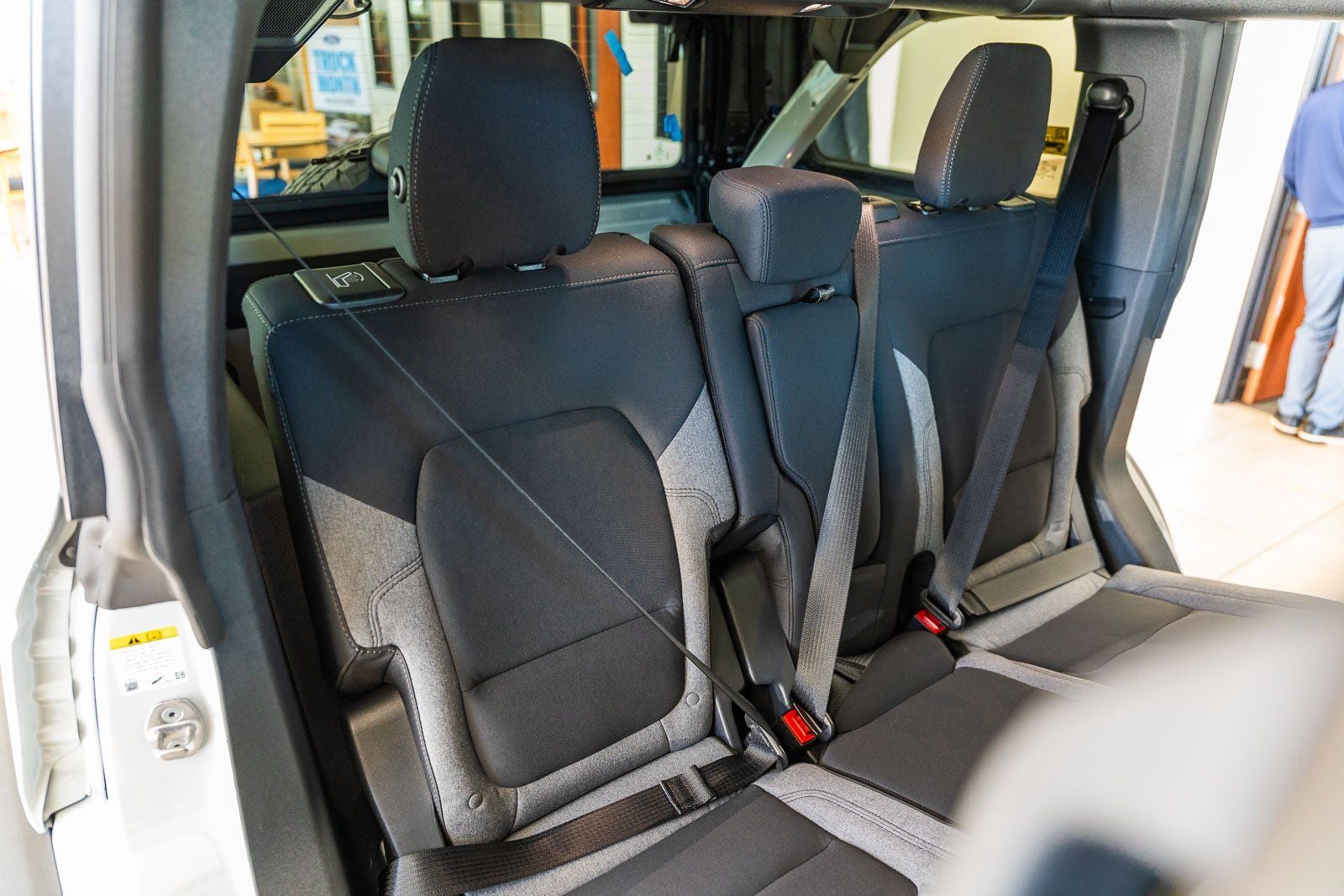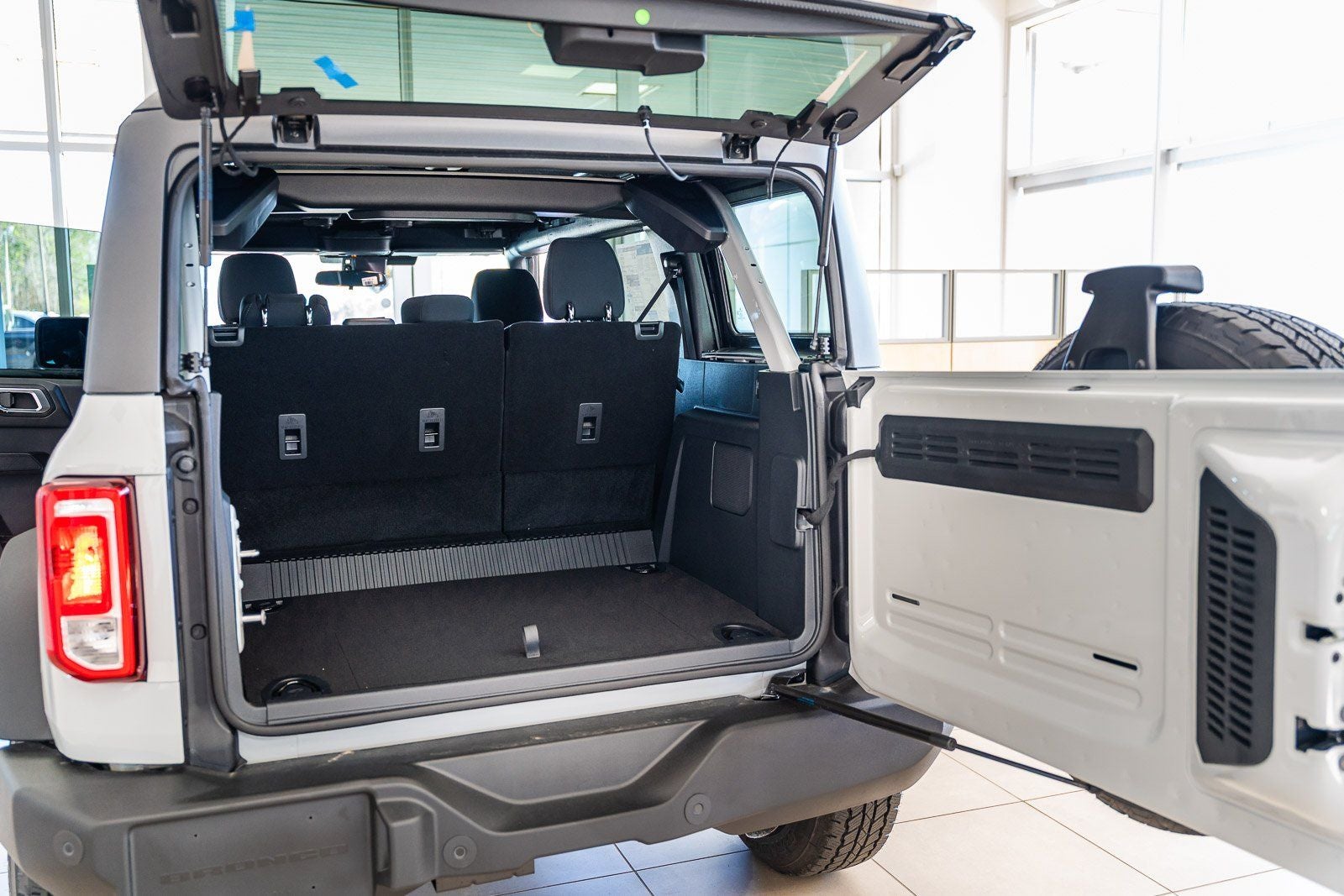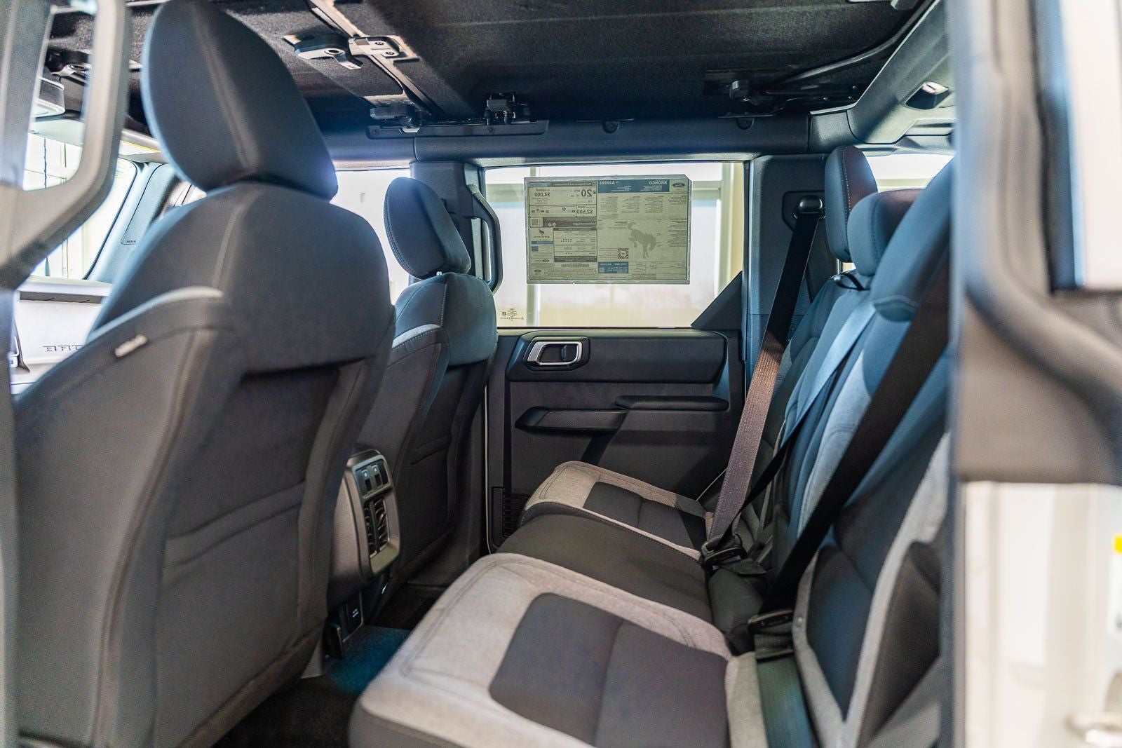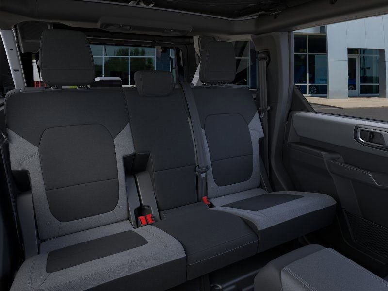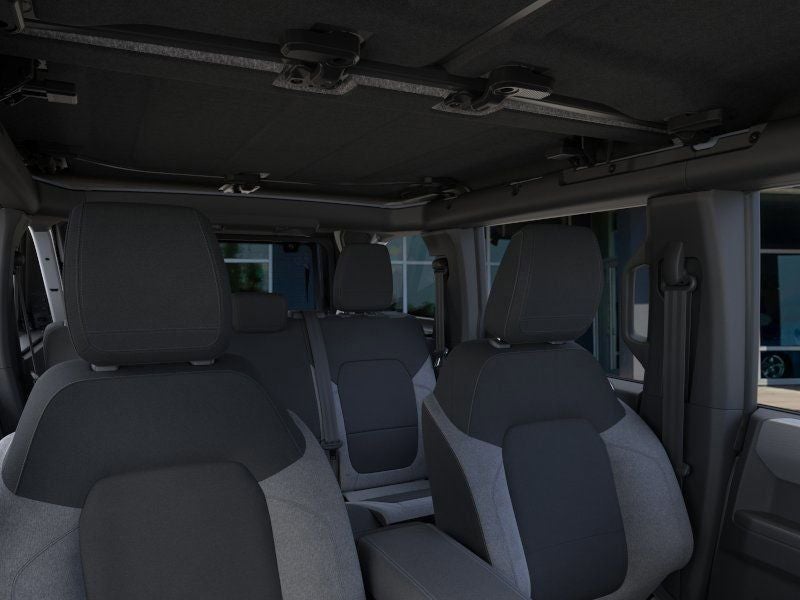 This vehicle comes equipped with Equipment Group 222A Mid Package (2-Door Intelligent Access with Lock/Unlock, AM/FM Stereo, Ambient Footwell Lighting, Cloth Bucket Seats, Connected Navigation, Driver and Front Passenger Illuminated Sliding Visor Vanity Mirrors, Dual Smart Charging USB Ports, Dual-Zone Electronic Automatic Temperature Control, Front Row Heated Seats, Pro Power Onboard - 400W, Rear Parking Sensors, SiriusXM with 360L, SYNC 4, and Wheels: 17 Carbonized Gray-Painted Aluminum), Ford Connectivity Package (1-Year Included), 4-Wheel Disc Brakes, 4.46 Axle Ratio, 7 Speakers, ABS brakes, Air Conditioning, Alloy wheels, AM/FM radio: SiriusXM with 360L, Auto High-Beam Headlamps, Auto High-beam Headlights, BLIS Blind Spot Information System, Brake assist, Carbonized Gray Molded-in-Color Hard Top, Compass, Delay-off headlights, Driver door bin, Driver vanity mirror, Dual front impact airbags, Dual front side impact airbags, Electronic Stability Control, Emergency communication system: 911 Assist, Exterior Parking Camera Rear, Front anti-roll bar, Front Bucket Seats, Front Center Armrest, Front License Plate Bracket, Front reading lights, Front wheel independent suspension, Fully automatic headlights, Hard Top Sound Deadening Headliner, Heated door mirrors, Illuminated entry, Integrated roll-over protection, Lane-Keeping System, Low tire pressure warning, Occupant sensing airbag, Outside temperature display, Overhead airbag, Overhead console, Panic alarm, Passenger door bin, Passenger vanity mirror, Power door mirrors, Power steering, Power windows, Pre-Collision Assist with Automatic Emergency Braking, Radio data system, Rear-View Camera, Rear-Window Defroster and Washer, Remote keyless entry, Security system, Speed control, Split folding rear seat, Steering wheel mounted audio controls, Tachometer, Telescoping steering wheel, Tilt steering wheel, Traction control, Trip computer, and Variably intermittent wipers.
