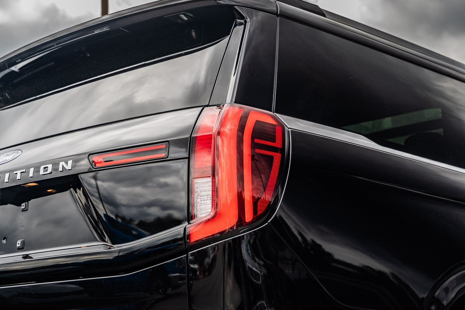 This vehicle comes equipped with Equipment Group 400A (3.73 Axle Ratio, Digital Device Holder, Heated/Ventilated Premium Del Rio Leather Front Captain's Chairs, and Wheels: 22 x 9.0 Diamond Cut Machined Face Aluminum), Ford Connectivity Package (1-Year Included), 22 Speakers, 3rd row seats: split-bench, 4-Wheel Disc Brakes, ABS brakes, Adaptive suspension, Adjustable pedals, Air Conditioning, Alloy wheels, AM/FM radio: SiriusXM with 360L, Apple CarPlay/Android Auto, Auto High-beam Headlights, Auto-dimming door mirrors, Auto-dimming Rear-View mirror, Automatic temperature control, Brake assist, Bumpers: body-color, Compass, Delay-off headlights, Driver door bin, Driver vanity mirror, Dual front impact airbags, Dual front side impact airbags, Electronic Stability Control, Emergency communication system: 911 Assist, Exterior Parking Camera Rear, Ford Digital Experience, Four wheel independent suspension, Front and 2nd Rows Floor Liners (tray Style), Front anti-roll bar, Front Bucket Seats, Front Center Armrest, Front dual zone A/C, Front License Plate Bracket, Front reading lights, Fully automatic headlights, Garage door transmitter, Genuine wood dashboard insert, Genuine wood door panel insert, Heated door mirrors, Heated front seats, Heated rear seats, Heated steering wheel, Illuminated entry, Leather steering wheel, Low tire pressure warning, Memory seat, Navigation System, Occupant sensing airbag, Outside temperature display, Overhead airbag, Overhead console, Panic alarm, Passenger door bin, Passenger vanity mirror, Pedal memory, Power door mirrors, Power driver seat, Power moonroof: Vista Roof, Power passenger seat, Power steering, Power windows, Radio data system, Radio: B&O Unleashed Sound System by Bang & Olufsen, Rain sensing wipers, Rear air conditioning, Rear anti-roll bar, Rear reading lights, Rear window defroster, Rear window wiper, Reclining 3rd row seat, Remote keyless entry, Security system, SiriusXM with 360L, Speed control, Speed-sensing steering, Speed-Sensitive Wipers, Split folding rear seat, Spoiler, Steering wheel memory, Steering wheel mounted audio controls, Tachometer, Telescoping steering wheel, Tilt steering wheel, Traction control, Trip computer, Turn signal indicator mirrors, Variably intermittent wipers, Ventilated front seats, and Voltmeter.