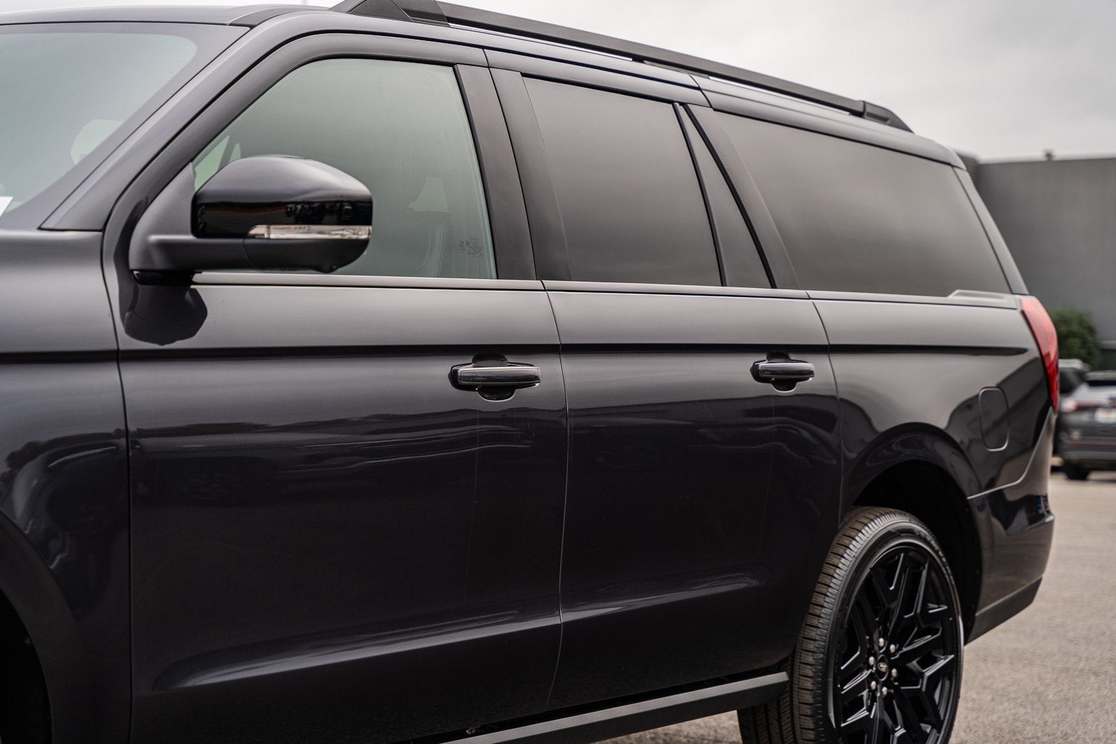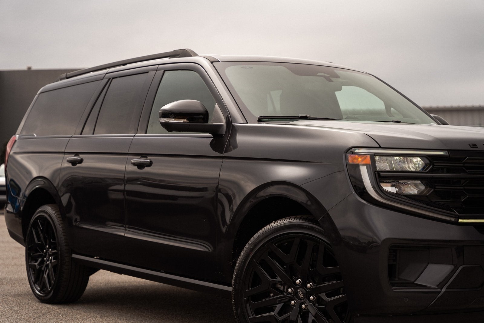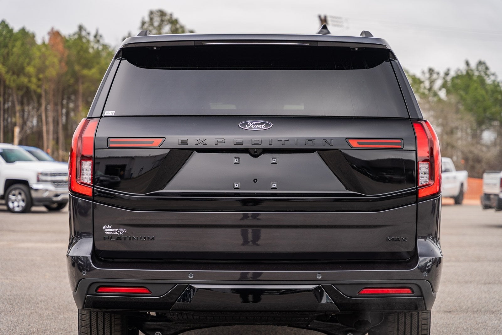 This vehicle comes equipped with Driver's Package (Radio: B&O Play Unleashed and SiriusXM with 360L), Equipment Group 600A Standard Package (2nd Row Power-Folding Captain's Chairs, 3.73 Axle Ratio, BlueCruise Equipped (90-Day Trial), Ford Digital Experience, Heated and Ventilated Leather Front Captain's Chairs, Power Tilt/Telescopic Steering Wheel with Memory, Radio: B&O Sound System by Bang and Olufsen, and Wheels: 20 x 8.5 Ebony Bright Machined Aluminum), Ford Connectivity Package (1-Year Included), Stealth Appearance Package (Black Belt Molding, Black Expedition Lettering on Hood, Black Headlamp Bezel with Ebony Trim Applique, Black Platinum Badge on Tailgate, Black Roof Rails, Carbon Black Front Bumper/Fascia, Rear Side Windows Laminated Glass, and Signature Grille Lighting), Stealth Performance Package (Black Onyx Painted Power Deployable Running Boards, Engine Sound Enhancer, High Flow Exhaust System, and Wheels: 24 x 9.5 Ebony Painted Aluminum), 10 Speakers, 3rd row seats: split-bench, 4-Wheel Disc Brakes, ABS brakes, Air Conditioning, Alloy wheels, AM/FM radio: SiriusXM with 360L, Apple CarPlay/Android Auto, Auto High-beam Headlights, Auto-dimming door mirrors, Auto-dimming Rear-View mirror, Automatic temperature control, BlueCruise (equipment + 1-Year + 90-Day Plan), Brake assist, Bumpers: body-color, Compass, Delay-off headlights, Driver door bin, Driver vanity mirror, Dual front impact airbags, Dual front side impact airbags, Electronic Stability Control, Emergency communication system: 911 Assist, Exterior Parking Camera Rear, Four wheel independent suspension, Front and 2nd Rows Floor Liners (tray Style), Front anti-roll bar, Front Bucket Seats, Front Center Armrest, Front dual zone A/C, Front License Plate Bracket, Front reading lights, Fully automatic headlights, Garage door transmitter, Genuine wood dashboard insert, Genuine wood door panel insert, Heated door mirrors, Heated front seats, Heated rear seats, Heated steering wheel, Illuminated entry, Intersection Assist, Leather steering wheel, Low tire pressure warning, Memory seat, Navigation System, Occupant sensing airbag, Outside temperature display, Overhead airbag, Overhead console, Panic alarm, Passenger door bin, Passenger vanity mirror, Power door mirrors, Power driver seat, Power moonroof: Vista Roof, Power passenger seat, Power steering, Power windows, Radio data system, Rain sensing wipers, Rear air conditioning, Rear anti-roll bar, Rear reading lights, Rear window defroster, Rear window wiper, Reclining 3rd row seat, Remote keyless entry, Security system, Speed control, Speed-sensing steering, Speed-Sensitive Wipers, Split folding rear seat, Spoiler, Steering wheel memory, Steering wheel mounted audio controls, Tachometer, Telescoping steering wheel, Tilt steering wheel, Traction control, Trip computer, Turn signal indicator mirrors, Variably intermittent wipers, Ventilated front seats, Voltmeter, and Wheels: 22 x 9.0 Ebony Bright Machined Face Aluminum.