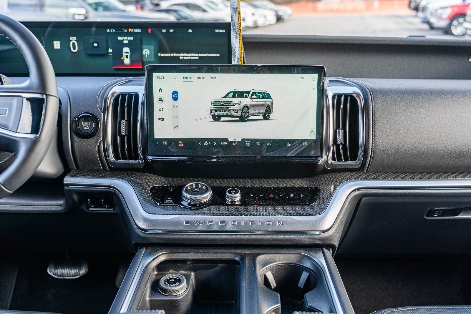 This vehicle comes equipped with Equipment Group 600A Standard Package (2nd Row Power-Folding Captain's Chairs, 3.73 Axle Ratio, BlueCruise Equipped (90-Day Trial), Ford Digital Experience, Heated and Ventilated Leather Front Captain's Chairs, Power Tilt/Telescopic Steering Wheel with Memory, Radio: B&O Sound System by Bang and Olufsen, SiriusXM with 360L, and Wheels: 20 x 8.5 Ebony Bright Machined Aluminum), Ford Connectivity Package (1-Year Included), Stealth Appearance Package (Black Belt Molding, Black Expedition Lettering on Hood, Black Headlamp Bezel with Ebony Trim Applique, Black Platinum Badge on Tailgate, Black Roof Rails, Carbon Black Front Bumper/Fascia, Rear Side Windows Laminated Glass, and Signature Grille Lighting), 4WD, 10 Speakers, 3rd row seats: split-bench, 4-Wheel Disc Brakes, ABS brakes, Air Conditioning, Alloy wheels, AM/FM radio: SiriusXM with 360L, Apple CarPlay/Android Auto, Auto High-beam Headlights, Auto-dimming door mirrors, Auto-dimming Rear-View mirror, Automatic temperature control, Brake assist, Bumpers: body-color, Compass, Delay-off headlights, Driver door bin, Driver vanity mirror, Dual front impact airbags, Dual front side impact airbags, Electronic Stability Control, Emergency communication system: 911 Assist, Exterior Parking Camera Rear, Four wheel independent suspension, Front anti-roll bar, Front Bucket Seats, Front Center Armrest, Front dual zone A/C, Front License Plate Bracket, Front reading lights, Fully automatic headlights, Garage door transmitter, Genuine wood dashboard insert, Genuine wood door panel insert, Heated door mirrors, Heated front seats, Heated rear seats, Heated steering wheel, Illuminated entry, Intersection Assist, Leather steering wheel, Low tire pressure warning, Memory seat, Navigation System, Occupant sensing airbag, Outside temperature display, Overhead airbag, Overhead console, Panic alarm, Passenger door bin, Passenger vanity mirror, Power door mirrors, Power driver seat, Power moonroof: Vista Roof, Power passenger seat, Power steering, Power windows, Radio data system, Rain sensing wipers, Rear air conditioning, Rear anti-roll bar, Rear reading lights, Rear window defroster, Rear window wiper, Reclining 3rd row seat, Remote keyless entry, Security system, Speed control, Speed-sensing steering, Speed-Sensitive Wipers, Split folding rear seat, Spoiler, Steering wheel memory, Steering wheel mounted audio controls, Tachometer, Telescoping steering wheel, Tilt steering wheel, Traction control, Trip computer, Turn signal indicator mirrors, Variably intermittent wipers, Ventilated front seats, and Voltmeter.