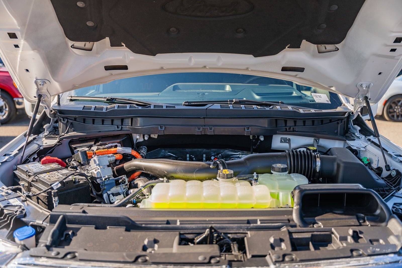 This vehicle comes equipped with Equipment Group 601A High (Wheels: 20 Chrome-Like PVD), Ford Connectivity Package (1-Year Included), FX4 Off-Road Package (4x4 FX4 Off-Road Bodyside Decal, Hill Descent Control, and Off-Road Tuned Front Shock Absorbers), Internet access capable: 5G Modem - Ford Connectivity Package, 3.5L PowerBoost Full-Hybrid V6, 4WD, 4-Wheel Disc Brakes, 8 Speakers, ABS brakes, Adjustable pedals, Air Conditioning, Alloy wheels, AM/FM radio: SiriusXM with 360L, Auto High-beam Headlights, Auto tilt-away steering wheel, Auto-dimming door mirrors, Auto-dimming Rear-View mirror, Automatic temperature control, Brake assist, Chrome wheels, Compass, Delay-off headlights, Driver door bin, Driver vanity mirror, Driver's Side SecuriCode Keyless-Entry Keypad, Dual front impact airbags, Dual front side impact airbags, Electronic Stability Control, Emergency communication system: SYNC 4 911 Assist, Front anti-roll bar, Front Bucket Seats, Front Center Armrest, Front dual zone A/C, Front fog lights, Front License Plate Bracket, Front reading lights, Front wheel independent suspension, Fully automatic headlights, Garage door transmitter, Genuine wood dashboard insert, Head-Up Display, Heated door mirrors, Heated front seats, Heated rear seats, Heated steering wheel, Illuminated entry, Leather steering wheel, Low tire pressure warning, Memory seat, Navigation system: Connected Navigation, Occupant sensing airbag, Outside temperature display, Overhead airbag, Overhead console, Panic alarm, Passenger door bin, Passenger vanity mirror, Pedal memory, Power door mirrors, Power driver seat, Power passenger seat, Power steering, Power windows, Pro Access Tailgate, Radio data system, Radio: B&O Sound System by Bang and Olufsen, Rain sensing wipers, Rear reading lights, Rear seat center armrest, Rear step bumper, Rear window defroster, Remote keyless entry, Security system, Speed control, Split folding rear seat, Steering wheel memory, Steering wheel mounted audio controls, SYNC 4 with Enhanced Voice Recognition, Tachometer, Telescoping steering wheel, Tilt steering wheel, Traction control, Trip computer, Turn signal indicator mirrors, Twin Panel Moonroof, Variably intermittent wipers, and Ventilated front seats.