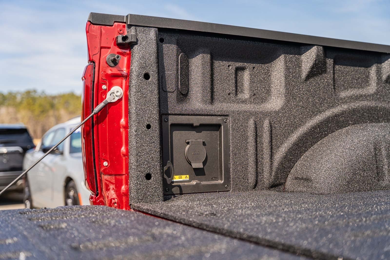 This vehicle comes equipped with Equipment Group 501A Mid (Illuminated Driver and Passenger Visors, Power-Adjustable Pedals with Memory, Power-Sliding Rear Window, Radio: B&O Sound System by Bang and Olufsen, SYNC 4 with Enhanced Voice Recognition, and Wheels: 20 Chrome-Like PVD), Ford Connectivity Package (1-Year Included), FX4 Off-Road Package (4x4 FX4 Off-Road Bodyside Decal, Hill Descent Control, Monotube Rear Shocks, Off-Road Tuned Front Shock Absorbers, Rock Crawl Mode, and Tray Style Floor Liner Without Carpet Mats), Internet access capable: 5G Modem - Ford Connectivity Package, Mobile Office Package (Console Worksurface, Partitioned Lockable Rear Storage, and Wireless Charging), Tow/Haul Package (Integrated Trailer Brake Controller), 4WD, 4-Wheel Disc Brakes, 8 Speakers, ABS brakes, Air Conditioning, Alloy wheels, AM/FM radio: SiriusXM with 360L, Auto High-beam Headlights, Auto-dimming door mirrors, Auto-dimming Rear-View mirror, Automatic temperature control, BlueCruise (equipment + 1 Year + 90-Day Plan), Brake assist, Bumpers: chrome, Chrome wheels, Compass, Delay-off headlights, Driver door bin, Driver vanity mirror, Driver's Side SecuriCode Keyless-Entry Keypad, Dual front impact airbags, Dual front side impact airbags, Electronic Stability Control, Emergency communication system: SYNC 4 911 Assist, Front anti-roll bar, Front Bucket Seats, Front Center Armrest, Front dual zone A/C, Front fog lights, Front License Plate Bracket, Front reading lights, Front wheel independent suspension, Fully automatic headlights, Garage door transmitter, Heated door mirrors, Heated front seats, Heated steering wheel, Illuminated entry, Low tire pressure warning, Memory seat, Navigation system: Connected Navigation, Occupant sensing airbag, Outside temperature display, Overhead airbag, Overhead console, Panic alarm, Passenger door bin, Passenger vanity mirror, Power door mirrors, Power driver seat, Power passenger seat, Power steering, Power windows, Radio data system, Rain sensing wipers, Rear reading lights, Rear seat center armrest, Rear step bumper, Rear window defroster, Remote keyless entry, Security system, Speed control, Split folding rear seat, Steering wheel mounted audio controls, Tachometer, Telescoping steering wheel, Tilt steering wheel, Traction control, Trip computer, Turn signal indicator mirrors, Variably intermittent wipers, Ventilated front seats, and Wheels: 18 Chrome-Like PVD.
