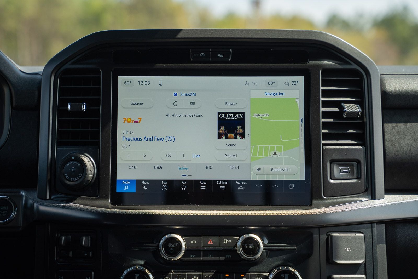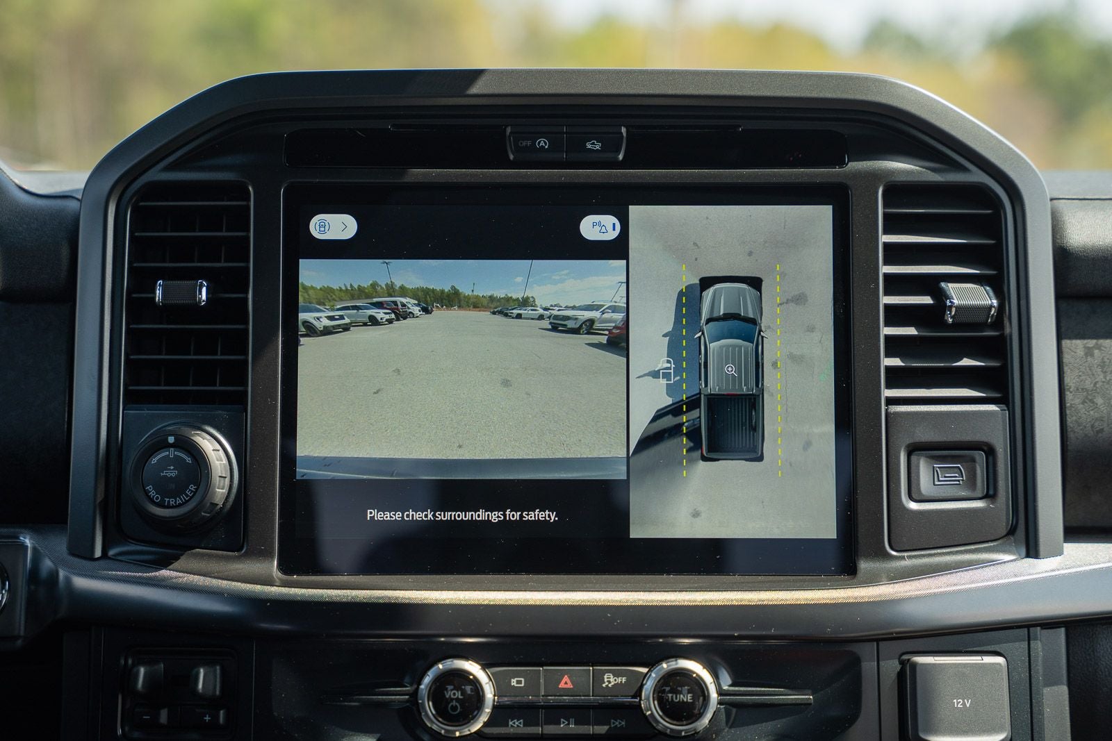 This vehicle comes equipped with Ford Connectivity Package (1-Year Included), GVWR: 7,050 lbs Payload Package, Internet access capable: 5G Modem - Ford Connectivity Package, 4WD, 4-Wheel Disc Brakes, 8 Speakers, ABS brakes, Adjustable pedals, Air Conditioning, Alloy wheels, AM/FM radio: SiriusXM with 360L, Auto High-beam Headlights, Auto-dimming Rear-View mirror, Automatic temperature control, Brake assist, Bumpers: body-color, Compass, Delay-off headlights, Driver door bin, Driver vanity mirror, Dual front impact airbags, Dual front side impact airbags, Electronic Locking with 3.73 Axle Ratio, Electronic Stability Control, Emergency communication system: SYNC 4 911 Assist, Front anti-roll bar, Front Bucket Seats, Front Center Armrest, Front dual zone A/C, Front fog lights, Front reading lights, Front wheel independent suspension, Fully automatic headlights, Heated door mirrors, Heated front seats, Illuminated entry, Low tire pressure warning, Navigation system: Connected Navigation, Occupant sensing airbag, Outside temperature display, Overhead airbag, Overhead console, Panic alarm, Passenger door bin, Passenger vanity mirror, Power door mirrors, Power driver seat, Power passenger seat, Power steering, Power windows, Radio data system, Radio: B&O Sound System by Bang and Olufsen, Rear reading lights, Rear step bumper, Rear window defroster, Remote keyless entry, Security system, Speed control, Split folding rear seat, Steering wheel mounted audio controls, SYNC 4 with Enhanced Voice Recognition, Tachometer, Telescoping steering wheel, Tilt steering wheel, Traction control, Trip computer, Turn signal indicator mirrors, Unique Sport Cloth 40/Console/40 Power Front Seat, Variably intermittent wipers, and Wheels: 18 Alloy with Dark Matte Finish.