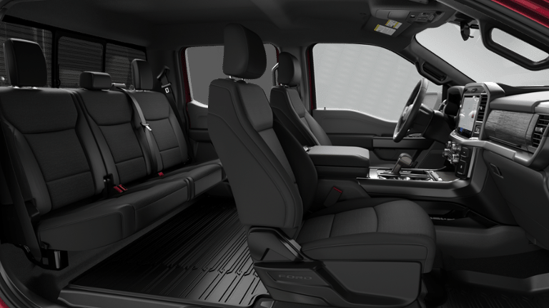 This vehicle comes equipped with Equipment Group 302A Mid (18 Painted Aluminum Wheels, 360 Degree Camera, 400W Pro Power Onboard (cab & Bed), Adaptive Cruise Control with Stop and Go, AEB Oncoming, Auto-Dimming Rear-View Mirror, Body-Color Door Handles, Chrome Front and Rear Bumpers, Cloth 40/20/40 Front Seat, Dual-Zone Electronic Automatic Temperature Control, Ford Co-Pilot360 Assist 2.0, Front Parking Sensors, Heated Front Seats, Intelligent Access with Push Button Start, Power Glass Heated Sideview Mirrors, Power-Sliding Rear Window, Radio: AM/FM Stereo with SiriusXM 360L, Remote Start System with Remote Tailgate Release, SYNC 4 with Enhanced Voice Recognition, Towing Technology, and Wrapped Steering Wheel), Ford Connectivity Package (1-Year Included), GVWR: 6,650 lbs Payload Package, Internet access capable: 5G Modem - Ford Connectivity Package, Mobile Office Package (Console Worksurface and Partitioned Lockable Rear Storage), XLT Black Appearance Package (6 Black Running Boards, Black Exterior Badging, Black Grille, Body-Color Front and Rear Bumpers, Dark Interior Appliques, Floor Shifter, Gray Box Side Decal, Unique Sport Cloth 40/Console/40 Front-Seats, and Wheels: 18 Gloss Black), 4WD, 4-Wheel Disc Brakes, 6 Speakers, ABS brakes, Air Conditioning, Alloy wheels, AM/FM radio: SiriusXM with 360L, Auto High-beam Headlights, BlueCruise (equipment + 1 Year + 90-Day Plan), Brake assist, Bumpers: body-color, Cloth 40/Console/40 Front Seats, Compass, Delay-off headlights, Driver door bin, Driver vanity mirror, Dual front impact airbags, Dual front side impact airbags, Electronic Stability Control, Emergency communication system: SYNC 4 911 Assist, Front anti-roll bar, Front Center Armrest, Front fog lights, Front License Plate Bracket, Front reading lights, Front wheel independent suspension, Fully automatic headlights, Heated door mirrors, Illuminated entry, Low tire pressure warning, Occupant sensing airbag, Outside temperature display, Overhead airbag, Overhead console, Panic alarm, Passenger door bin, Passenger vanity mirror, Power door mirrors, Power steering, Power windows, Radio data system, Rear Parking Sensors, Rear reading lights, Rear step bumper, Rear window defroster, Remote keyless entry, Security system, Speed control, Split folding rear seat, Steering wheel mounted audio controls, Tachometer, Telescoping steering wheel, Tilt steering wheel, Traction control, Tray Style Floor Liner with Carpet Mats, Trip computer, and Variably intermittent wipers.