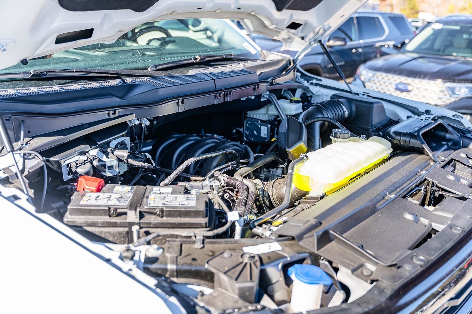 This vehicle comes equipped with Bed Utility Package (4 Pickup Box Tie-Down Plates, Bed Storage Boxes, LED Box Lighting, and Tailgate Step with Work Surface), Equipment Group 303A High (360 Degree Camera, 400W Pro Power Onboard (cab & Bed), Adaptive Cruise Control with Stop and Go, AEB Oncoming, Auto-Dimming Rear-View Mirror, Dual-Zone Electronic Automatic Temperature Control, Ford Co-Pilot360 Assist 2.0, Front Parking Sensors, Heated Front Seats, Intelligent Access with Push Button Start, Power Glass Heated Sideview Mirrors, Power-Adjustable Pedals, Power-Sliding Rear Window, Radio: B&O Sound System by Bang and Olufsen, Remote Start System with Remote Tailgate Release, Towing Technology, and Wrapped Steering Wheel), Ford Connectivity Package (1-Year Included), Internet access capable: 5G Modem - Ford Connectivity Package, Mobile Office Package (Console Worksurface and Partitioned Lockable Rear Storage), Tow/Haul Package, XLT Black Appearance Package Plus (6 Black Running Boards, Black Exterior Badging, Black Grille, Body-Color Door Handles, Body-Color Front and Rear Bumpers, Dark Interior Appliques, Dual Exhaust with Black Tips, Floor Shifter, Gray Box Side Decal, and Wheels: 20 Gloss Black Painted Aluminum), 4WD, 18 Painted Aluminum Wheels, 4-Wheel Disc Brakes, 6 Speakers, ABS brakes, Air Conditioning, Alloy wheels, AM/FM radio: SiriusXM with 360L, Auto High-beam Headlights, Brake assist, Bumpers: body-color, Cloth 40/Console/40 Front Seats, Compass, Delay-off headlights, Driver door bin, Driver vanity mirror, Dual front impact airbags, Dual front side impact airbags, Electronic Stability Control, Emergency communication system: SYNC 4 911 Assist, Front anti-roll bar, Front Center Armrest, Front fog lights, Front License Plate Bracket, Front reading lights, Front wheel independent suspension, Fully automatic headlights, Heated door mirrors, Illuminated entry, Low tire pressure warning, Occupant sensing airbag, Outside temperature display, Overhead airbag, Overhead console, Panic alarm, Passenger door bin, Passenger vanity mirror, Power door mirrors, Power steering, Power windows, Radio data system, Radio: AM/FM Stereo with SiriusXM 360L, Rear Parking Sensors, Rear reading lights, Rear step bumper, Rear window defroster, Remote keyless entry, Security system, Speed control, Split folding rear seat, Steering wheel mounted audio controls, SYNC 4 with Enhanced Voice Recognition, Tachometer, Telescoping steering wheel, Tilt steering wheel, Tough Bed Spray-in Bedliner, Traction control, Trip computer, Twin Panel Moonroof, Variably intermittent wipers, and Wheel Well Liner.