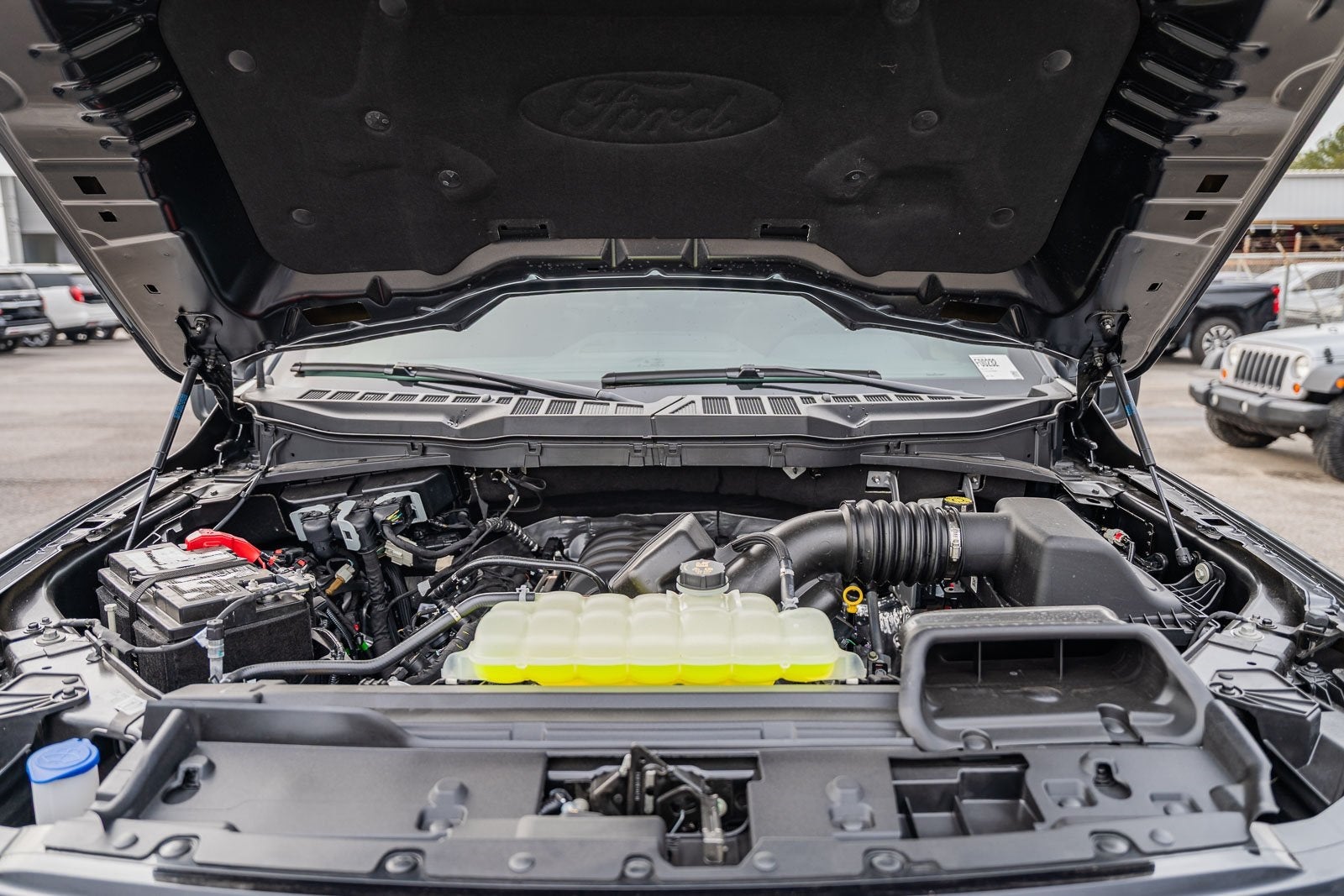 This vehicle comes equipped with Bed Utility Package (4 Pickup Box Tie-Down Plates, Bed Storage Boxes, LED Box Lighting, and Tailgate Step with Work Surface), Equipment Group 303A High (360 Degree Camera, 400W Pro Power Onboard (cab & Bed), Adaptive Cruise Control with Stop and Go, AEB Oncoming, Auto-Dimming Rear-View Mirror, Dual-Zone Electronic Automatic Temperature Control, Ford Co-Pilot360 Assist 2.0, Front Parking Sensors, Heated Front Seats, Intelligent Access with Push Button Start, Power Glass Heated Sideview Mirrors, Power-Adjustable Pedals, Power-Sliding Rear Window, Radio: B&O Sound System by Bang and Olufsen, Remote Start System with Remote Tailgate Release, Towing Technology, and Wrapped Steering Wheel), Ford Connectivity Package (1-Year Included), Internet access capable: 5G Modem - Ford Connectivity Package, Mobile Office Package (Console Worksurface and Partitioned Lockable Rear Storage), Tow/Haul Package, XLT Black Appearance Package Plus (6 Black Running Boards, Black Exterior Badging, Black Grille, Body-Color Door Handles, Body-Color Front and Rear Bumpers, Dark Interior Appliques, Dual Exhaust with Black Tips, Floor Shifter, Gray Box Side Decal, and Wheels: 20 Gloss Black Painted Aluminum), 4WD, 18 Painted Aluminum Wheels, 4-Wheel Disc Brakes, 6 Speakers, ABS brakes, Air Conditioning, Alloy wheels, AM/FM radio: SiriusXM with 360L, Auto High-beam Headlights, Brake assist, Bumpers: body-color, Cloth 40/Console/40 Front Seats, Compass, Delay-off headlights, Driver door bin, Driver vanity mirror, Dual front impact airbags, Dual front side impact airbags, Electronic Stability Control, Emergency communication system: SYNC 4 911 Assist, Front anti-roll bar, Front Center Armrest, Front fog lights, Front License Plate Bracket, Front reading lights, Front wheel independent suspension, Fully automatic headlights, Heated door mirrors, Illuminated entry, Low tire pressure warning, Occupant sensing airbag, Outside temperature display, Overhead airbag, Overhead console, Panic alarm, Passenger door bin, Passenger vanity mirror, Power door mirrors, Power steering, Power windows, Radio data system, Radio: AM/FM Stereo with SiriusXM 360L, Rear Parking Sensors, Rear reading lights, Rear step bumper, Rear window defroster, Remote keyless entry, Security system, Speed control, Split folding rear seat, Steering wheel mounted audio controls, SYNC 4 with Enhanced Voice Recognition, Tachometer, Telescoping steering wheel, Tilt steering wheel, Tough Bed Spray-in Bedliner, Traction control, Trip computer, Twin Panel Moonroof, Variably intermittent wipers, and Wheel Well Liner.