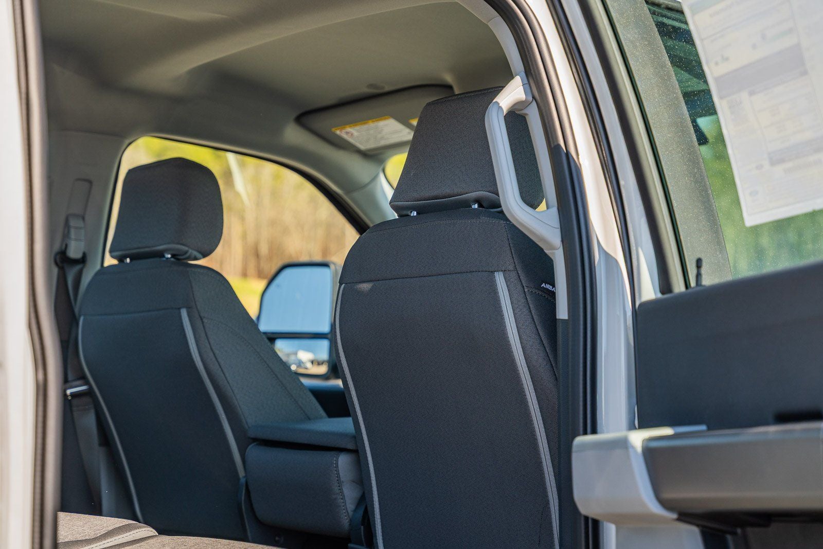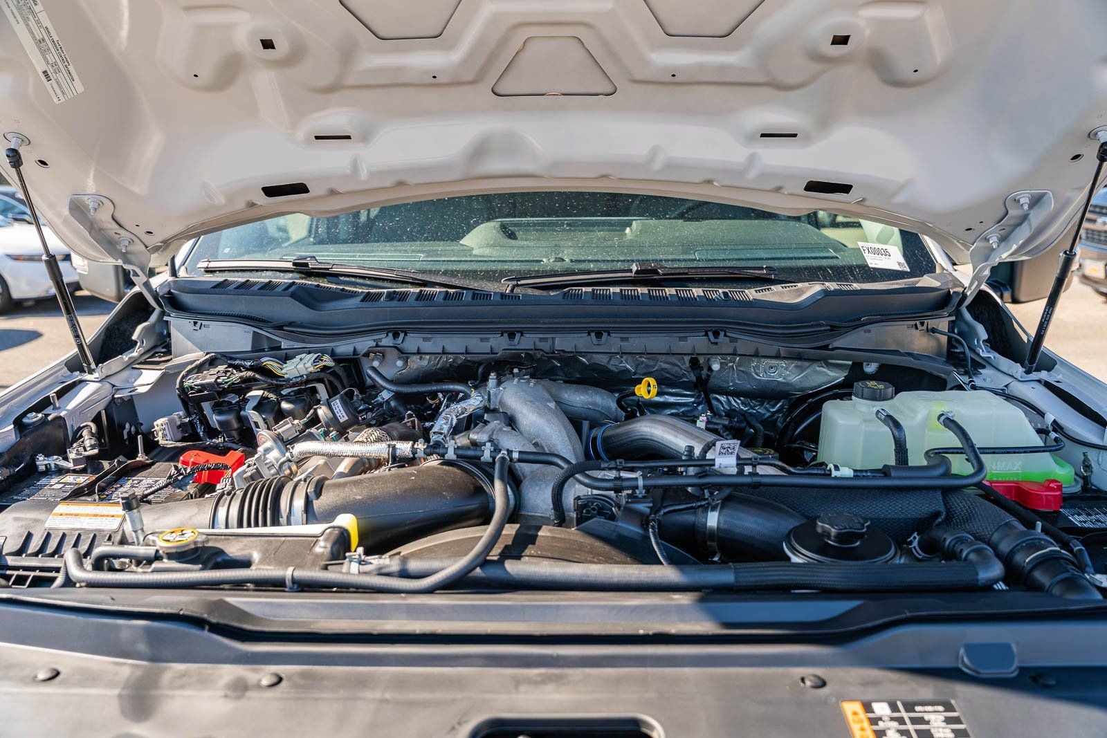 This vehicle comes equipped with Ford Connectivity Package (1-Year Included), FX4 Off-Road Package (Hill Descent Control, Off-Road Specifically Tuned Shock Absorbers, and Unique FX4 Off-Road Box Decal), GVWR: 10,000 Lb Payload Package, Internet access capable: 5G Modem - Ford Connectivity Package, Order Code 600A (17 Argent Painted Steel Wheels, HD Vinyl 40/20/40 Split Bench Seat, Radio: AM/FM Stereo with MP3 Player, and SYNC 4), STX Appearance Package (Body-Color Front Bumper, Body-Color Rear Bumper, Cloth 40/20/40 Split Bench Seat, Color-Coordinated Full Carpet with Floor Mats, and Painted Grille), 4WD, 190 Amp Alternator, 4-Wheel Disc Brakes, 6 Speakers, ABS brakes, Air Conditioning, AM/FM radio, Brake assist, Compass, Delay-off headlights, Dual AGM 68 AH Battery, Dual front impact airbags, Dual front side impact airbags, Electronic Stability Control, Emergency communication system: SYNC 4 911 Assist, Exterior Parking Camera Rear, Front anti-roll bar, Front Center Armrest w/Storage, Front License Plate Bracket, Front reading lights, Fully automatic headlights, Heated door mirrors, Illuminated entry, LED Roof Clearance Lights, Low tire pressure warning, Outside temperature display, Overhead airbag, Overhead console, Panic alarm, Passenger vanity mirror, Platform Running Boards, Power door mirrors, Power steering, Power windows, Rear reading lights, Rear step bumper, Remote keyless entry, Remote Start System, Security system, Speed control, Split folding rear seat, Steering wheel mounted audio controls, Tachometer, Telescoping steering wheel, Tilt steering wheel, Traction control, Trailer Brake Controller, Trip computer, Turn signal indicator mirrors, Upfitter Switches (6), Variably intermittent wipers, and Wheels: 20 Dark Carbonized Gray Painted Aluminum.