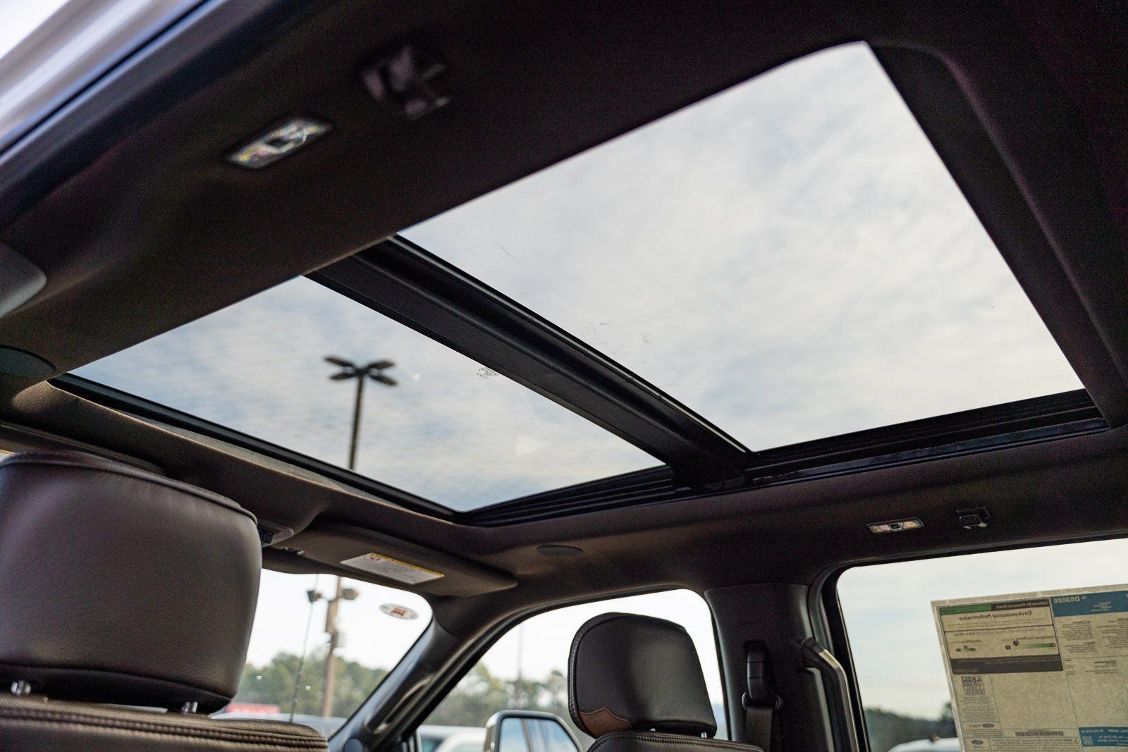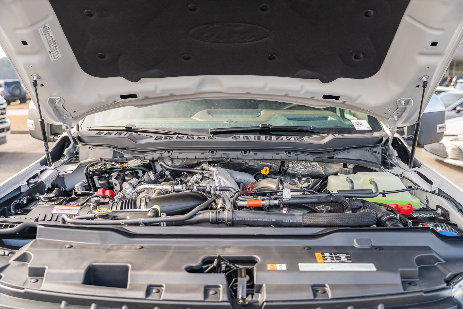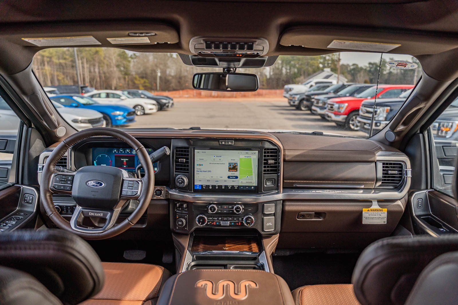 This vehicle comes equipped with Ford Connectivity Package (1-Year Included), Internet access capable: 5G Modem - Ford Connectivity Package, 4WD, 14 Speakers, 4-Wheel Disc Brakes, ABS brakes, Adjustable pedals, Air Conditioning, Alloy wheels, AM/FM radio: SiriusXM with 360L, Auto High-beam Headlights, Auto tilt-away steering wheel, Auto-dimming Rear-View mirror, Automatic temperature control, Brake assist, Compass, Delay-off headlights, Driver door bin, Driver vanity mirror, Dual front impact airbags, Dual front side impact airbags, Electronic Stability Control, Electronic-Locking with 3.73 Axle Ratio, Emergency communication system: SYNC 4 911 Assist, Flow-Through Console, Front anti-roll bar, Front Bucket Seats, Front Center Armrest, Front dual zone A/C, Front fog lights, Front reading lights, Fully automatic headlights, Garage door transmitter, Heads-Up Display, Heated door mirrors, Heated front seats, Heated rear seats, Heated steering wheel, Illuminated entry, Leather steering wheel, Low tire pressure warning, Memory seat, Navigation system: Connected Navigation, Outside temperature display, Overhead airbag, Overhead console, Panic alarm, Passenger door bin, Passenger vanity mirror, Pedal memory, Power door mirrors, Power driver seat, Power passenger seat, Power steering, Power windows, Radio: B&O Unleashed Sound System by Bang & Olufsen, Rain sensing wipers, Rear reading lights, Rear seat center armrest, Rear step bumper, Rear window defroster, Remote keyless entry, Security system, SiriusXM with 360L, Speed control, Split folding rear seat, Steering wheel memory, Steering wheel mounted A/C controls, Steering wheel mounted audio controls, SYNC 4 with Enhanced Voice Recognition, Tachometer, Telescoping steering wheel, Tilt steering wheel, Traction control, Trip computer, Turn signal indicator mirrors, Unique King Ranch Leather 40/Console/40 Seats, Variably intermittent wipers, Ventilated front seats, and Wheels: 20 Bright Machined Aluminum.