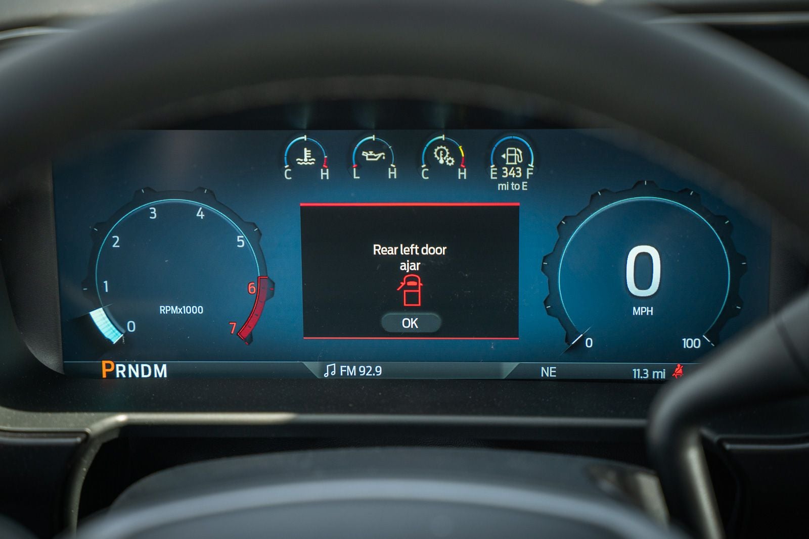 This vehicle comes equipped with Ford Connectivity Package (1-Year Included), Internet access capable: 5G Modem - Ford Connectivity Package, 4WD, 190 Amp Alternator, 3.73 Axle Ratio, 4-Wheel Disc Brakes, 8 Speakers, ABS brakes, Adjustable pedals, Air Conditioning, Alloy wheels, AM/FM radio: SiriusXM with 360L, Auto High-beam Headlights, Auto-dimming Rear-View mirror, Automatic temperature control, BLIS with Cross-Traffic Alert, Brake assist, Bumpers: chrome, Compass, Delay-off headlights, Driver door bin, Driver vanity mirror, Dual front impact airbags, Dual front side impact airbags, Electronic Stability Control, Emergency communication system: SYNC 4 911 Assist, Flow-Through Console, Front ActiveX Trimmed 40/Console/40 Seats, Front anti-roll bar, Front Bucket Seats, Front Center Armrest, Front dual zone A/C, Front fog lights, Front reading lights, Fully automatic headlights, Garage door transmitter, Heated door mirrors, Heated front seats, Heated rear seats, Heated steering wheel, Illuminated entry, Low tire pressure warning, Memory seat, Navigation system: Connected Navigation, Outside temperature display, Overhead airbag, Overhead console, Panic alarm, Passenger door bin, Passenger vanity mirror, Pedal memory, Power door mirrors, Power driver seat, Power passenger seat, Power steering, Power windows, Privacy Glass, Radio: B&O Sound System by Bang and Olufsen, Rain sensing wipers, Rear Parking Sensors, Rear reading lights, Rear seat center armrest, Rear step bumper, Rear window defroster, Remote keyless entry, Security system, SiriusXM with 360L, Speed control, Split folding rear seat, Steering wheel mounted audio controls, SYNC 4 with Enhanced Voice Recognition, Tachometer, Telescoping steering wheel, Tilt steering wheel, Traction control, Trip computer, Turn signal indicator mirrors, Variably intermittent wipers, Ventilated front seats, and Wheels: 18 Bright Machined and Carbonized Gray Aluminum.