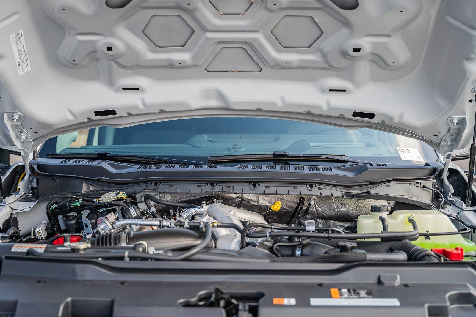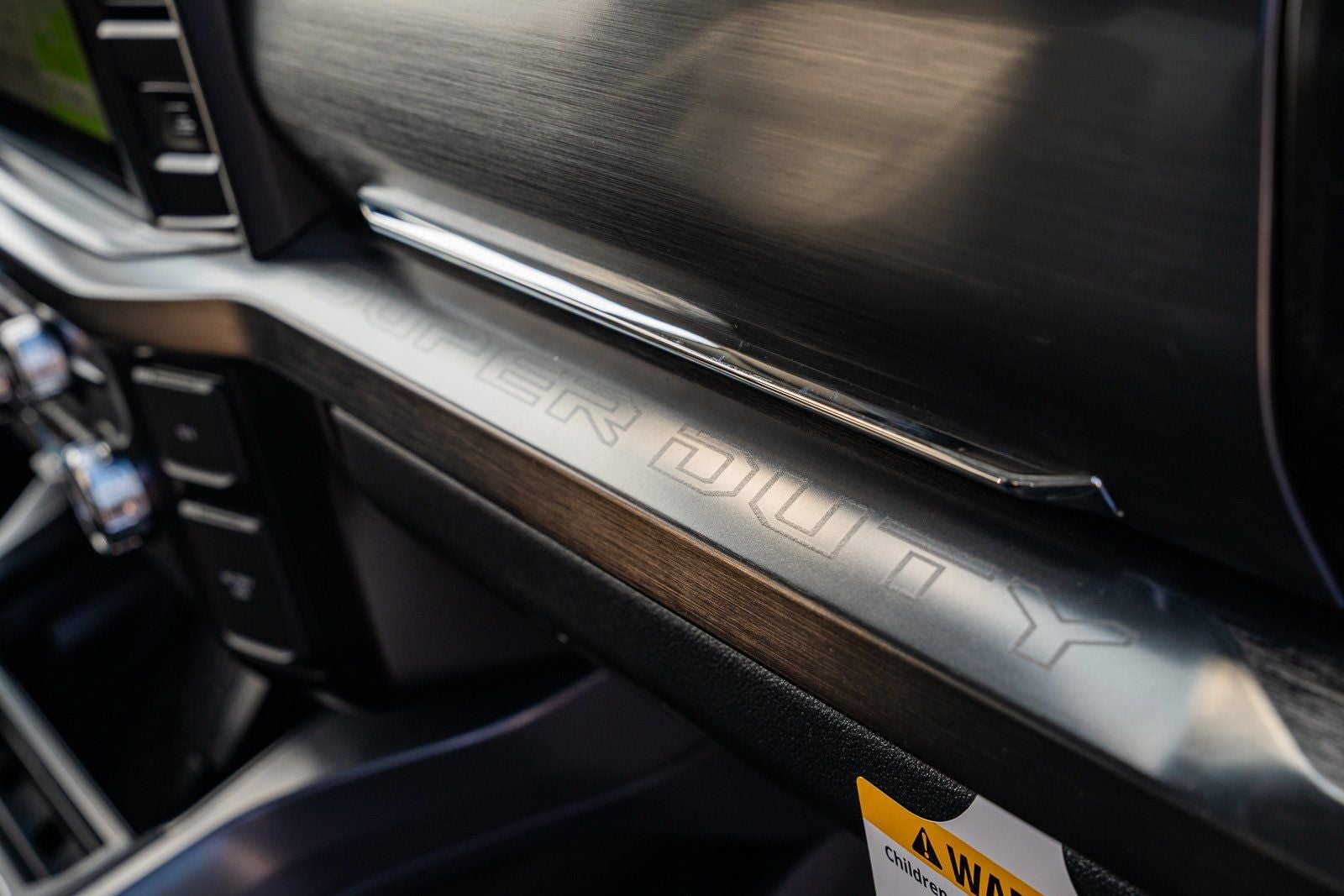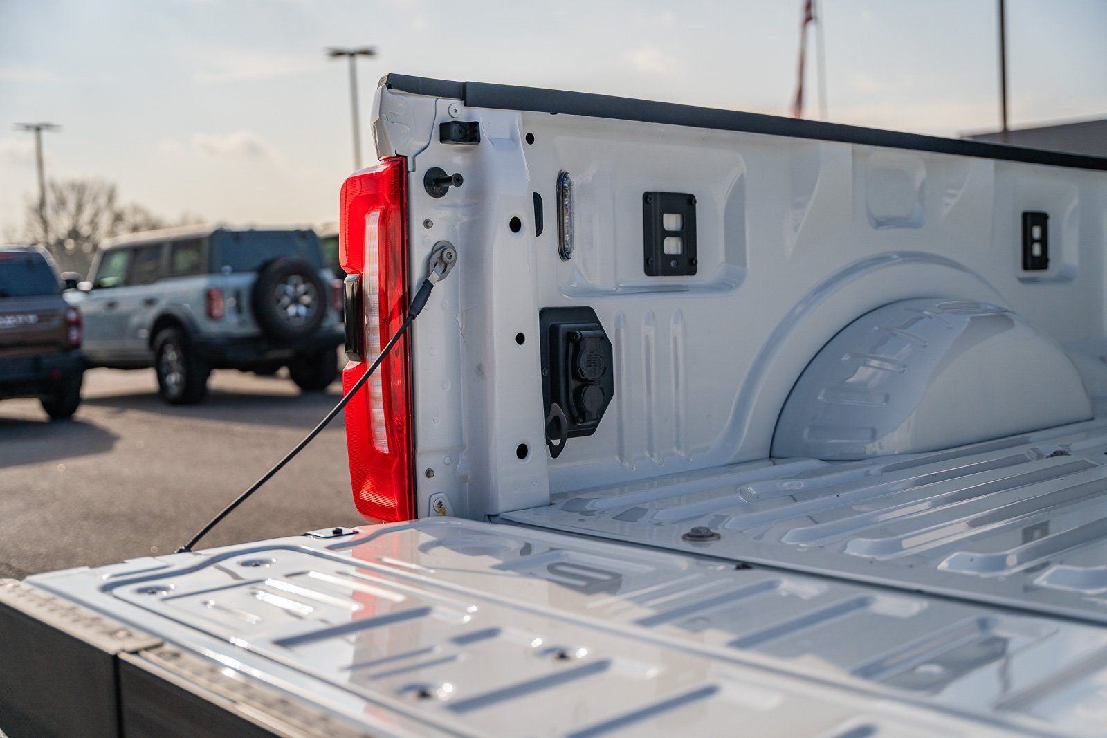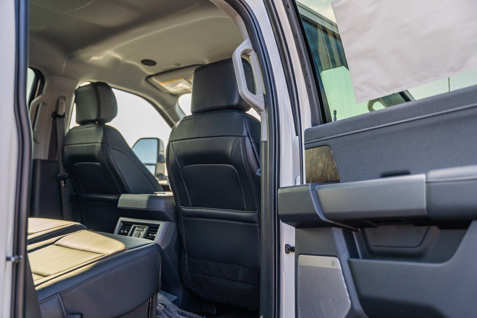 This vehicle comes equipped with 5th Wheel/Gooseneck Hitch Prep Package, Chrome Package, Ford Connectivity Package (1-Year Included), FX4 Off-Road Package (Hill Descent Control, Off-Road Specifically Tuned Shock Absorbers, and Unique FX4 Off-Road Box Decal), Internet access capable: 5G Modem - Ford Connectivity Package, Lariat Premium Package (Power-Sliding Rear-Window with Defrost, Privacy Glass, Pro Trailer Backup Assist, and Pro Trailer Hitch Assist), Lariat Ultimate Package (4-Way Adjustable Headrests, Head-Up Display, Power-Deployable Running Boards, Radio: B&O Unleashed Sound System by Bang & Olufsen, SiriusXM with 360L, SYNC 4 with Enhanced Voice Recognition, and Tailgate Step and Handle), Order Code 618A (Flow-Through Console, Front ActiveX Trimmed 40/Console/40 Seats, Radio: B&O Sound System by Bang and Olufsen, and Wheels: 18 Bright Machined and Carbonized Gray Aluminum), 4WD, 190 Amp Alternator, 4-Wheel Disc Brakes, 410 Amp Dual Alternators, 8 Speakers, ABS brakes, Adaptive Cruise Control with Stop-and-Go, Adjustable pedals, Air Conditioning, All-Weather Floor Mats, Alloy wheels, AM/FM radio: SiriusXM with 360L, Auto High-beam Headlights, Auto-dimming Rear-View mirror, Automatic High Beam, Automatic temperature control, BLIS with Cross-Traffic Alert, Brake assist, Bumpers: chrome, Compass, Delay-off headlights, Driver door bin, Driver vanity mirror, Dual AGM 68 AH Battery, Dual front impact airbags, Dual front side impact airbags, Electronic Stability Control, Emergency communication system: SYNC 4 911 Assist, Engine Block Heater, Front and Rear Parking Sensors, Front anti-roll bar, Front Bucket Seats, Front Center Armrest, Front dual zone A/C, Front fog lights, Front License Plate Bracket, Front reading lights, Fully automatic headlights, Garage door transmitter, Heated door mirrors, Heated front seats, Heated rear seats, Heated steering wheel, Illuminated entry, Lane-Keeping System, Low tire pressure warning, Memory seat, Navigation system: Connected Navigation, Outside temperature display, Overhead airbag, Overhead console, Panic alarm, Passenger door bin, Passenger vanity mirror, Pedal memory, Post-Collision Braking, Power door mirrors, Power driver seat, Power passenger seat, Power steering, Power windows, Pre-Collision Assist, Pro Power Onboard - 2kW, Rain sensing wipers, Rapid-Heat Supplemental Cab Heater, Rear Parking Sensors, Rear reading lights, Rear seat center armrest, Rear step bumper, Rear window defroster, Remote keyless entry, Security system, Speed control, Split folding rear seat, Steering wheel mounted audio controls, Tachometer, Telescoping steering wheel, Tilt steering wheel, Traction control, Trip computer, Turn signal indicator mirrors, Upfitter Switches (6), Variably intermittent wipers, and Ventilated front seats.