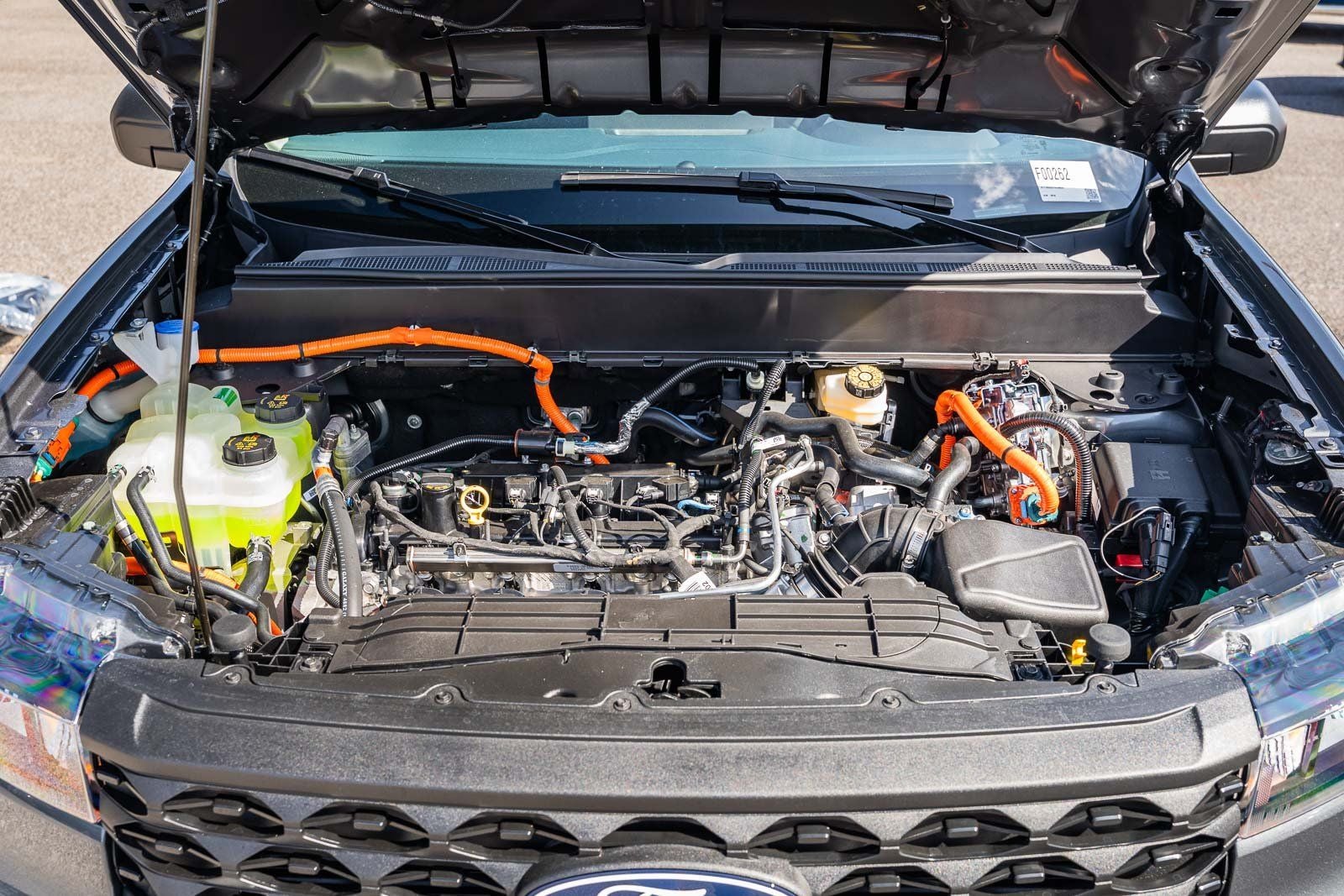 This vehicle comes equipped with Equipment Group 100A (Front Cloth Bucket Seats, Radio: AM/FM Stereo with 6 Speakers, SiriusXM with 360L, SYNC 4 with Enhanced Voice Recognition, and Wheels: 17 Steel with Sparkle Silver Painted Cover), Ford Connectivity Package (1-Year Included), Internet access capable: 5G Modem - Ford Connectivity Package, 2.5L I-4 Hybrid, 2.91 Axle Ratio, 2K Trailer Hitch Receiver with 4-Pin Connector, 4-Wheel Disc Brakes, 6 Speakers, ABS brakes, Air Conditioning, AM/FM radio: SiriusXM with 360L, Apple CarPlay/Android Auto, Auto High Beams, Auto High-beam Headlights, Automatic temperature control, Brake assist, Bumpers: body-color, Compass, Delay-off headlights, Driver door bin, Driver vanity mirror, Dual front impact airbags, Dual front side impact airbags, Electronic Stability Control, Emergency communication system: SYNC 4 911 Assist, Exterior Parking Camera Rear, Front and Rear Floor Liners with Front Carpet Floor Mats, Front anti-roll bar, Front Bucket Seats, Front Center Armrest, Front reading lights, Front wheel independent suspension, Fully automatic headlights, Illuminated entry, Intersection Assist, Knee airbag, Lane-Keeping System, Low tire pressure warning, Occupant sensing airbag, Outside temperature display, Overhead airbag, Overhead console, Panic alarm, Passenger door bin, Passenger vanity mirror, Power steering, Power windows, Pre-Collision Assist with Automatic Emergency Braking, Radio data system, Rear anti-roll bar, Rear step bumper, Rear-View Camera, Remote keyless entry, Speed control, Speed-sensing steering, Steering wheel mounted audio controls, Telescoping steering wheel, Tilt steering wheel, Traction control, and Trip computer.