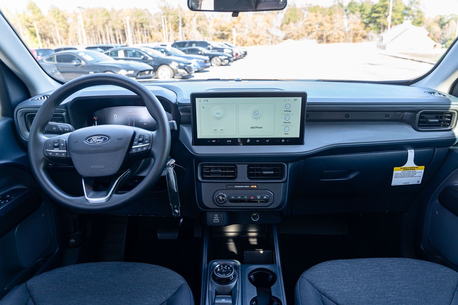 This vehicle comes equipped with Equipment Group 100A (Front Cloth Bucket Seats, Radio: AM/FM Stereo with 6 Speakers, SiriusXM with 360L, SYNC 4 with Enhanced Voice Recognition, and Wheels: 17 Steel with Sparkle Silver Painted Cover), Ford Connectivity Package (1-Year Included), Internet access capable: 5G Modem - Ford Connectivity Package, 2.91 Axle Ratio, 2K Trailer Hitch Receiver with 4-Pin Connector, 4-Wheel Disc Brakes, 6 Speakers, ABS brakes, Air Conditioning, AM/FM radio: SiriusXM with 360L, Apple CarPlay/Android Auto, Auto High Beams, Auto High-beam Headlights, Automatic temperature control, Brake assist, Bumpers: body-color, Compass, Delay-off headlights, Driver door bin, Driver vanity mirror, Dual front impact airbags, Dual front side impact airbags, Electronic Stability Control, Emergency communication system: SYNC 4 911 Assist, Exterior Parking Camera Rear, Front and Rear Floor Liners with Front Carpet Floor Mats, Front anti-roll bar, Front Bucket Seats, Front Center Armrest, Front reading lights, Front wheel independent suspension, Fully automatic headlights, Illuminated entry, Intersection Assist, Knee airbag, Lane-Keeping System, Low tire pressure warning, Occupant sensing airbag, Outside temperature display, Overhead airbag, Overhead console, Panic alarm, Passenger door bin, Passenger vanity mirror, Power steering, Power windows, Pre-Collision Assist with Automatic Emergency Braking, Radio data system, Rear anti-roll bar, Rear step bumper, Rear-View Camera, Remote keyless entry, Speed control, Speed-sensing steering, Steering wheel mounted audio controls, Telescoping steering wheel, Tilt steering wheel, Traction control, and Trip computer.