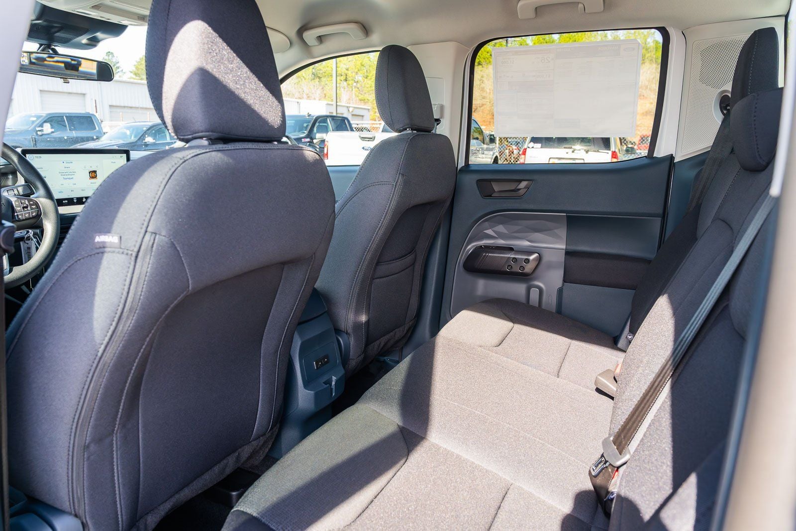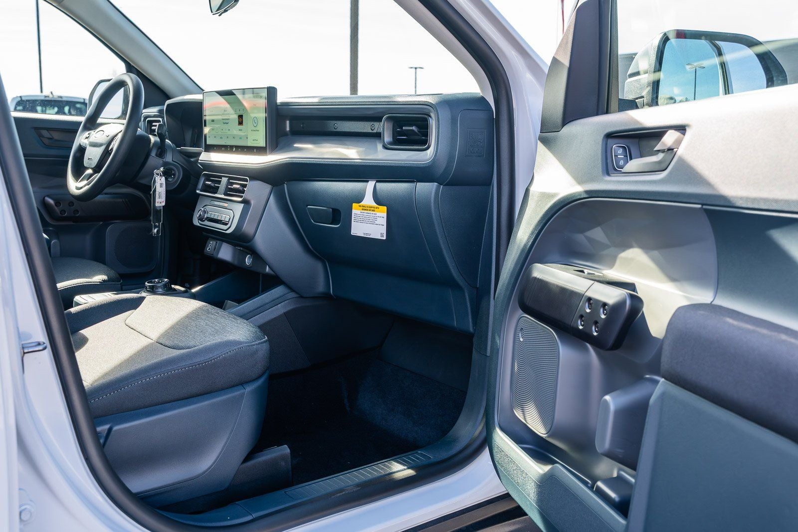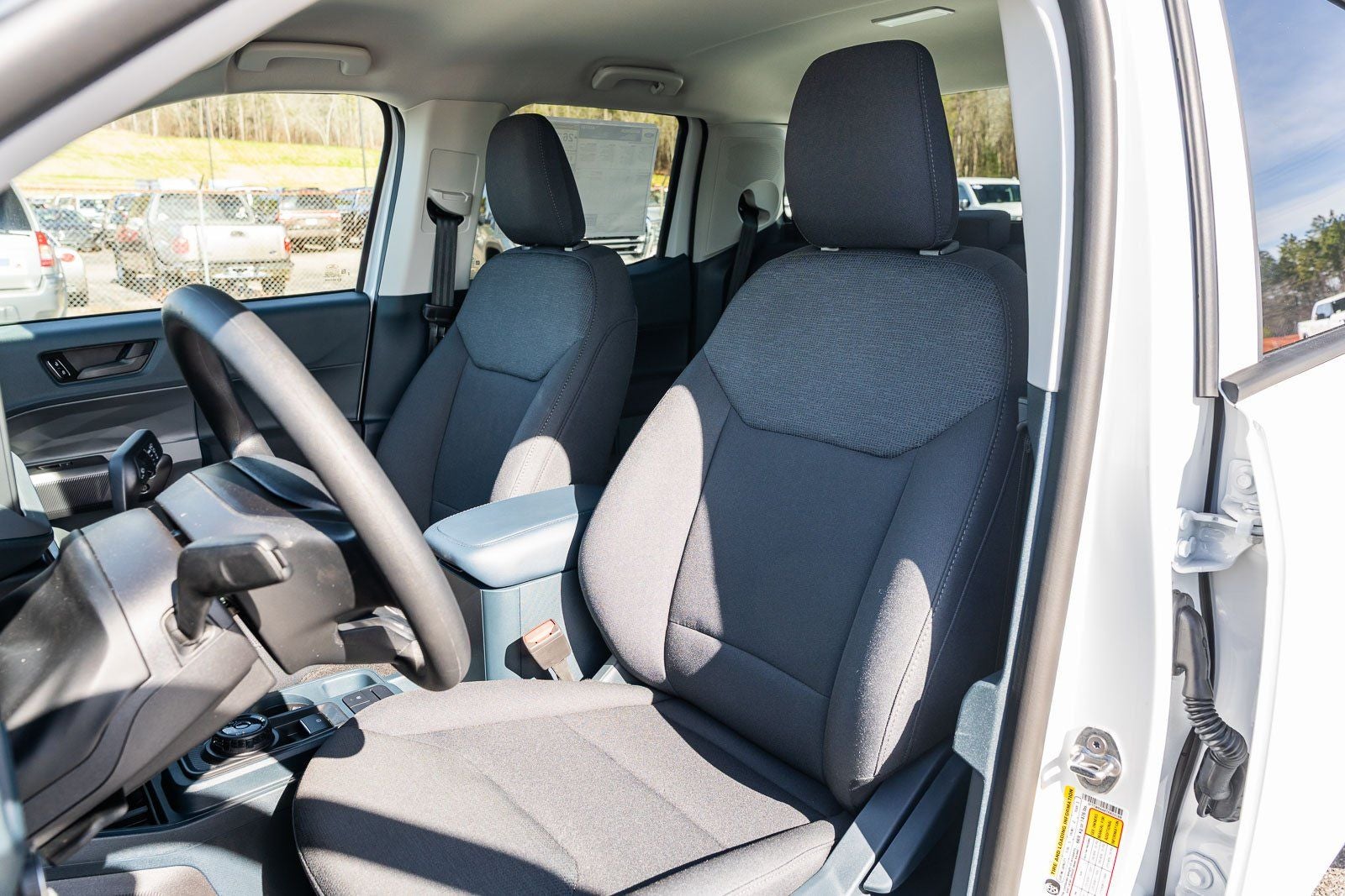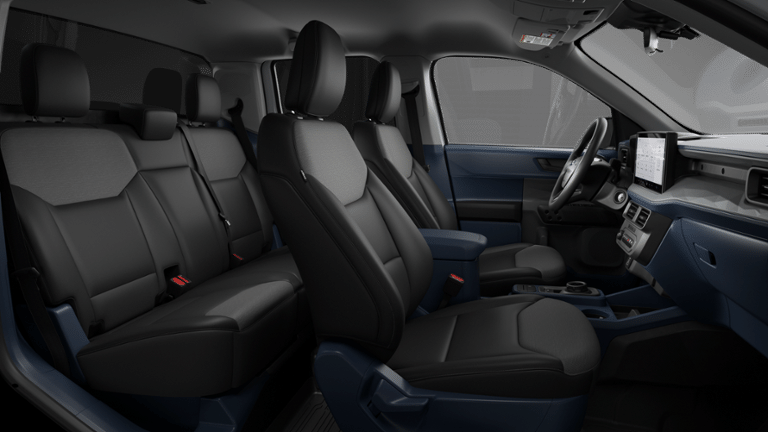This vehicle comes equipped with Equipment Group 100A (Front Cloth Bucket Seats, Radio: AM/FM Stereo with 6 Speakers, SiriusXM with 360L, SYNC 4 with Enhanced Voice Recognition, and Wheels: 17 Steel with Sparkle Silver Painted Cover), Ford Connectivity Package (1-Year Included), Internet access capable: 5G Modem - Ford Connectivity Package, 2.91 Axle Ratio, 2K Trailer Hitch Receiver with 4-Pin Connector, 4-Wheel Disc Brakes, 6 Speakers, ABS brakes, Air Conditioning, AM/FM radio: SiriusXM with 360L, Apple CarPlay/Android Auto, Auto High Beams, Auto High-beam Headlights, Automatic temperature control, Brake assist, Bumpers: body-color, Compass, Delay-off headlights, Driver door bin, Driver vanity mirror, Dual front impact airbags, Dual front side impact airbags, Electronic Stability Control, Emergency communication system: SYNC 4 911 Assist, Exterior Parking Camera Rear, Front and Rear Floor Liners with Front Carpet Floor Mats, Front anti-roll bar, Front Bucket Seats, Front Center Armrest, Front reading lights, Front wheel independent suspension, Fully automatic headlights, Illuminated entry, Intersection Assist, Knee airbag, Lane-Keeping System, Low tire pressure warning, Occupant sensing airbag, Outside temperature display, Overhead airbag, Overhead console, Panic alarm, Passenger door bin, Passenger vanity mirror, Power steering, Power windows, Pre-Collision Assist with Automatic Emergency Braking, Radio data system, Rear anti-roll bar, Rear step bumper, Rear-View Camera, Remote keyless entry, Speed control, Speed-sensing steering, Steering wheel mounted audio controls, Telescoping steering wheel, Tilt steering wheel, Traction control, and Trip computer.