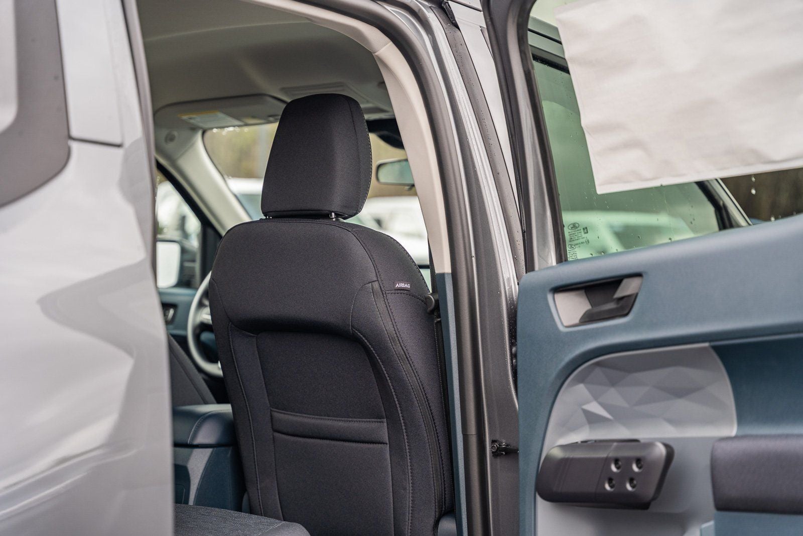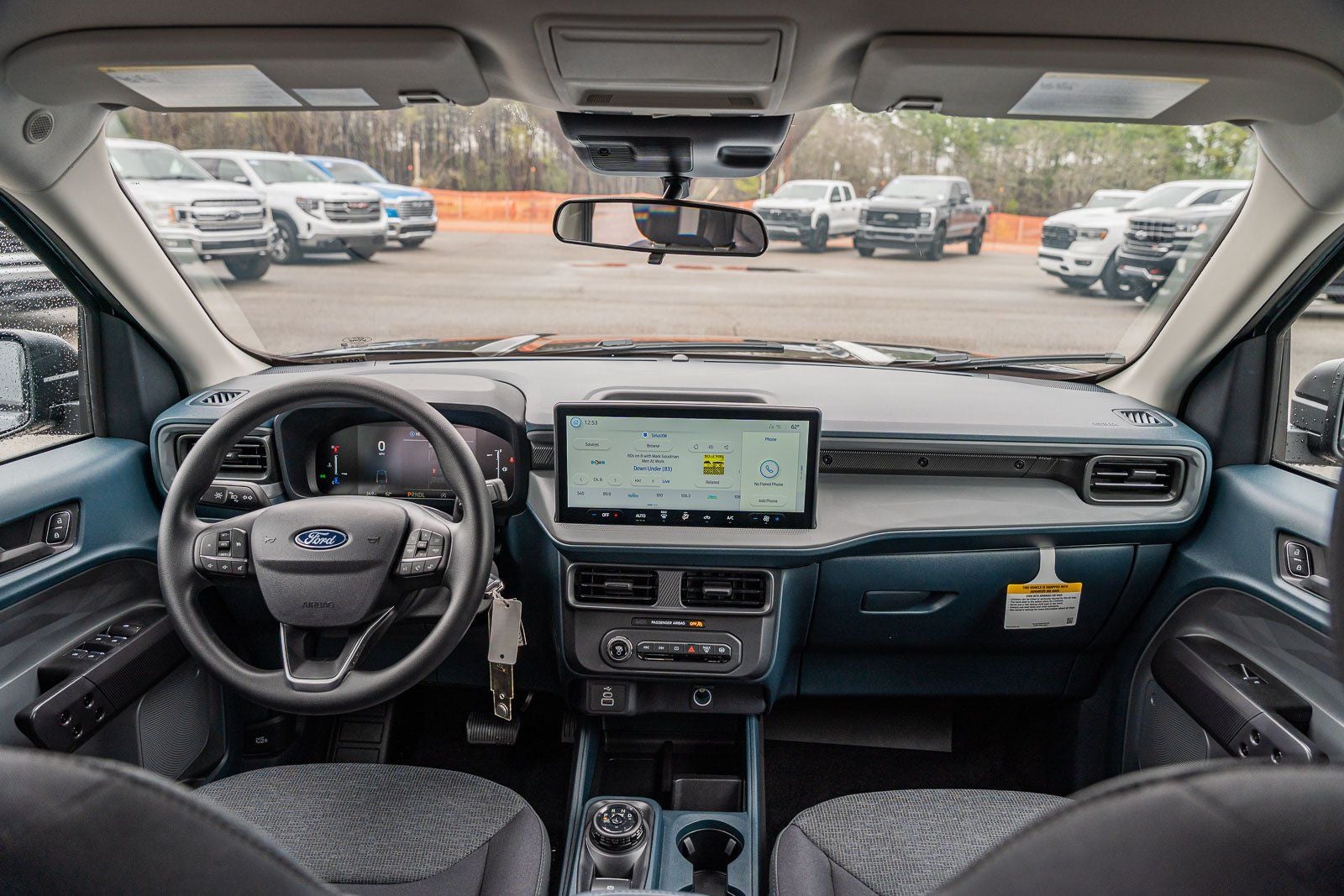This vehicle comes equipped with Equipment Group 102A (Front Cloth Bucket Seats, Radio: AM/FM Stereo with 6 Speakers, SiriusXM with 360L, SYNC 4 with Enhanced Voice Recognition, and Wheels: 17 Steel with Sparkle Silver Painted Cover), Ford Connectivity Package (1-Year Included), Internet access capable: 5G Modem - Ford Connectivity Package, 2.91 Axle Ratio, 2K Trailer Hitch Receiver with 4-Pin Connector, 4-Wheel Disc Brakes, 6 Speakers, ABS brakes, Air Conditioning, AM/FM radio: SiriusXM with 360L, Apple CarPlay/Android Auto, Auto High Beams, Auto High-beam Headlights, Automatic temperature control, Brake assist, Bumpers: body-color, Compass, Delay-off headlights, Driver door bin, Driver vanity mirror, Dual front impact airbags, Dual front side impact airbags, Electronic Stability Control, Emergency communication system: SYNC 4 911 Assist, Exterior Parking Camera Rear, Four wheel independent suspension, Front and Rear Floor Liners with Front Carpet Floor Mats, Front anti-roll bar, Front Bucket Seats, Front Center Armrest, Front reading lights, Fully automatic headlights, Illuminated entry, Intersection Assist, Knee airbag, Lane-Keeping System, Low tire pressure warning, Occupant sensing airbag, Outside temperature display, Overhead airbag, Overhead console, Panic alarm, Passenger door bin, Passenger vanity mirror, Power steering, Power windows, Pre-Collision Assist with Automatic Emergency Braking, Radio data system, Rear anti-roll bar, Rear step bumper, Rear-View Camera, Remote keyless entry, Speed control, Speed-sensing steering, Steering wheel mounted audio controls, Telescoping steering wheel, Tilt steering wheel, Traction control, and Trip computer.