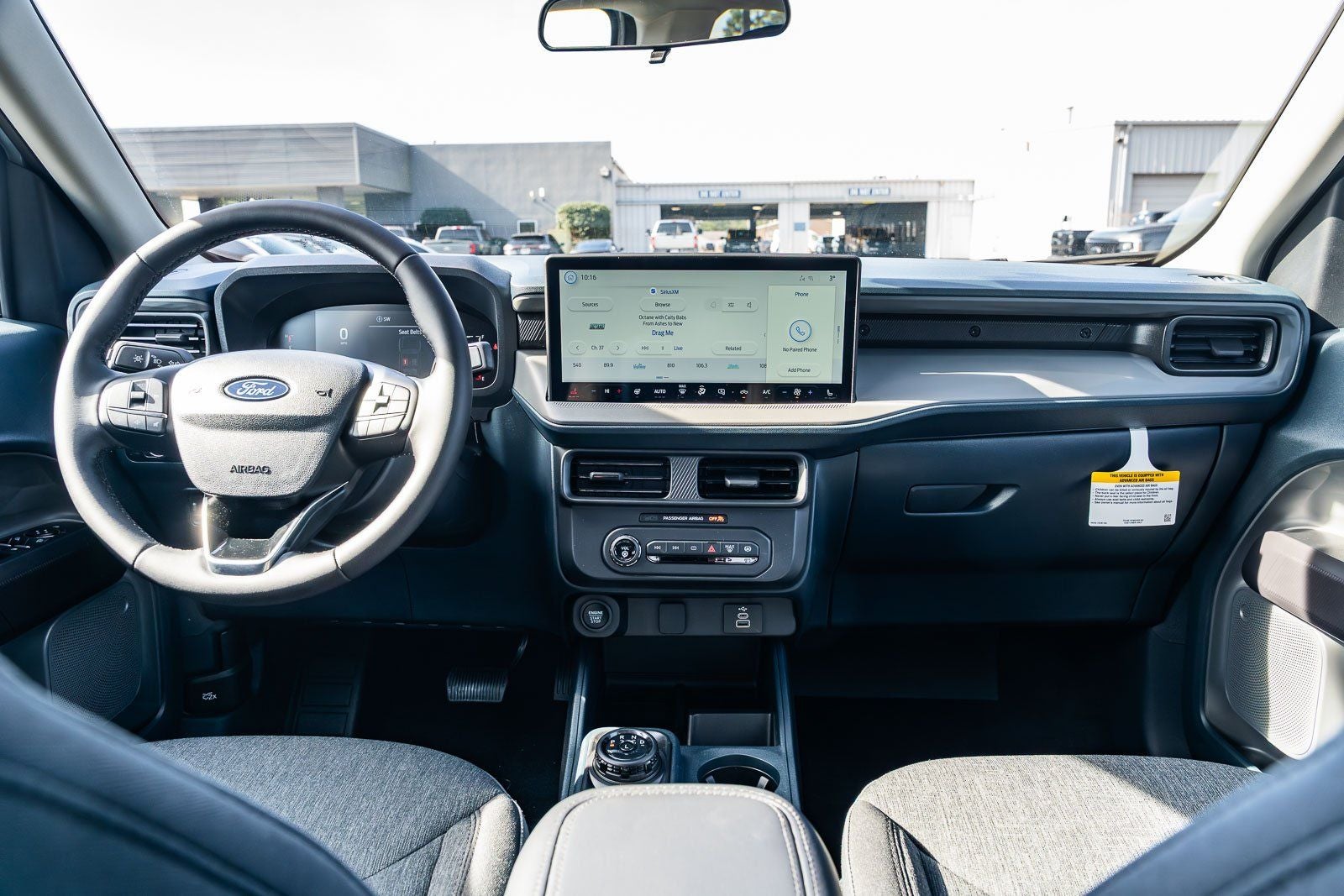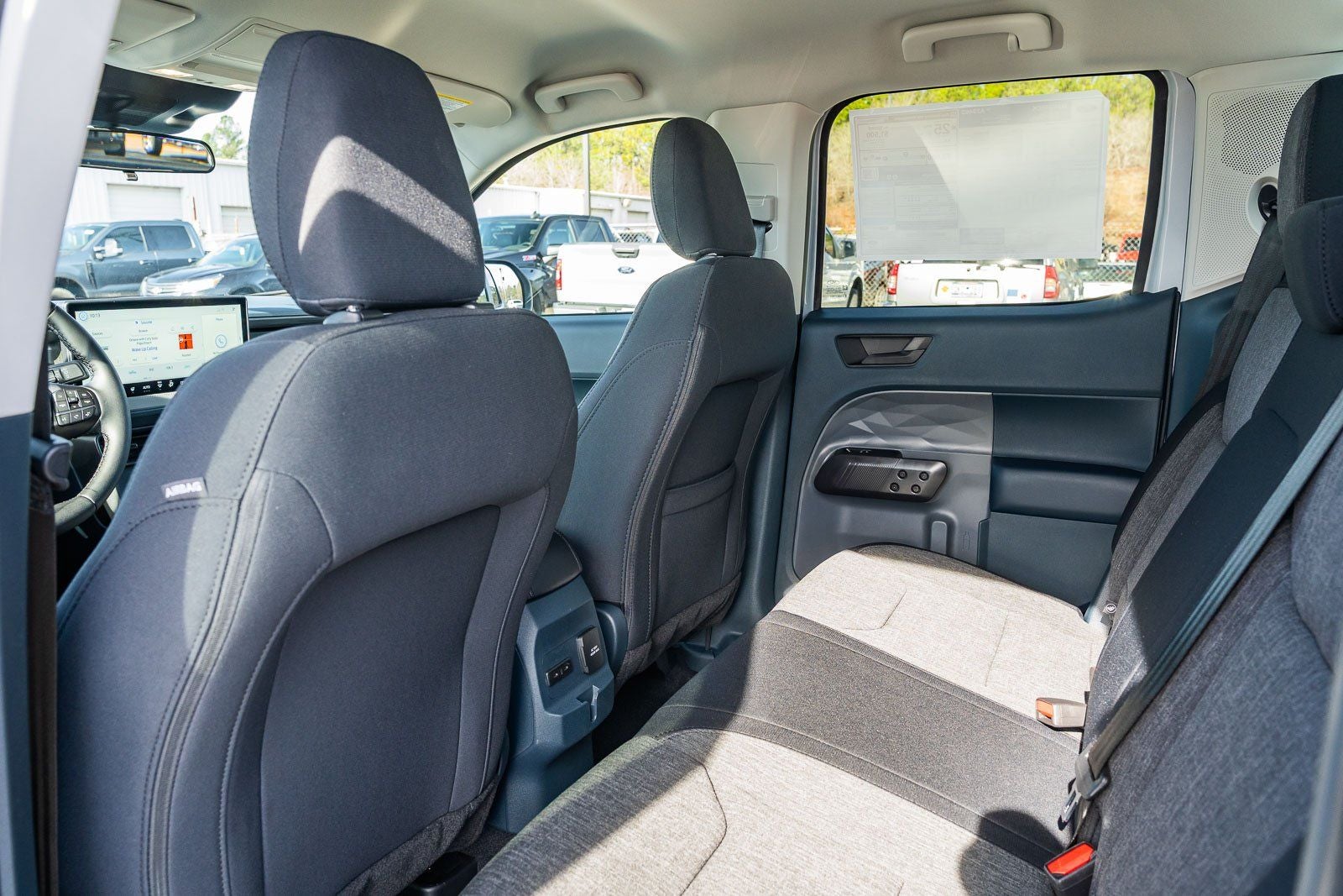This vehicle comes equipped with 4K Tow Package (Trailer Brake Controller, Trailer Hitch (class III) 2 Receiver, and Upgraded Cooling Fan), Black Appearance Package (Black Grille, Black Interior Accents, Black Painted Mirrors, Unique Cloth Front Bucket Seats with Black Appearance, and Wheels: 19 Black Painted Aluminum), Equipment Group 302A (Radio: AM/FM Stereo with 6 Speakers, SiriusXM with 360L, SYNC 4 with Enhanced Voice Recognition, Unique Cloth Front Bucket Seats, and Wheels: 17 Carbonized Gray Painted Aluminum), Ford Co-Pilot360 (Auto High Beams, BLIS with Cross-Traffic Alert and Trailer Coverage, Exit Warning, Intersection Assist, Lane-Keeping System, Power Glass Manual-Folding Mirrors, Pre-Collision Assist with Automatic Emergency Braking, Rear Cross Traffic Braking, Rear Parking Sensors, and Rear-View Camera), Ford Connectivity Package (1-Year Included), Internet access capable: 5G Modem - Ford Connectivity Package, XLT Luxury Package (Heated Mirror with Painted Black Skull Caps, Heated Seats, LED Box Lighting, Pro Power Onboard - 400W, Remote Start System, and Soft Vinyl Wrapped Heated Steering Wheel), 2.91 Axle Ratio, 4-Wheel Disc Brakes, 6 Speakers, ABS brakes, Air Conditioning, Alloy wheels, AM/FM radio: SiriusXM with 360L, Apple CarPlay/Android Auto, Auto High-beam Headlights, Automatic temperature control, Brake assist, Bumpers: body-color, Compass, Delay-off headlights, Driver door bin, Driver vanity mirror, Dual front impact airbags, Dual front side impact airbags, Electronic Stability Control, Emergency communication system: SYNC 4 911 Assist, Exterior Parking Camera Rear, Four wheel independent suspension, Front and Rear Floor Liners with Front Carpet Floor Mats, Front anti-roll bar, Front Bucket Seats, Front Center Armrest, Front reading lights, Fully automatic headlights, Illuminated entry, Knee airbag, Low tire pressure warning, Occupant sensing airbag, Outside temperature display, Overhead airbag, Overhead console, Panic alarm, Passenger door bin, Passenger vanity mirror, Power door mirrors, Power steering, Power windows, Radio data system, Rear anti-roll bar, Rear seat center armrest, Rear step bumper, Remote keyless entry, Security system, Speed control, Speed-sensing steering, Steering wheel mounted audio controls, Telescoping steering wheel, Tilt steering wheel, Traction control, and Trip computer.