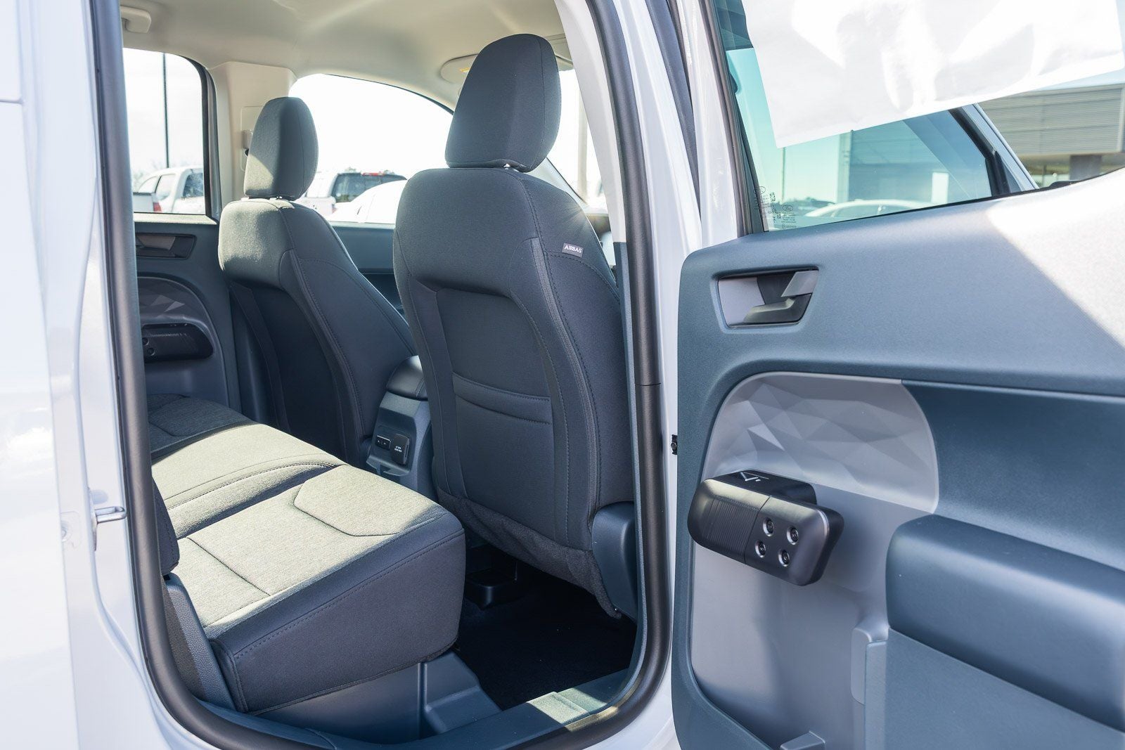 - Unique Cloth Front Bucket Seats with Black Appearance