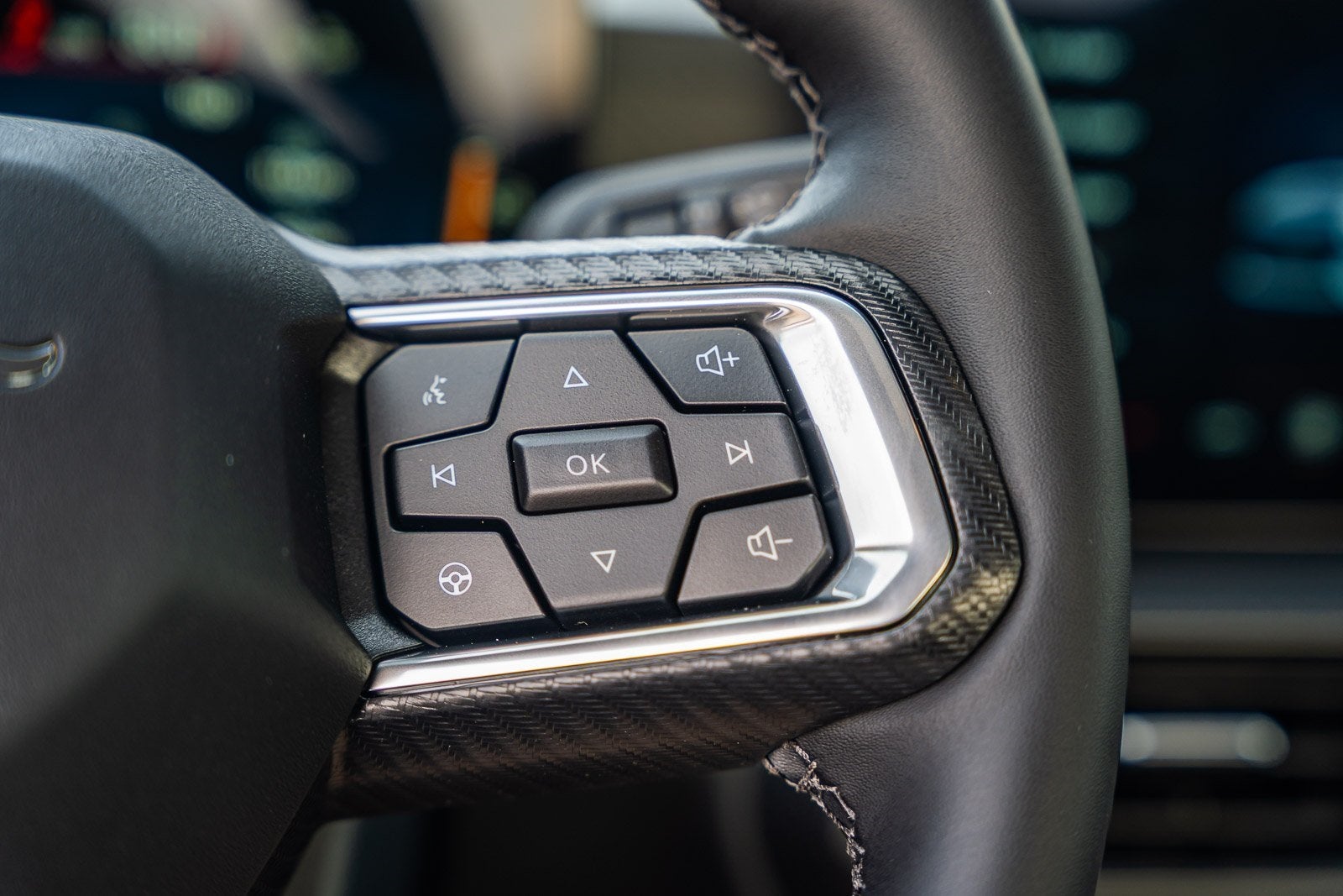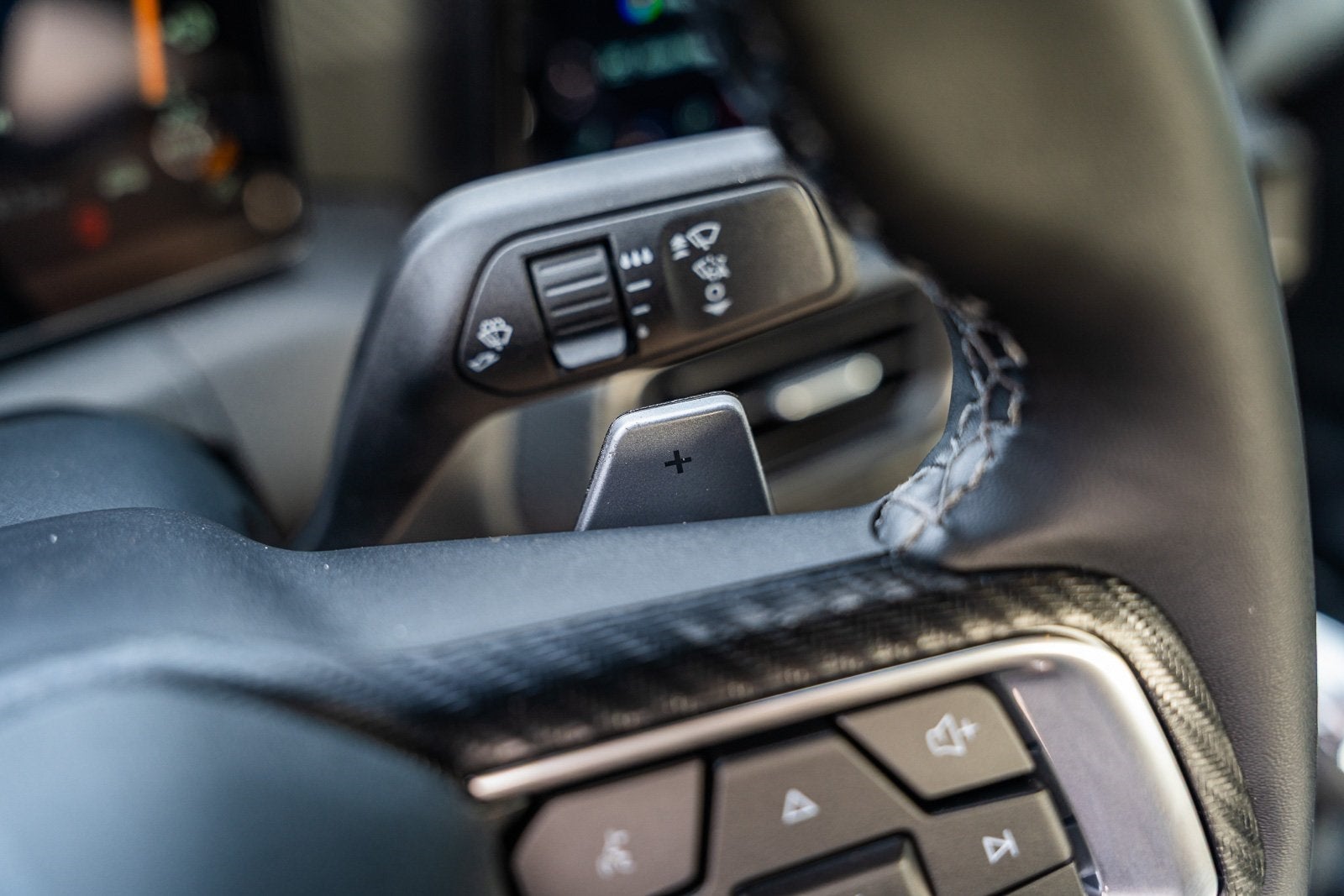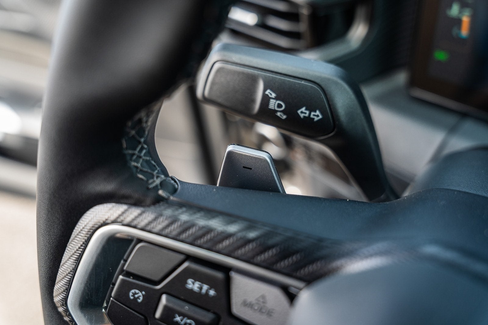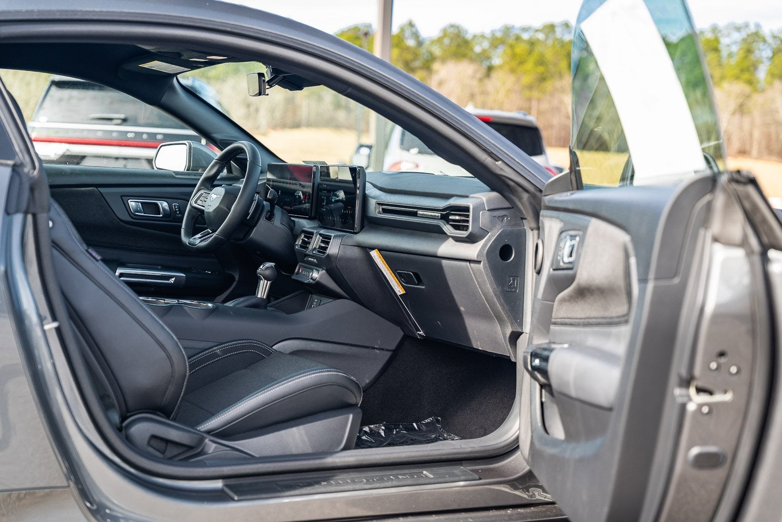 This vehicle comes equipped with Equipment Group 301A High Package (AM/FM Stereo, Ambient Lighting with MyColor, SiriusXM with 360L and HD Radio, SYNC 4, and Wheels: 8 x 8.5 Ebony Black Painted Aluminum), 1st Row Carpeted Black Floor Mats, 4-Wheel Disc Brakes, ABS brakes, Active Valve Performance Exhaust, Air Conditioning, Alloy wheels, Auto High-beam Headlights, Automatic temperature control, Brake assist, Bumpers: body-color, Compass, Delay-off headlights, Driver door bin, Driver vanity mirror, Dual front impact airbags, Dual front side impact airbags, Electronic Stability Control, Emergency communication system: 911 Assist, Exterior Parking Camera Rear, Four wheel independent suspension, Front anti-roll bar, Front Bucket Seats, Front Center Armrest, Front dual zone A/C, Front reading lights, Fully automatic headlights, Illuminated entry, Knee airbag, Leather Shift Knob, Leather steering wheel, Low tire pressure warning, Occupant sensing airbag, Outside temperature display, Overhead airbag, Overhead console, Panic alarm, Passenger door bin, Passenger vanity mirror, Power door mirrors, Power steering, Power windows, Radio data system, Rain sensing wipers, Rear anti-roll bar, Rear Parking Sensors, Rear window defroster, Remote keyless entry, Speed control, Speed-sensing steering, Speed-Sensitive Wipers, Split folding rear seat, Sport steering wheel, Steering wheel mounted audio controls, Tachometer, Telescoping steering wheel, Tilt steering wheel, Traction control, Trip computer, Variably intermittent wipers, and Voltmeter.