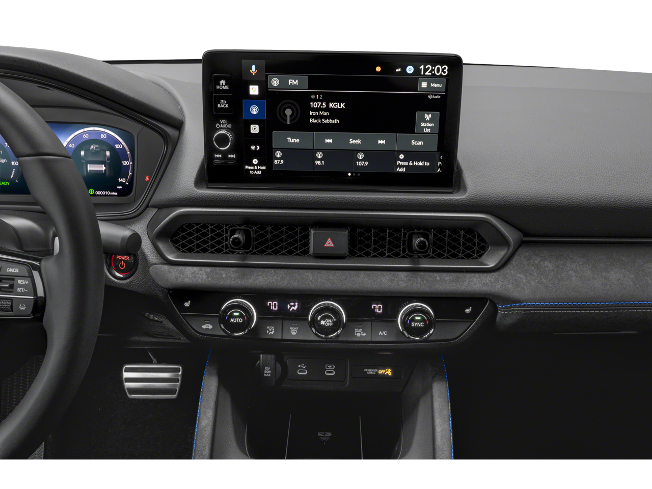 • Radio: Bose Premium Sound System -inc: 8 speakers w/subwoofer, 9" color touchscreen, Google and Alexa Built-in (includes 3 years unlimited data plan for in-vehicle apps), Bluetooth® HandsFreeLink and streaming audio, HondaLink, Speed-Sensitive Volume Compensation (SVC), Radio Data System (RDS), wireless Apple CarPlay and wireless Android Auto compatibility, USB-C 3.0A smartphone/audio interface and charging port, 12-volt power outlet, HD Radio and wireless phone charger