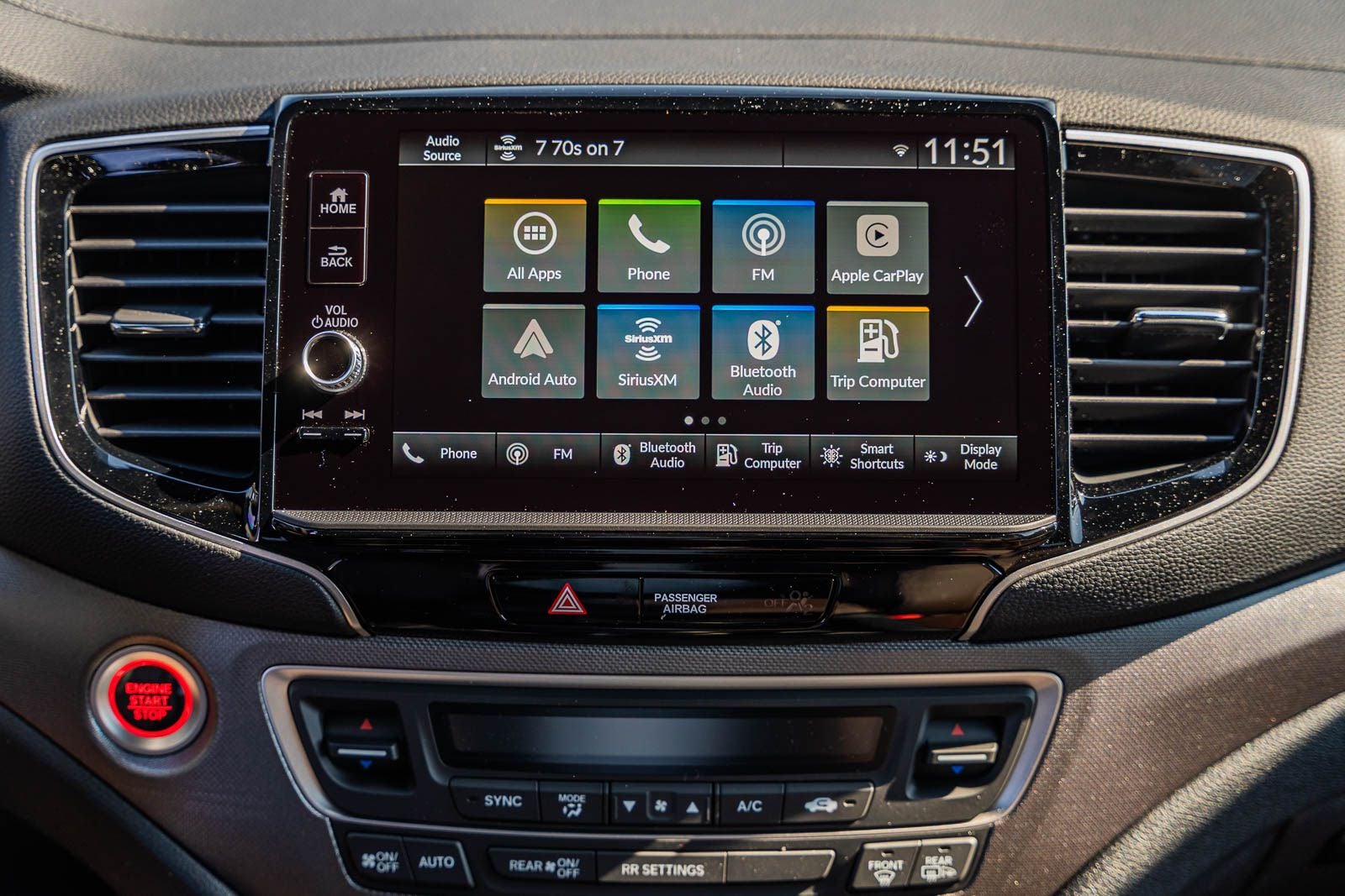 - Radio: 215-Watt Audio System w/7 Speakers -inc: subwoofer, 9" color touchscreen, Bluetooth® streaming audio, Speed-Sensitive Volume Compensation (SVC), wireless Apple CarPlay/Android Auto compatibility and 2.5A USB-A data port in front console, HondaLink, Select HondaLink features are complimentary, 36-month complimentary trials are available for security and remote packages, A subscription is required to continue HondaLink services after the trial ends