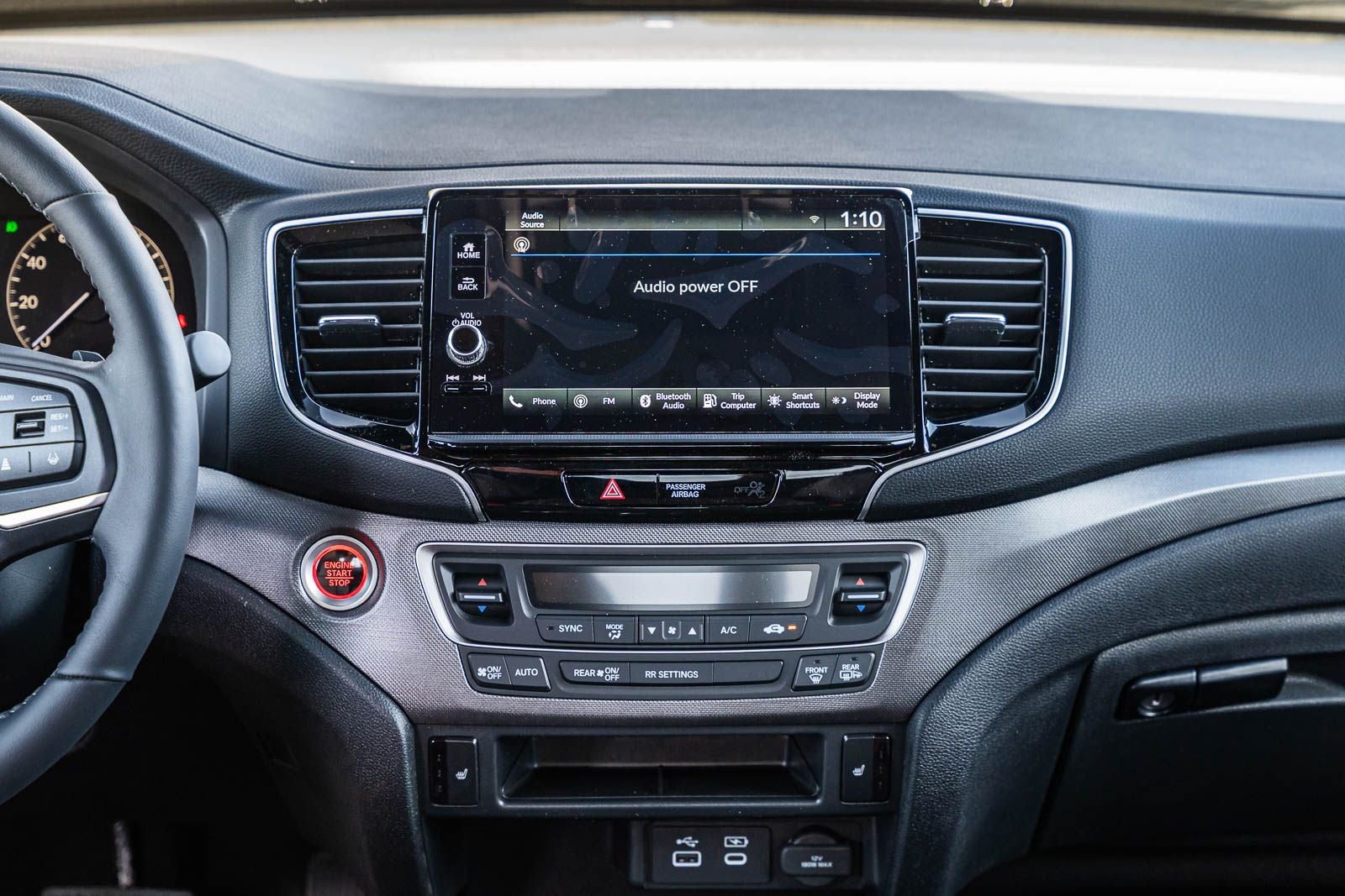- Radio: 215-Watt Audio System w/7 Speakers -inc: subwoofer, 9" color touchscreen, Bluetooth® streaming audio, Speed-Sensitive Volume Compensation (SVC), wireless Apple CarPlay/Android Auto compatibility and 2.5A USB-A data port in front console, HondaLink, Select HondaLink features are complimentary, 36-month complimentary trials are available for security and remote packages, A subscription is required to continue HondaLink services after the trial ends