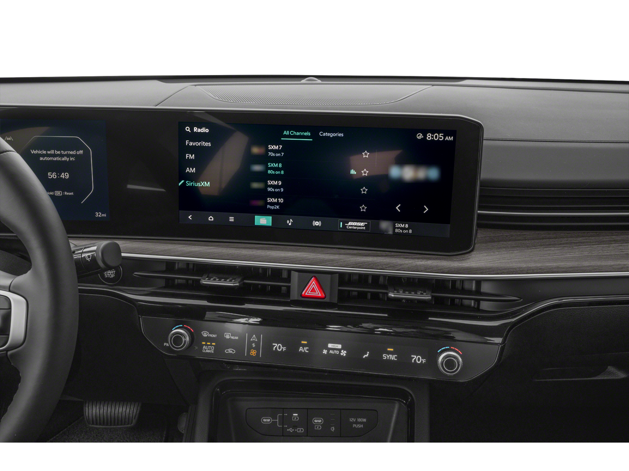 • Radio: AM/FM Audio System -inc: Bose Premium Audio w/12 speakers including center speaker, subwoofer, external amplifier, active sound design, 12.3" display screen, navigation, HD Radio, satellite digital radio, USB, telematics, Bluetooth®, voice recognition, wireless Android Auto and Apple CarPlay