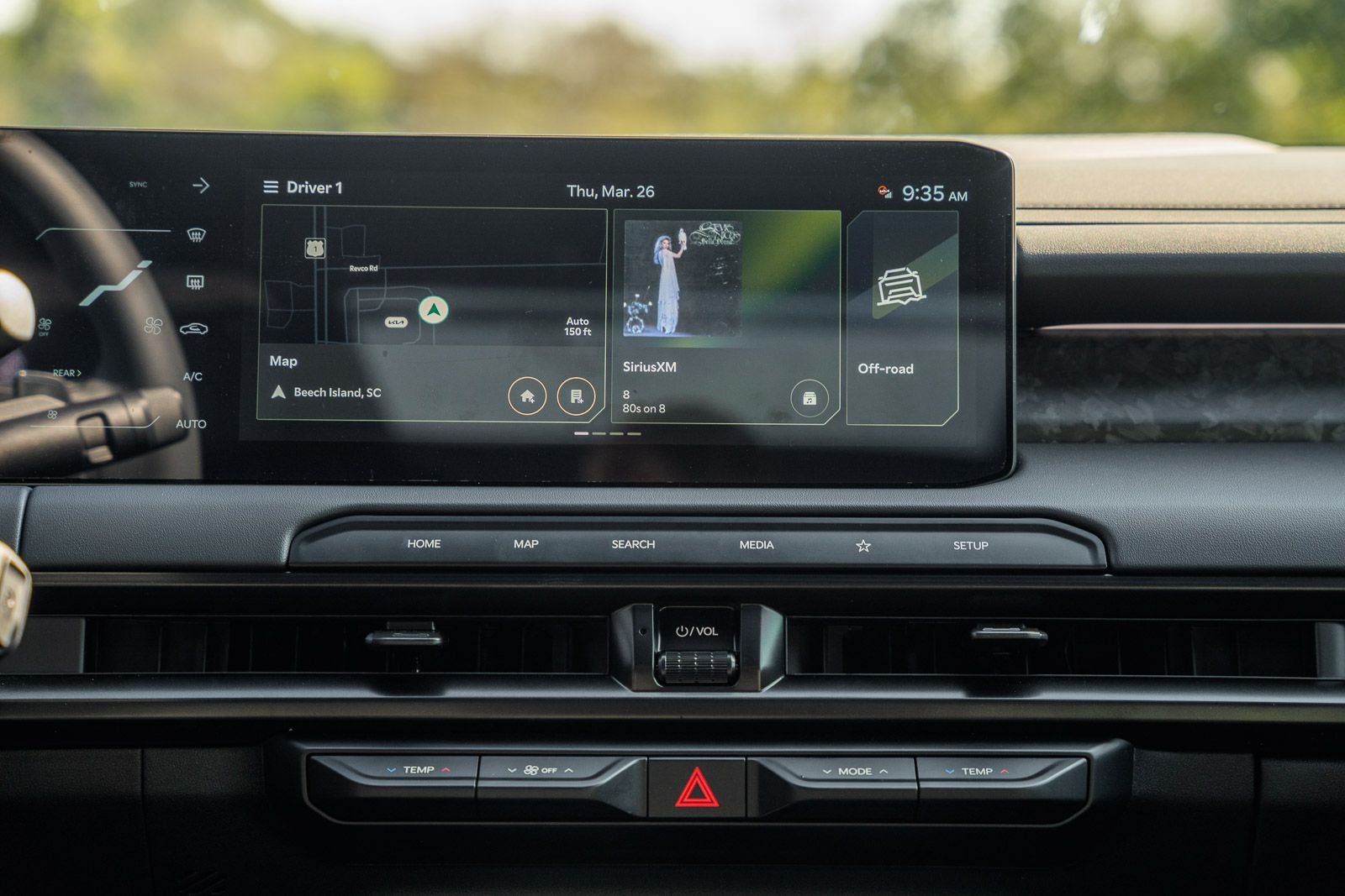 - Radio: AM/FM Audio System -inc: 12.3" center infotainment w/navigation, wireless Apple CarPlay and Android Auto, SiriusXM, Bluetooth® w/voice recognition, 14 speakers Meridian audio system, 10" subwoofer, passenger talk, Wi-Fi hotspot, Kia Connect, Over-the-Air update capability and 1 data USB-C port in front row