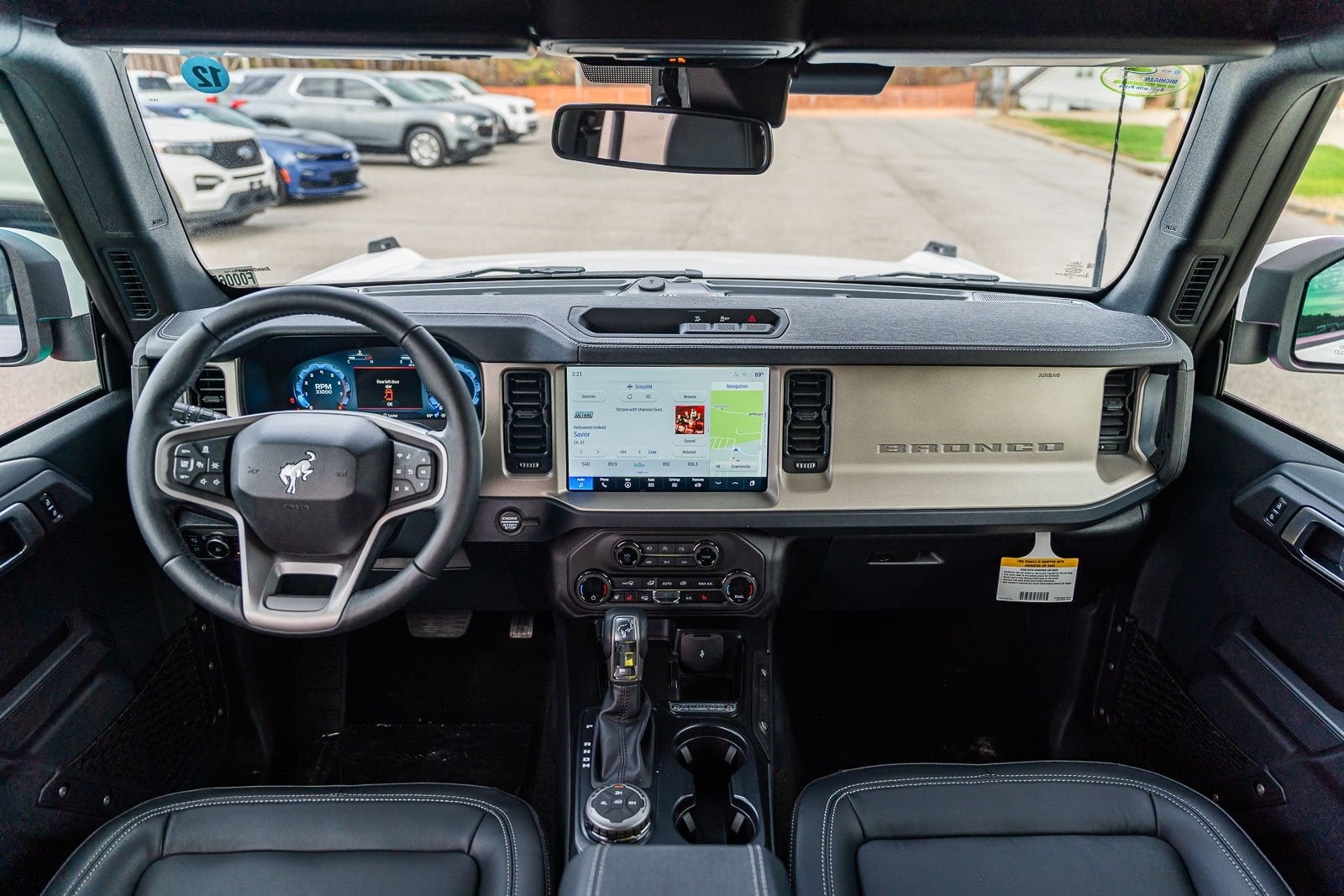 This vehicle comes equipped with Equipment Group 314A Lux Package (360-Degree Camera, Adaptive Cruise Control, Evasive Steering Assist, Front Parking Sensors, Information on Demand Panel, Radio: B&O Sound System by Bang & Olufsen, Sideview Mirrors, and Universal Garage Door Opener), 18 Bright Machined Aluminum Wheels, 3.73 Axle Ratio, 4-Wheel Disc Brakes, 7 Speakers, ABS brakes, Air Conditioning, Alloy wheels, AM/FM radio: SiriusXM with 360L, AM/FM Stereo, Auto High-beam Headlights, Auto-dimming Rear-View mirror, Automatic temperature control, Brake assist, Compass, Connected Navigation, Delay-off headlights, Driver door bin, Driver vanity mirror, Dual front impact airbags, Dual front side impact airbags, Electronic Stability Control, Emergency communication system: 911 Assist, Exterior Parking Camera Rear, Front anti-roll bar, Front Bucket Seats, Front Center Armrest, Front dual zone A/C, Front fog lights, Front License Plate Bracket, Front reading lights, Front wheel independent suspension, Fully automatic headlights, Hard Top Sound Deadening Headliner, Heated door mirrors, Heated front seats, Heated Leather-Trimmed/Vinyl Bucket Seats, Heated steering wheel, Illuminated entry, Integrated roll-over protection, Internet access capable: FordPass Connect, Leather Shift Knob, Low tire pressure warning, Navigation system: Connected Navigation, Occupant sensing airbag, Outside temperature display, Overhead airbag, Overhead console, Panic alarm, Passenger door bin, Passenger vanity mirror, Power door mirrors, Power driver seat, Power passenger seat, Power steering, Power windows, Radio data system, Rear seat center armrest, Rear-Window Defroster & Washer, Remote keyless entry, Security system, Shadow Black-Painted Hard Top, SiriusXM w/360L, Speed control, Split folding rear seat, Steering wheel mounted audio controls, SYNC 4, Tachometer, Telescoping steering wheel, Tilt steering wheel, Traction control, Trip computer, Variably intermittent wipers, and Voltmeter.