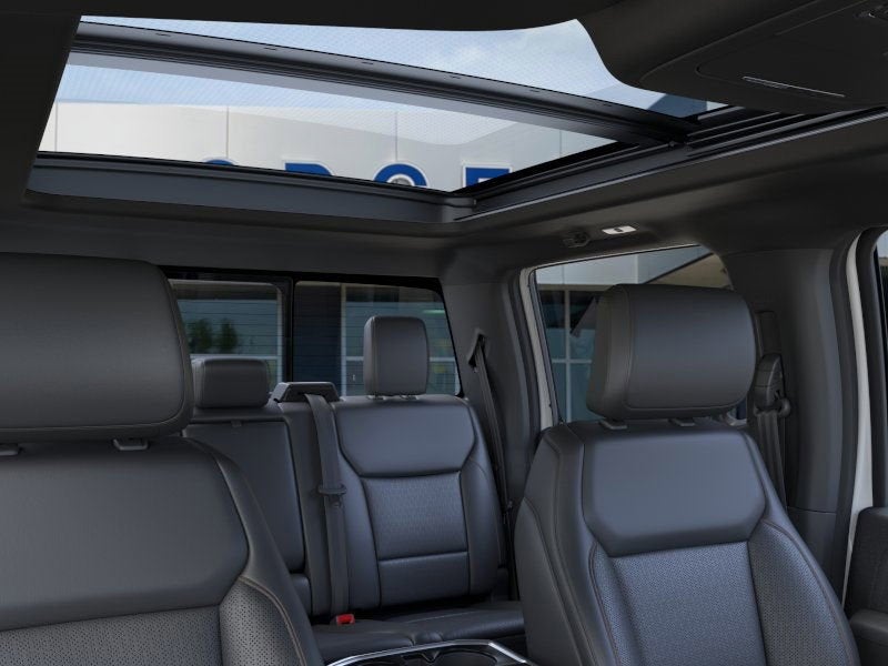 This vehicle comes equipped with Bed Utility Package (4 Pickup Box Tie-Down Plates, LED Box Lighting, Power Tailgate, and Pro Access Tailgate), Equipment Group 501A Mid (6 Angular Bright Anodized Step Bar, Illuminated Driver & Passenger Visors, Power-Sliding Rear Window, and Wheels: 20 Chrome-Like PVD), Mobile Office Package (Console Worksurface, Partitioned Lockable Rear Storage, and Wireless Charging), Tow/Haul Package, 3.5L PowerBoost Full-Hybrid V6, 4WD, 4-Wheel Disc Brakes, 6 Extended Running Boards, 8 Speakers, ABS brakes, ActiveX Trimmed Bucket Seats, Adjustable pedals, Air Conditioning, Alloy wheels, AM/FM radio: SiriusXM with 360L, Auto High-beam Headlights, Auto-dimming door mirrors, Auto-dimming Rear-View mirror, Automatic temperature control, Brake assist, Bumpers: chrome, Chrome wheels, Compass, Delay-off headlights, Driver door bin, Driver vanity mirror, Dual front impact airbags, Dual front side impact airbags, Electronic Stability Control, Emergency communication system: SYNC 4 911 Assist, Front anti-roll bar, Front Bucket Seats, Front Center Armrest, Front dual zone A/C, Front fog lights, Front reading lights, Front wheel independent suspension, Fully automatic headlights, Garage door transmitter, Heated door mirrors, Heated front seats, Heated steering wheel, Illuminated entry, Low tire pressure warning, Memory seat, Navigation system: Connected Navigation, Occupant sensing airbag, Outside temperature display, Overhead airbag, Overhead console, Panic alarm, Passenger door bin, Passenger vanity mirror, Pedal memory, Power door mirrors, Power driver seat, Power passenger seat, Power steering, Power windows, Pro Power Onboard - 7.2KW, Radio data system, Radio: B&O Sound System by Bang & Olufsen, Rain sensing wipers, Rear reading lights, Rear seat center armrest, Rear step bumper, Rear window defroster, Remote keyless entry, Security system, Speed control, Split folding rear seat, Steering wheel mounted audio controls, SYNC 4 w/Enhanced Voice Recognition, Tachometer, Telescoping steering wheel, Tilt steering wheel, Traction control, Trip computer, Turn signal indicator mirrors, Twin Panel Moonroof, Variably intermittent wipers, Ventilated front seats, Voltmeter, and Wheels: 18 Chrome-Like PVD.