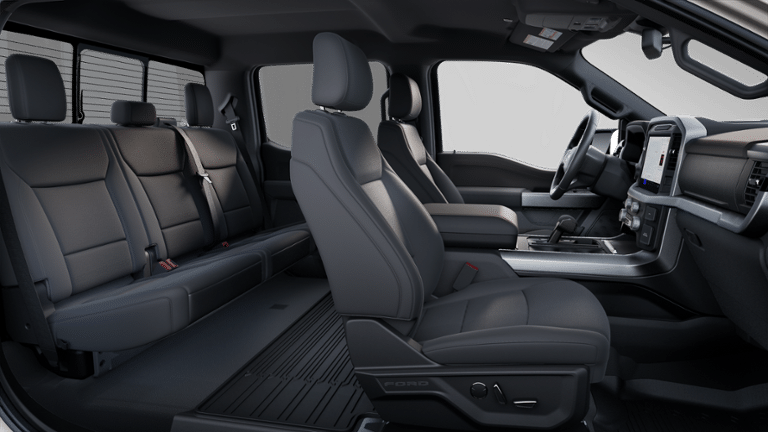 This vehicle comes equipped with GVWR: 6,650 lbs Payload Package, 4WD, 3.55 Axle Ratio, 4-Wheel Disc Brakes, 6 Speakers, ABS brakes, Air Conditioning, Alloy wheels, AM/FM radio: SiriusXM with 360L, Auto High-beam Headlights, Brake assist, Bumpers: chrome, Chrome wheels, Cloth 40/20/40 Front Seat, Compass, Delay-off headlights, Driver door bin, Driver vanity mirror, Dual front impact airbags, Dual front side impact airbags, Electronic Stability Control, Emergency communication system: SYNC 4 911 Assist, Front anti-roll bar, Front Center Armrest, Front fog lights, Front reading lights, Front wheel independent suspension, Fully automatic headlights, Heated door mirrors, Illuminated entry, Low tire pressure warning, Occupant sensing airbag, Outside temperature display, Overhead airbag, Overhead console, Panic alarm, Passenger door bin, Passenger vanity mirror, Power door mirrors, Power steering, Power windows, Radio data system, Radio: AM/FM Stereo w/SiriusXM 360L, Rear Parking Sensors, Rear reading lights, Rear step bumper, Rear window defroster, Remote keyless entry, Security system, Speed control, Split folding rear seat, Steering wheel mounted audio controls, SYNC 4 w/Enhanced Voice Recognition, Tachometer, Telescoping steering wheel, Tilt steering wheel, Traction control, Trip computer, Variably intermittent wipers, Voltmeter, and Wheels: 18 Chrome-Like PVD.