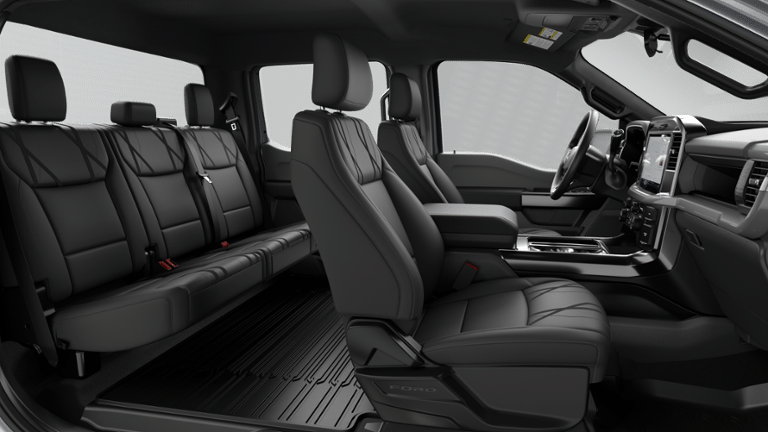 This vehicle comes equipped with Equipment Group 200B Standard (3.55 Axle Ratio, Radio: AM/FM Stereo with SiriusXM 360L, SYNC 4 with Enhanced Voice Recognition, Unique Sport Cloth 40/Console/40 Front-Seats, and Wheels: 18 Gloss Black), Ford Connectivity Package (1-Year Included), GVWR: 6,650 lbs Payload Package, Internet access capable: 5G Modem - Ford Connectivity Package, 4WD, 4-Wheel Disc Brakes, 6 Speakers, ABS brakes, Air Conditioning, Alloy wheels, AM/FM radio: SiriusXM with 360L, Auto High-beam Headlights, Brake assist, Bumpers: body-color, Compass, Delay-off headlights, Driver door bin, Dual front impact airbags, Dual front side impact airbags, Electronic Stability Control, Emergency communication system: SYNC 4 911 Assist, Front anti-roll bar, Front Bucket Seats, Front Center Armrest, Front License Plate Bracket, Front reading lights, Front wheel independent suspension, Fully automatic headlights, Heated door mirrors, Illuminated entry, Low tire pressure warning, Occupant sensing airbag, Outside temperature display, Overhead airbag, Overhead console, Panic alarm, Passenger door bin, Passenger vanity mirror, Power door mirrors, Power steering, Power windows, Radio data system, Rear step bumper, Rear window defroster, Remote keyless entry, Security system, Speed control, Split folding rear seat, Steering wheel mounted audio controls, Tachometer, Telescoping steering wheel, Tilt steering wheel, Traction control, Tray Style Floor Liner with Carpet Mats, Trip computer, and Variably intermittent wipers.