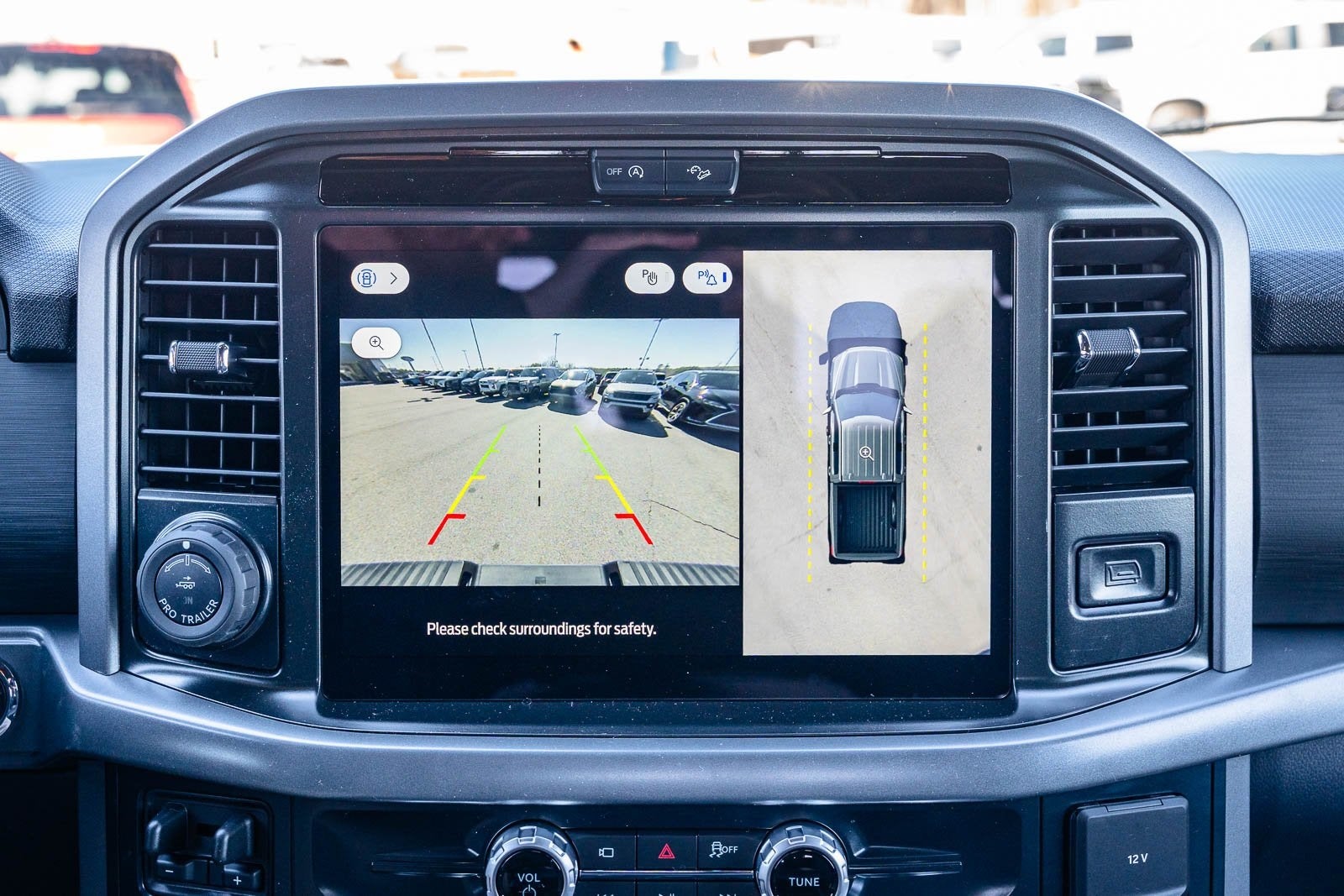This vehicle comes equipped with Bed Utility Package (4 Pickup Box Tie-Down Plates, Bed Storage Boxes, LED Box Lighting, and Tailgate Step with Work Surface), Equipment Group 302A Mid (18 Painted Aluminum Wheels, 360 Degree Camera, 400W Pro Power Onboard (cab & Bed), Adaptive Cruise Control with Stop and Go, AEB Oncoming, Auto-Dimming Rear-View Mirror, Body-Color Door Handles, Chrome Front and Rear Bumpers, Cloth 40/20/40 Front Seat, Dual-Zone Electronic Automatic Temperature Control, Ford Co-Pilot360 Assist 2.0, Front Parking Sensors, Heated Front Seats, Intelligent Access with Push Button Start, Power Glass Heated Sideview Mirrors, Power-Sliding Rear Window, Radio: AM/FM Stereo with SiriusXM 360L, Remote Start System with Remote Tailgate Release, SYNC 4 with Enhanced Voice Recognition, Towing Technology, and Wrapped Steering Wheel), Ford Connectivity Package (1-Year Included), FX4 Off-Road Package, Internet access capable: 5G Modem - Ford Connectivity Package, Tow/Haul Package, XLT Black Appearance Package, 4WD, 4-Wheel Disc Brakes, 6 Speakers, ABS brakes, Air Conditioning, Alloy wheels, AM/FM radio: SiriusXM with 360L, Auto High-beam Headlights, BlueCruise (equipment + 1 Year + 90-Day Plan), Brake assist, Bumpers: body-color, Compass, Delay-off headlights, Driver door bin, Driver vanity mirror, Dual front impact airbags, Dual front side impact airbags, Electronic Stability Control, Emergency communication system: SYNC 4 911 Assist, Front anti-roll bar, Front Center Armrest, Front fog lights, Front License Plate Bracket, Front reading lights, Front wheel independent suspension, Fully automatic headlights, Heated door mirrors, Illuminated entry, Low tire pressure warning, Occupant sensing airbag, Outside temperature display, Overhead airbag, Overhead console, Panic alarm, Passenger door bin, Passenger vanity mirror, Power door mirrors, Power steering, Power windows, Radio data system, Rear Parking Sensors, Rear reading lights, Rear step bumper, Rear window defroster, Remote keyless entry, Security system, Speed control, Split folding rear seat, Steering wheel mounted audio controls, Tachometer, Telescoping steering wheel, Tilt steering wheel, Traction control, Trip computer, and Variably intermittent wipers.