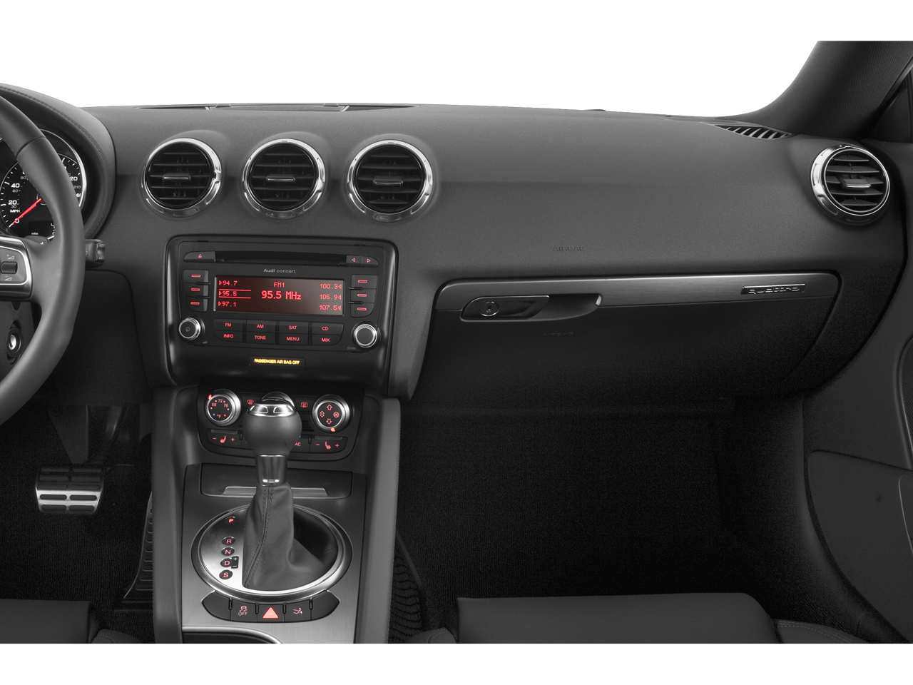 - Radio: Audi Concert AM/FM/SAT w/CD Player -inc: MP3 reading capability, presets, phase diversity for improved AM/FM reception, 12 speaker Bose sound system, 255 watt amplifier, RDS (Radio Data System) displays radio station call letters and other information, GALA (Graduated Audio Level Adjustment) which varies volume based on vehicle speed, and theft deterrent design