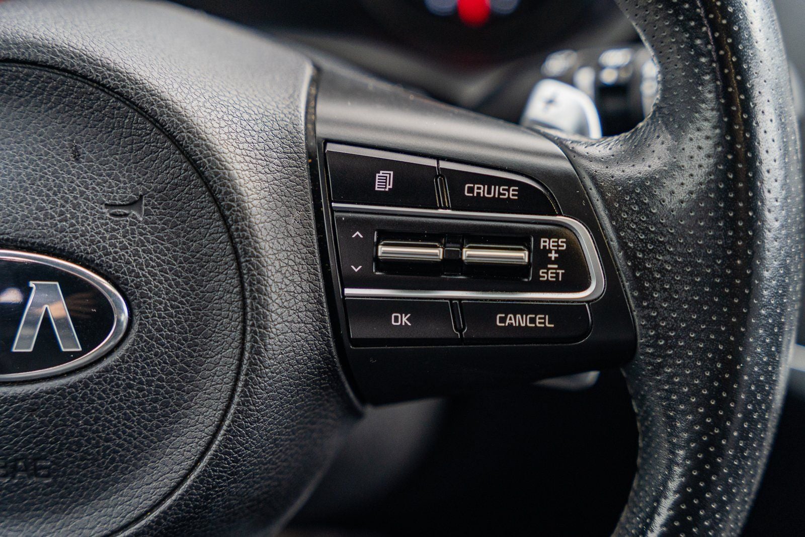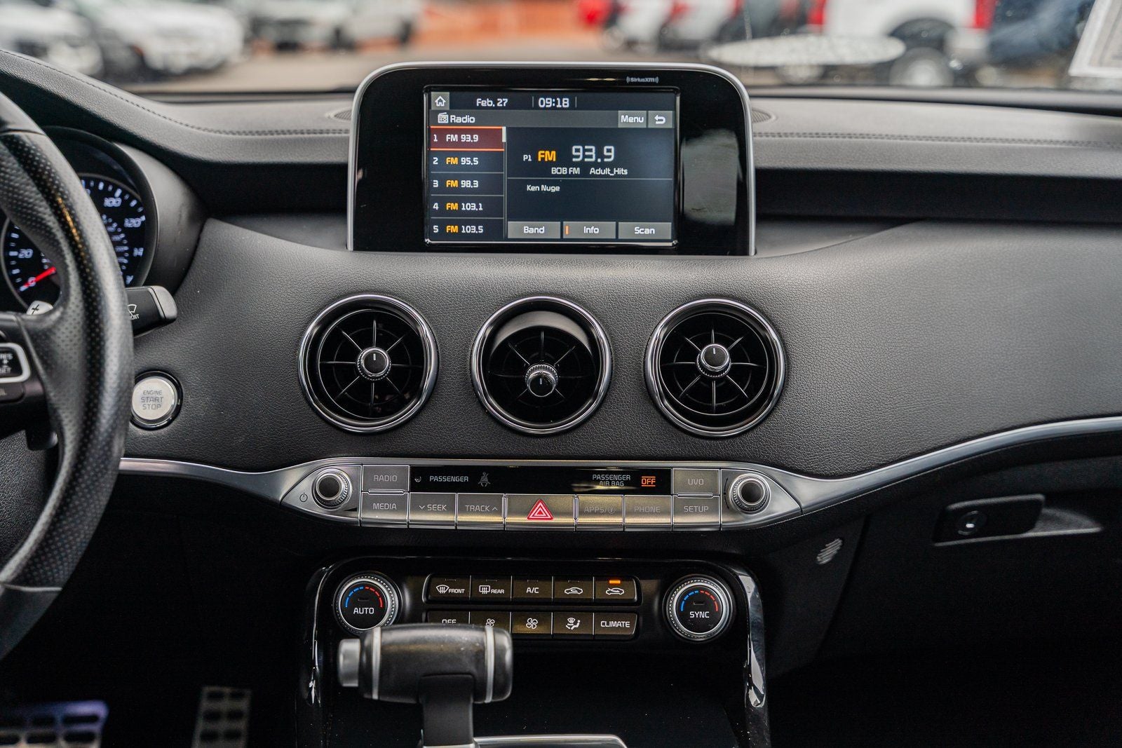 This vehicle comes equipped with 4-Wheel Disc Brakes, 6 Speakers, ABS brakes, Air Conditioning, Alloy wheels, AM/FM radio: SiriusXM, Anti-whiplash front head restraints, Apple CarPlay & Android Auto, Auto-dimming Rear-View mirror, Automatic temperature control, Brake assist, Bumpers: body-color, Cargo Tray, Delay-off headlights, Driver door bin, Driver vanity mirror, Dual front impact airbags, Dual front side impact airbags, EC Mirror w/Compass & HomeLink, Electronic Stability Control, Emergency communication system: UVO eServices, Exterior Parking Camera Rear, Four wheel independent suspension, Front anti-roll bar, Front Bucket Seats, Front Center Armrest, Front dual zone A/C, Front reading lights, Fully automatic headlights, Heated door mirrors, Heated Front Bucket Seats, Heated front seats, Illuminated entry, Knee airbag, Leather Seat Trim, Low tire pressure warning, Occupant sensing airbag, Outside temperature display, Overhead airbag, Overhead console, Panic alarm, Passenger door bin, Passenger vanity mirror, Power door mirrors, Power driver seat, Power steering, Power windows, Puddle Lamp, Radio: AM/FM/MP3/HD/SiriusXM Audio System, Rear air conditioning, Rear anti-roll bar, Rear seat center armrest, Rear window defroster, Remote keyless entry, Remote Start (Push-Button Start), Security system, Speed control, Speed-Sensitive Wipers, Split folding rear seat, Sport steering wheel, Steering wheel mounted audio controls, Tachometer, Telescoping steering wheel, Tilt steering wheel, Traction control, Trip computer, Turn signal indicator mirrors, Variably intermittent wipers, and Wheels: 8.0J x 18 Alloy.