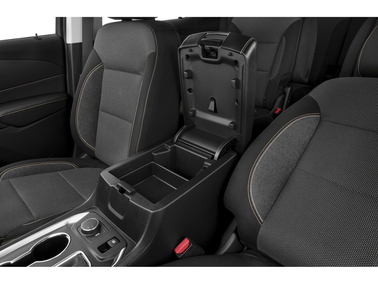 • Console, front center with 2 cup holders, covered storage bin with storage and removable tray