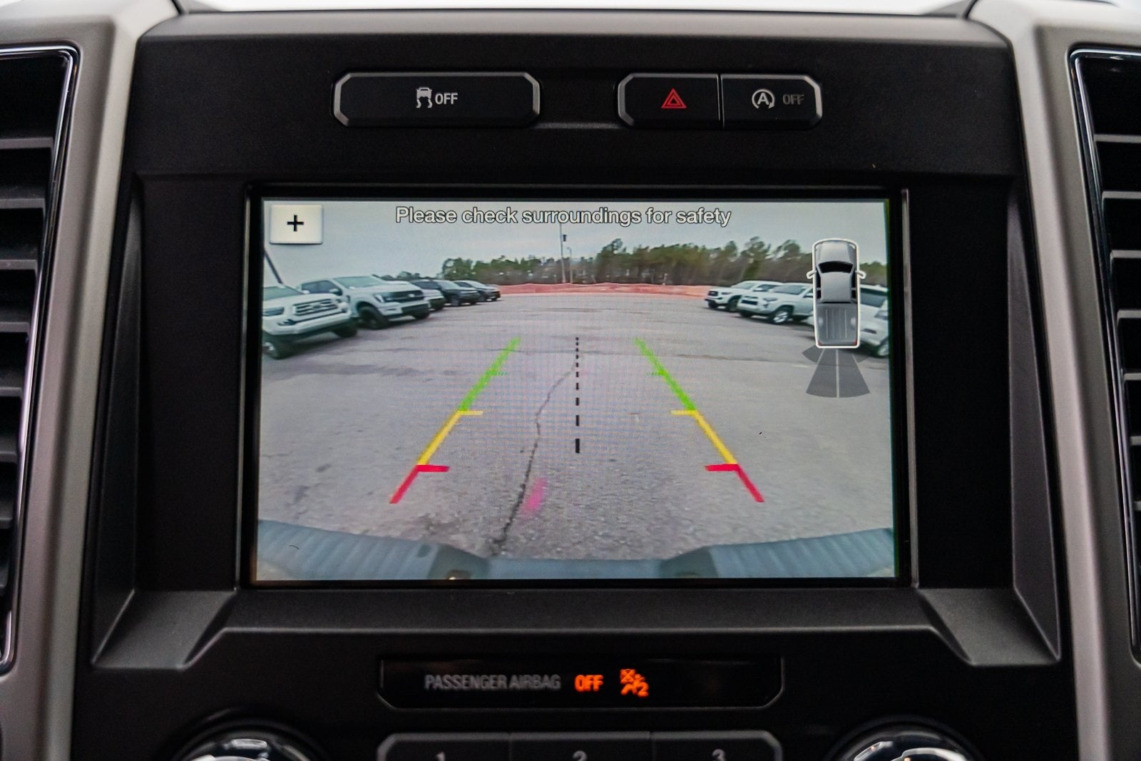This vehicle comes equipped with Equipment Group 501A Mid (110V/400W Outlet, BLIS Blind Spot Information System, and Reverse Sensing System), Lariat Sport Appearance Package (2-Bar Body-Color Grille w/4 Minor Bars, Accent-Color Angular Step Bars, Body-Color Front & Rear Bumpers, Box Side Decals, Single-Tip Chrome Exhaust, and Wheels: 18 6-Spoke Machined-Aluminum), Trailer Tow Package (Class IV Trailer Hitch Receiver, Higher-Capacity Radiator, Higher-Power Cooling Fans, Pro Trailer Backup Assist, and Upgraded Front Stabilizer Bar), Ford Blue Certified Certified, 18 Machined-Aluminum Wheels, 3.55 Axle Ratio, 4-Wheel Disc Brakes, 7 Speakers, ABS brakes, Adjustable pedals, Air Conditioning, Alloy wheels, AM/FM radio: SiriusXM, AppLink/Apple CarPlay and Android Auto, Auto-dimming door mirrors, Auto-dimming Rear-View mirror, Automatic temperature control, Brake assist, Bumpers: chrome, CD player, Compass, Delay-off headlights, Driver door bin, Driver vanity mirror, Dual front impact airbags, Dual front side impact airbags, Electronic Stability Control, Emergency communication system: SYNC 3 911 Assist, Exterior Parking Camera Rear, Front anti-roll bar, Front Center Armrest w/Storage, Front dual zone A/C, Front fog lights, Front reading lights, Front wheel independent suspension, Fully automatic headlights, Heated door mirrors, Heated front seats, Illuminated entry, Integrated Trailer Brake Controller, Leather-Trimmed 40/20/40 Front Seat, Low tire pressure warning, Memory seat, Occupant sensing airbag, Outside temperature display, Overhead airbag, Overhead console, Panic alarm, Passenger door bin, Passenger vanity mirror, Pedal memory, Power door mirrors, Power driver seat, Power passenger seat, Power steering, Power windows, Radio data system, Radio: Single-CD/SiriusXM w/7 Speakers, Rear reading lights, Rear seat center armrest, Rear step bumper, Rear window defroster, Remote keyless entry, Security system, Speed control, Speed-sensing steering, Split folding rear seat, Steering wheel mounted audio controls, SYNC 3, Tachometer, Tailgate Step w/Tailgate Lift Assist, Telescoping steering wheel, Tilt steering wheel, Traction control, Trip computer, Turn signal indicator mirrors, Twin Panel Moonroof, Variably intermittent wipers, Ventilated front seats, Voice-Activated Touchscreen Navigation System, Voltmeter, and Wheels: 20 6-Spoke Premium Painted Aluminum.