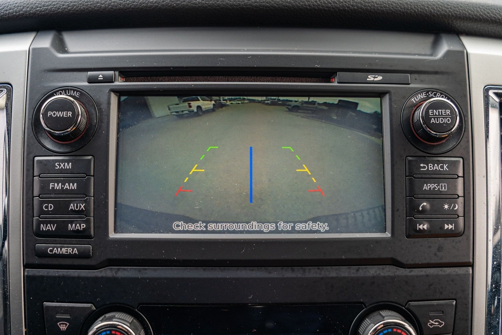 This vehicle comes equipped with SV Convenience Package (4-Pin/7-Pin Wiring Harness Connector (Rear Bumper), Auto-Dimming Rear-View Mirror, Automatic On/Off Headlights, Blind Spot Warning w/Rear Cross Traffic Alert, Chrome Interior Door Locks, Convex Spotter Mirror, Dual Zone Automatic HVAC, Front & Rear Parking Sensors, Heated Front Captain's Chairs, Intelligent Key System, Leather-Wrapped Steering Wheel, Painted Rear Bumper, Power Sliding Rear Window w/Defogger, Radio: Nissan Navigation System w/Voice Guidance, Rain Sensing Wipers, Rear Air Conditioning Vents, Receiver Hitch, Siri Eyes Free, and Universal Garage Door Opener), 4WD, 2.937 Axle Ratio, 4-Wheel Disc Brakes, 5.5' Drop-In Bed Liner, 6 Speakers, ABS brakes, Activation Disclaimer, Air Conditioning, Alloy wheels, AM/FM radio: SiriusXM, Brake assist, Bumpers: chrome, Carpeted Floor Mats w/U01, CD player, Cloth Seat Trim, Driver door bin, Driver vanity mirror, Dual front impact airbags, Dual front side impact airbags, Electronic Stability Control, Front anti-roll bar, Front Center Armrest w/Storage, Front Manual Split Bench Seat (40/20/40), Front reading lights, Front wheel independent suspension, Heated door mirrors, Illuminated entry, Leather Seat Trim, Low tire pressure warning, Occupant sensing airbag, Outside temperature display, Overhead airbag, Overhead console, Panic alarm, Passenger door bin, Passenger vanity mirror, Power door mirrors, Power steering, Power windows, Radio data system, Radio: NissanConnect AM/FM w/SiriusXM, Rear anti-roll bar, Rear Bumper Step, Rear seat center armrest, Rear step bumper, Rear window defroster, Remote keyless entry, Running Boards, Security system, Speed control, Speed-sensing steering, Speed-Sensitive Wipers, Splash Guards, Split folding rear seat, Steering wheel mounted audio controls, Tachometer, Telescoping steering wheel, Tilt steering wheel, Traction control, Trip computer, Turn signal indicator mirrors, Variably intermittent wipers, Voltmeter, and Wheels: 18 x 8 Silver Painted Alloy.
