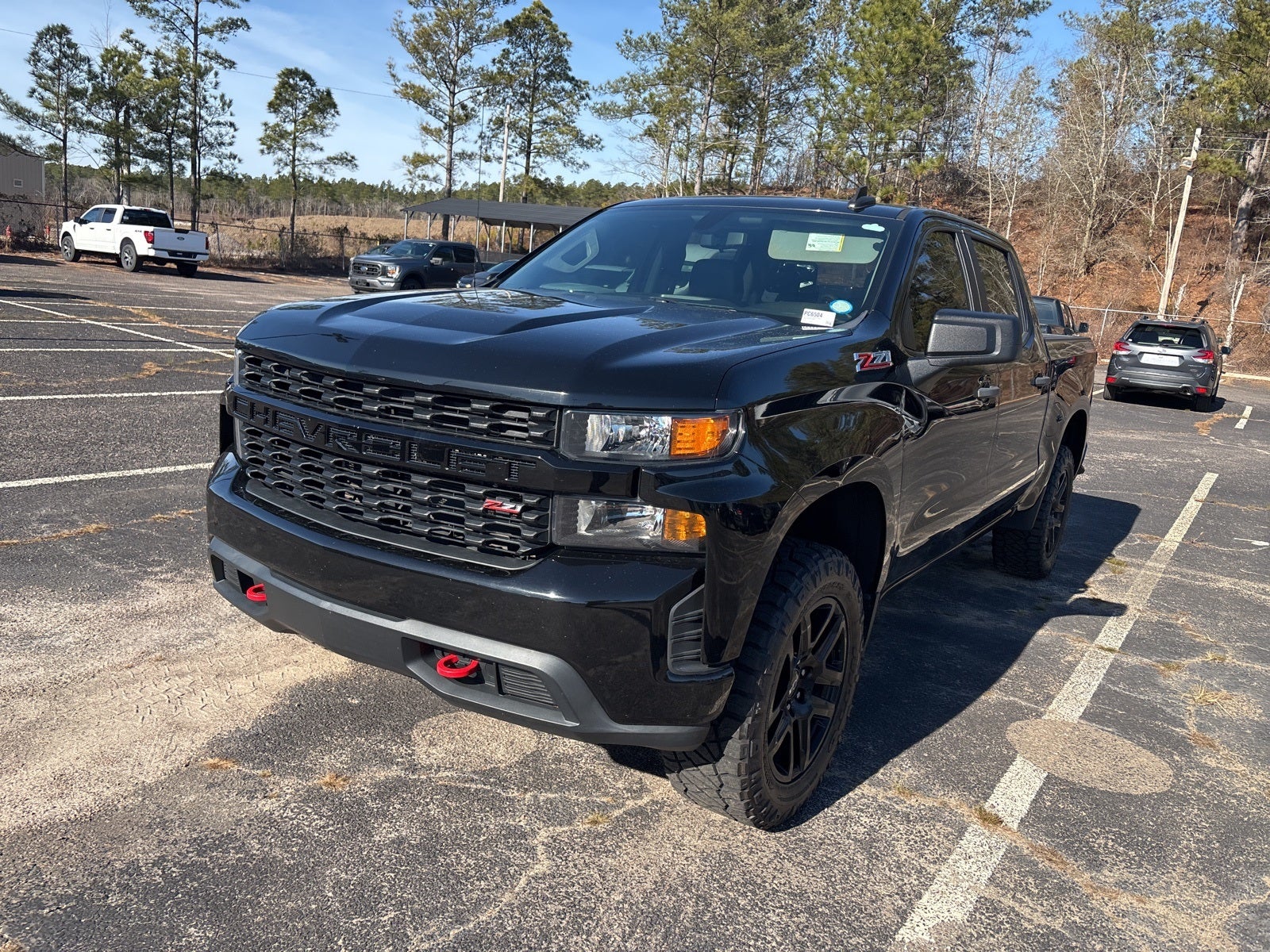 This vehicle comes equipped with Custom Convenience Package (Electric Rear-Window Defogger, EZ Lift Power Lock & Release Tailgate, LED Cargo Area Lighting, Remote Vehicle Starter System, and Theft Deterrent System (Unauthorized Entry)), Infotainment Package (4G LTE Wi-Fi Hot Spot Capable, Chevrolet Connected Access Capable, OnStar & Chevrolet Connected Services Capable, and SiriusXM Radio), Midnight Edition (All-Weather Floor Liner (LPO) (AAK), Black Dual Exhaust Tips, Chevytec Spray-On Black Bedliner, and Silver-Hammer Interior Trim Kit (LPO)), Preferred Equipment Group 2CX (170 Amp Alternator, 3.5 Diagonal Monochromatic Display, Auto-Locking Rear Differential, Bluetooth® For Phone, Color-Keyed Carpeting Floor Covering, Compass, Deep-Tinted Glass, Electronic Cruise Control, Front Rubberized Vinyl Floor Mats, High Gloss Black Grille, Manual Tilt Wheel Steering Column, Performance Red Recovery Hooks, Power Door Locks, Power Front Windows w/Driver Express Up/Down, Power Front Windows w/Passenger Express Down, Power Rear Windows w/Express Down, Rear 60/40 Folding Bench Seat (Folds Up), Rear Rubberized-Vinyl Floor Mats, Remote Keyless Entry, and Standard Tailgate), Suspension Package (Heavy-Duty Air Filter and Hill Descent Control), Trailering Package (Hitch Guidance), 6-Speed Automatic Electronic with Overdrive, 4WD, Black Cloth, 3.42 Rear Axle Ratio, 4-Wheel Disc Brakes, 40/20/40 Front Split Bench Seat, 6 Speakers, ABS brakes, Air Conditioning, Alloy wheels, AM/FM radio: SiriusXM, Apple CarPlay/Android Auto, Auxiliary External Transmission Oil Cooler, Brake assist, Cloth Seat Trim, Delay-off headlights, Driver door bin, Driver vanity mirror, Dual Exhaust w/Polished Outlets, Dual front impact airbags, Dual front side impact airbags, Electronic Stability Control, Front anti-roll bar, Front Center Armrest w/Storage, Front reading lights, Front wheel independent suspension, Fully automatic headlights, Heated door mirrors, Illuminated entry, Low tire pressure warning, Not Equipped w/Active Fuel Management, Occupant sensing airbag, Off-Road Suspension w/2 Lift, Outside temperature display, Overhead airbag, Overhead console, Panic alarm, Passenger door bin, Passenger vanity mirror, Polished Exhaust Tip, Power door mirrors, Power steering, Power windows, Premium audio system: Chevrolet Infotainment 3, Radio data system, Radio: Chevrolet Infotainment 3 System, Rear reading lights, Rear step bumper, Rear window defroster, Remote keyless entry, Security system, Speed control, Speed-sensing steering, Split folding rear seat, Tachometer, Tilt steering wheel, Traction control, Trip computer, Variably intermittent wipers, Voltmeter, Wheels: 18 x 8.5 Black Painted Aluminum, and Wheels: 20 x 9 High Gloss Black Painted Alum.