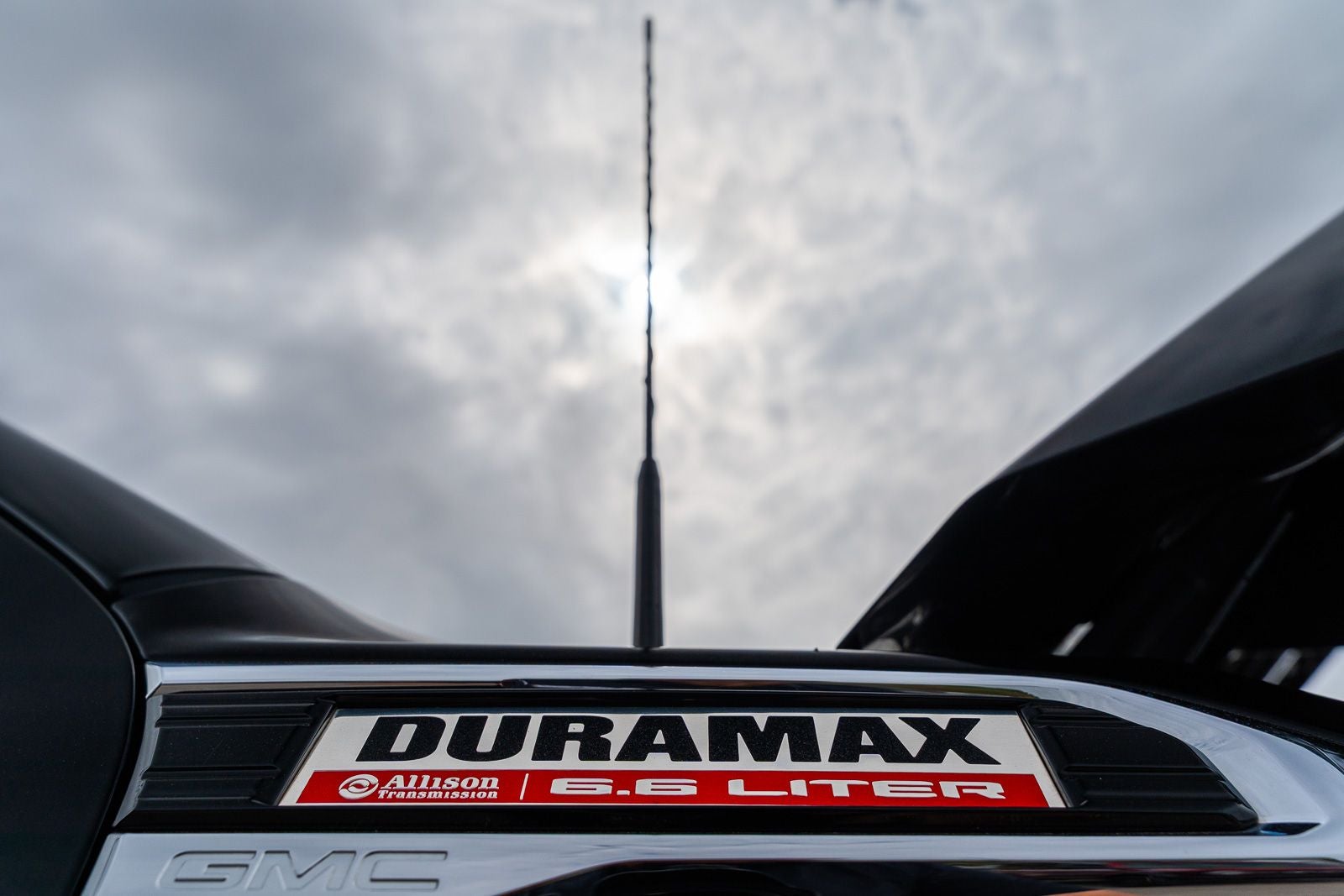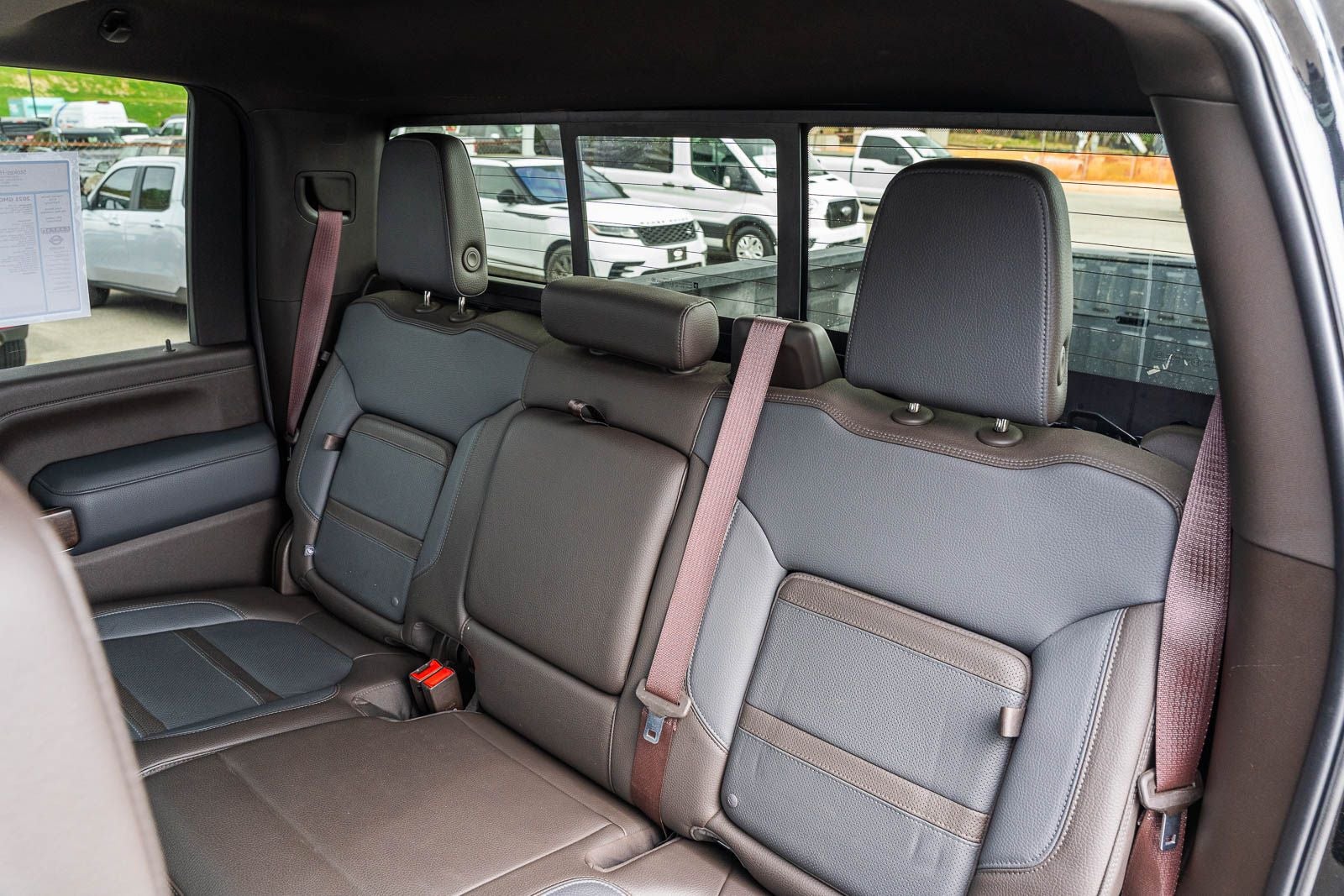 This vehicle comes equipped with Denali Ultimate Package (Power Sunroof), Driver Alert Package I (Lane Change Alert w/Side Blind Zone Alert, Rear Cross Traffic Alert, and Ultrasonic Front & Rear Park Assist), Driver Alert Package II (Automatic Emergency Braking, Following Distance Indicator, Forward Collision Alert, IntelliBeam Automatic High Beam On/Off, and Lane Departure Warning System), Gooseneck/5th Wheel Prep Package, Hitch Package (LPO), Preferred Equipment Group 5SA (12-Volt Rear Auxiliary Power Outlet, 120-Volt Bed Mounted Power Outlet, 120-Volt Instrument Panel Power Outlet, 2 USB Ports (First Row), 2 USB Ports Inside Console, 2-Speed Active Transfer Case, 2nd Row Dual USB Charge-Only Ports, 2nd Row Heated Outboard Seats, 4G LTE Wi-Fi Hotspot Capable, 6 Rectangular Chromed Tubular Assist Steps, Bed View Camera w/2 Trailer Camera Provisions, Chrome Recovery Hooks, Compass Located In Instrument Cluster, Deep-Tinted Glass, Electric Rear-Window Defogger, Electrical Lock Control Steering Column, Floor-Mounted Center Console, GMC Connected Access Capable, HD Rear Vision Camera, HD Surround Vision w/2 Trailer View Camera Provisions, Heated Driver & Front Outboard Passenger Seats, Hitch Guidance w/Hitch View, In-Vehicle Trailering System App, Integrated Trailer Brake Controller, Keyless Open & Start, LED Cargo Area Lighting, Manual Tilt-Wheel/Telescoping Steering Column, OnStar & GMC Connected Services Capable, Polished Exhaust Tip, Power Door Locks, Power Front Passenger Windows w/Express Up/Down, Power Front Windows w/Driver Express Up/Down, Power Rear Windows w/Express Down, Power Sliding Rear Window w/Defogger, ProGrade Trailering System, Remote Vehicle Starter System, Safety Alert Seat, Signature Denali Grille w/High Gloss Black Mesh, Spray-On Pickup Bed Liner w/Denali Logo, Steering Wheel Audio Controls, Unauthorized Entry Theft-Deterrent System, Universal Home Remote, Ventilated Driver & Front Passenger Seats, Wireless Charging, and Wireless Phone Projection), Technology Package (Auto-Dimming Inside Rearview Mirror w/Camera and Multicolor 15 Diagonal Head-Up Display), Ford Blue Certified Eligible Certified, 10-Speed Automatic, 4WD, Dark Walnut/Dark Ash Grey Leather, 10-Way Power Driver Seat Adjuster w/Lumbar, 10-Way Power Passenger Seat Adjuster w/Lumbar, 220 Amp Alternator, 4-Wheel Disc Brakes, 7 Speakers, ABS brakes, Air Conditioning, All-Weather Floor Liners (LPO), Alloy wheels, AM/FM radio: SiriusXM with 360L, Apple CarPlay/Android Auto, Auto High-beam Headlights, Auto-dimming door mirrors, Auto-dimming Rear-View mirror, Automatic temperature control, Bose Premium 7 Speaker Sound System, Brake assist, Bumpers: body-color, Compass, Delay-off headlights, Driver door bin, Driver Memory, Driver vanity mirror, Dual front impact airbags, Dual front side impact airbags, Electronic Stability Control, Engine Block Heater, Exhaust Brake, Forge Perforated Leather-Appointed Seat Trim, Front anti-roll bar, Front Bucket Seats, Front Center Armrest, Front dual zone A/C, Front fog lights, Front License Plate Kit, Front reading lights, Front wheel independent suspension, Fully automatic headlights, Garage door transmitter, Genuine wood console insert, Genuine wood door panel insert, HD Radio, Heated door mirrors, Heated front seats, Heated rear seats, Heated steering wheel, Heavy-Duty 80 Amp Battery, High Idle Switch, Illuminated entry, Low tire pressure warning, Memory seat, Navigation System, Occupant sensing airbag, Outside temperature display, Overhead airbag, Overhead console, Panic alarm, Passenger door bin, Passenger vanity mirror, Pickup Bed, Power door mirrors, Power driver seat, Power passenger seat, Power steering, Power windows, Power-Retractable Assist Steps, Premium audio system: Premium GMC Infotainment System, Radio: AM/FM w/Prem GMC Infotainment System & Navi, Rear reading lights, Rear seat center armrest, Rear step bumper, Rear window defroster, Remot