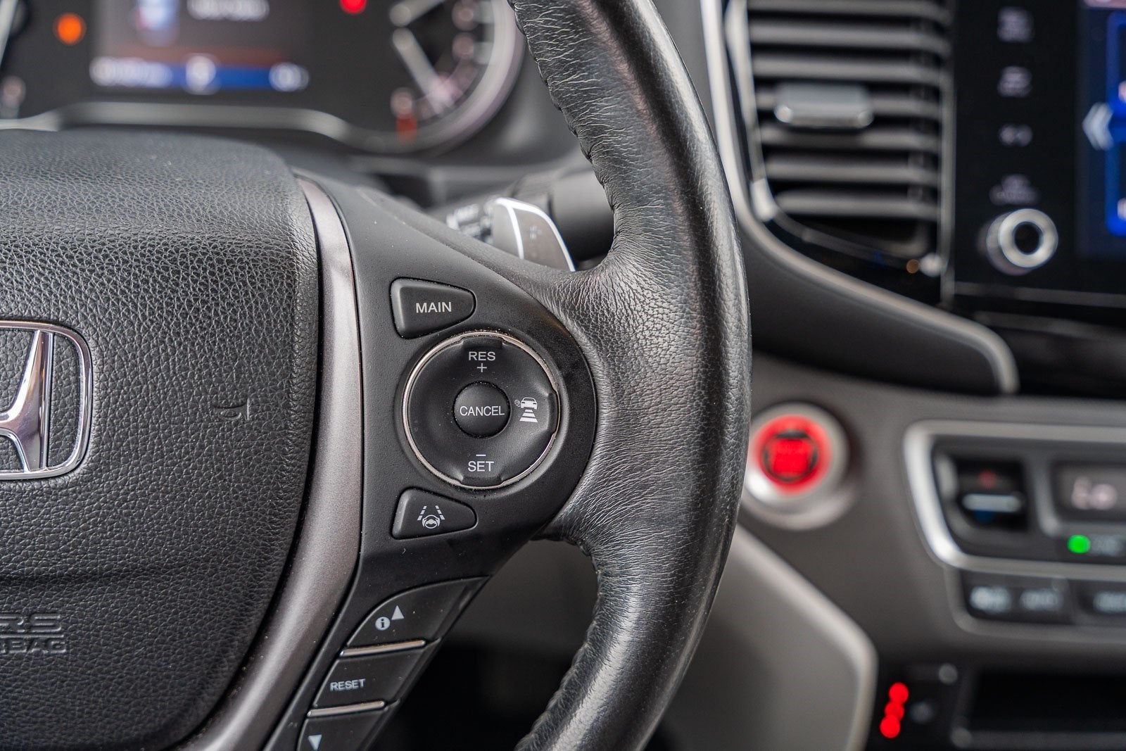 This vehicle comes equipped with Leather, 4-Wheel Disc Brakes, 4.33 Axle Ratio, 8 Speakers, ABS brakes, Air Conditioning, Alloy wheels, AM/FM radio: SiriusXM, Apple CarPlay/Android Auto, Auto High-beam Headlights, Auto-dimming Rear-View mirror, Automatic temperature control, Blind Spot Information (BSI) System warning, Bluetooth® Hands-Free Link, Brake assist, Bumpers: body-color, Compass, Delay-off headlights, Driver door bin, Driver vanity mirror, Driver's Seat Mounted Armrest, Dual front impact airbags, Dual front side impact airbags, Electronic Stability Control, Exterior Parking Camera Rear, Forward collision: Collision Mitigation Braking System (CMBS) + FCW mitigation, Four wheel independent suspension, Front anti-roll bar, Front Bucket Seats, Front dual zone A/C, Front fog lights, Front reading lights, Fully automatic headlights, Garage door transmitter: HomeLink, Heated door mirrors, Heated Front Bucket Seats, Heated front seats, Heated steering wheel, Honda Satellite-Linked Navigation System, Illuminated entry, Leather Seat Trim, Low tire pressure warning, Memory seat, Navigation system: Honda Satellite-Linked Navigation System, Occupant sensing airbag, Outside temperature display, Overhead airbag, Overhead console, Panic alarm, Passenger door bin, Passenger seat mounted armrest, Passenger vanity mirror, Power door mirrors, Power driver seat, Power moonroof, Power passenger seat, Power steering, Power windows, Radio data system, Radio: AM/FM/MP3 Premium Audio System, Rear air conditioning, Rear anti-roll bar, Rear reading lights, Rear seat center armrest, Rear step bumper, Rear window defroster, Remote keyless entry, Security system, SiriusXM, Speed control, Speed-sensing steering, Split folding rear seat, Steering wheel mounted audio controls, Tachometer, Telescoping steering wheel, Tilt steering wheel, Traction control, Trip computer, Turn signal indicator mirrors, Variably intermittent wipers, and Wheels: 18 Exclusive Pewter Gray Alloy.