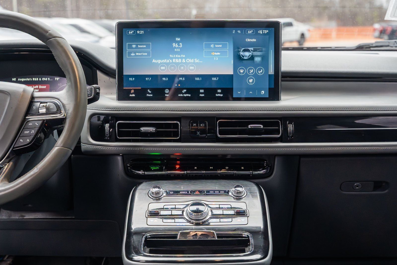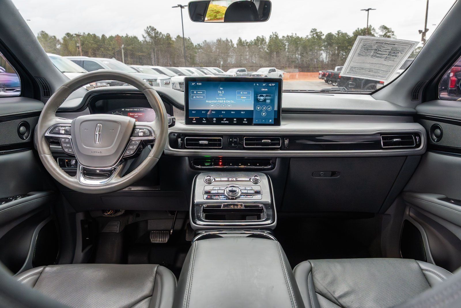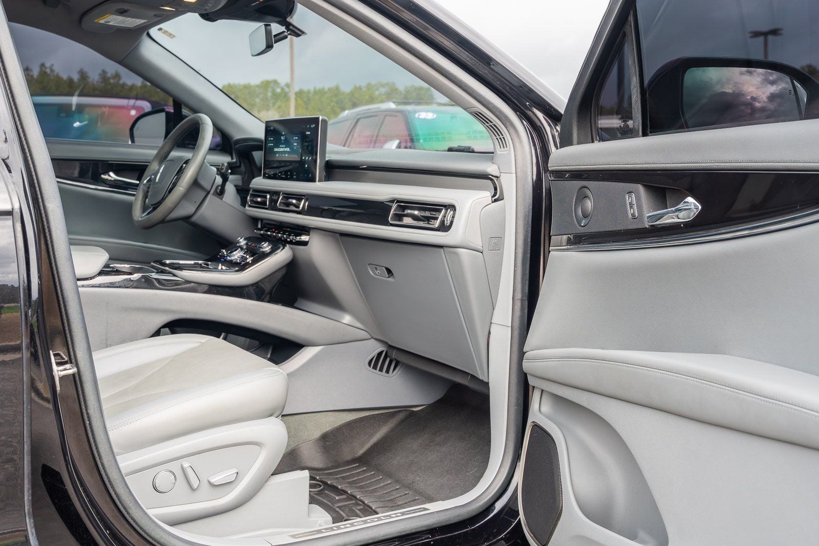 This vehicle comes equipped with Cargo Utility Package (110V/150W AC Power Outlet, Cargo Compartment w/Reversible Mat, Interior Cargo Cover, Molded Plastic Storage Bins, and Rear Cargo Management System), Equipment Group 200A, Monochromatic Package (20 Wheels, Black Lower Grille w/Painted Black Accent Trim, Body-Color Painted Nautilus Badging, Unique Body-Color Mesh Upper Grille, and Wheels: 20 Black Aluminum), 13 Speakers, 3.80 Axle Ratio, 4-Wheel Disc Brakes, ABS brakes, Air Conditioning, Alloy wheels, AM/FM radio: SiriusXM with 360L, Auto High-beam Headlights, Auto tilt-away steering wheel, Auto-dimming door mirrors, Auto-dimming Rear-View mirror, Automatic temperature control, Brake assist, Bumpers: body-color, Compass, Delay-off headlights, Driver door bin, Driver vanity mirror, Dual front impact airbags, Dual front side impact airbags, Electronic Stability Control, Emergency communication system: 911 Assist, Four wheel independent suspension, Front anti-roll bar, Front Bucket Seats, Front Center Armrest w/Storage, Front dual zone A/C, Front reading lights, Fully automatic headlights, Garage door transmitter: HomeLink, Heated door mirrors, Heated front seats, Heated rear seats, Heated steering wheel, Illuminated entry, Knee airbag, Leather steering wheel, Linear Brushed Aluminum Applique, Low tire pressure warning, Memory seat, Navigation System, Occupant sensing airbag, Outside temperature display, Overhead airbag, Overhead console, Panic alarm, Passenger door bin, Passenger vanity mirror, Power door mirrors, Power driver seat, Power Liftgate, Power moonroof: Panoramic Vista Roof, Power passenger seat, Power steering, Power windows, Prem Lthr-Trimmed Heated/Ventilated Captain Seats, Radio data system, Radio: Revel AM/FM/HD Audio System, Rain sensing wipers, Rear anti-roll bar, Rear reading lights, Rear seat center armrest, Rear window defroster, Rear window wiper, Remote keyless entry, Satin Roof Rack Side Rails w/o Crossbars, Security system, Speed control, Speed-sensing steering, Speed-Sensitive Wipers, Split folding rear seat, Spoiler, Steering wheel memory, Steering wheel mounted A/C controls, Steering wheel mounted audio controls, SYNC 4 w/Enhanced Voice Recognition, Tachometer, Telescoping steering wheel, Tilt steering wheel, Traction control, Trip computer, Turn signal indicator mirrors, Variably intermittent wipers, Ventilated front seats, and Wheels: 18 Premium Painted Bright Machined Alum.