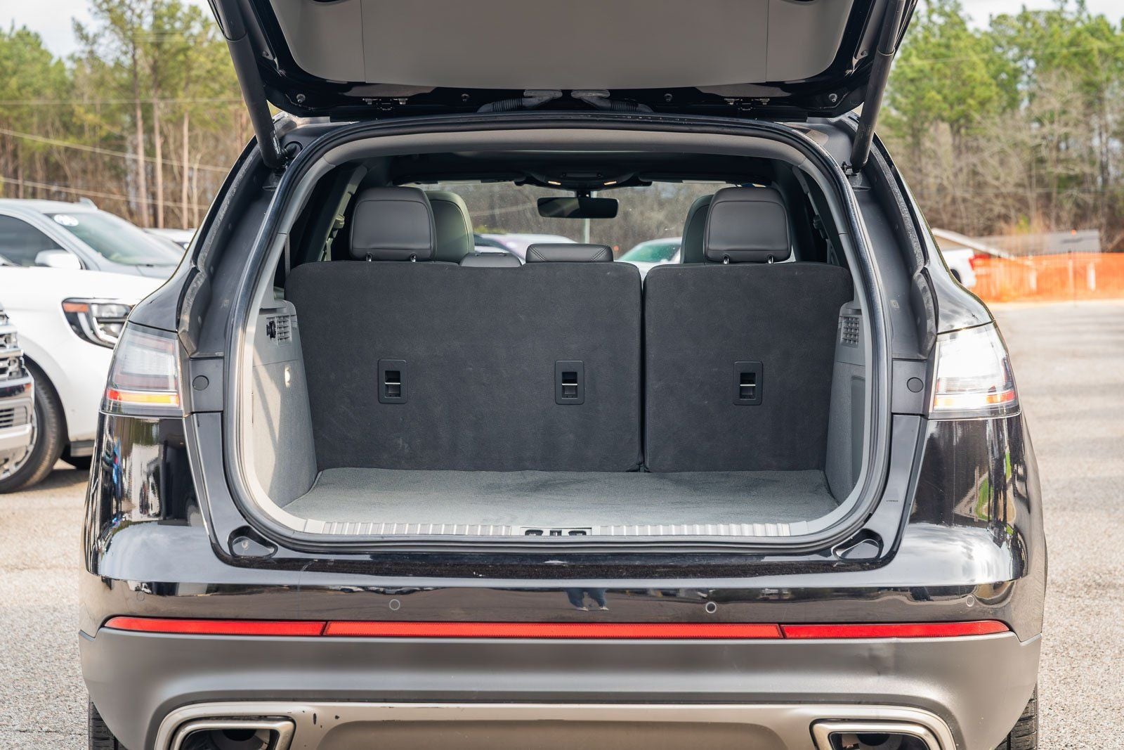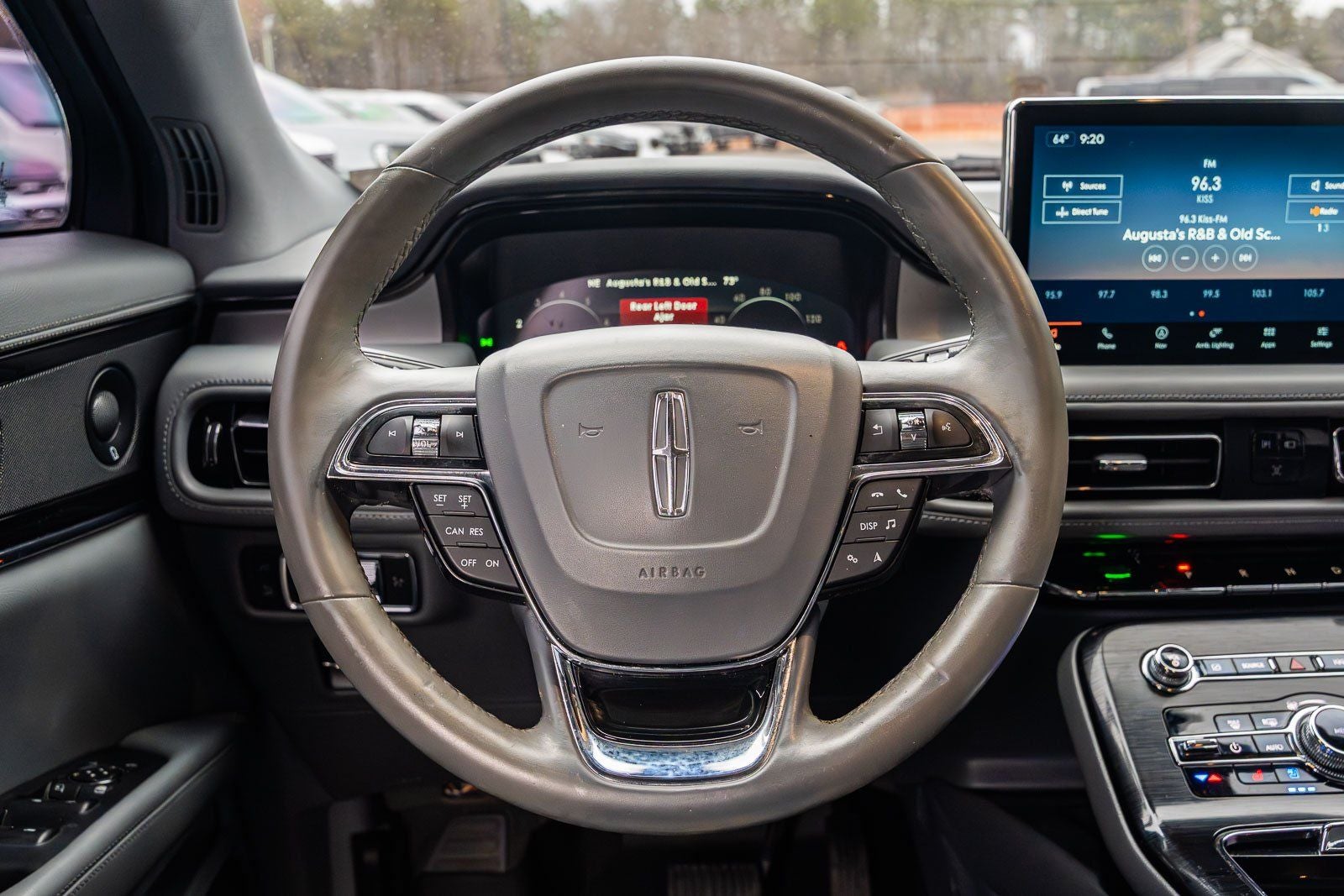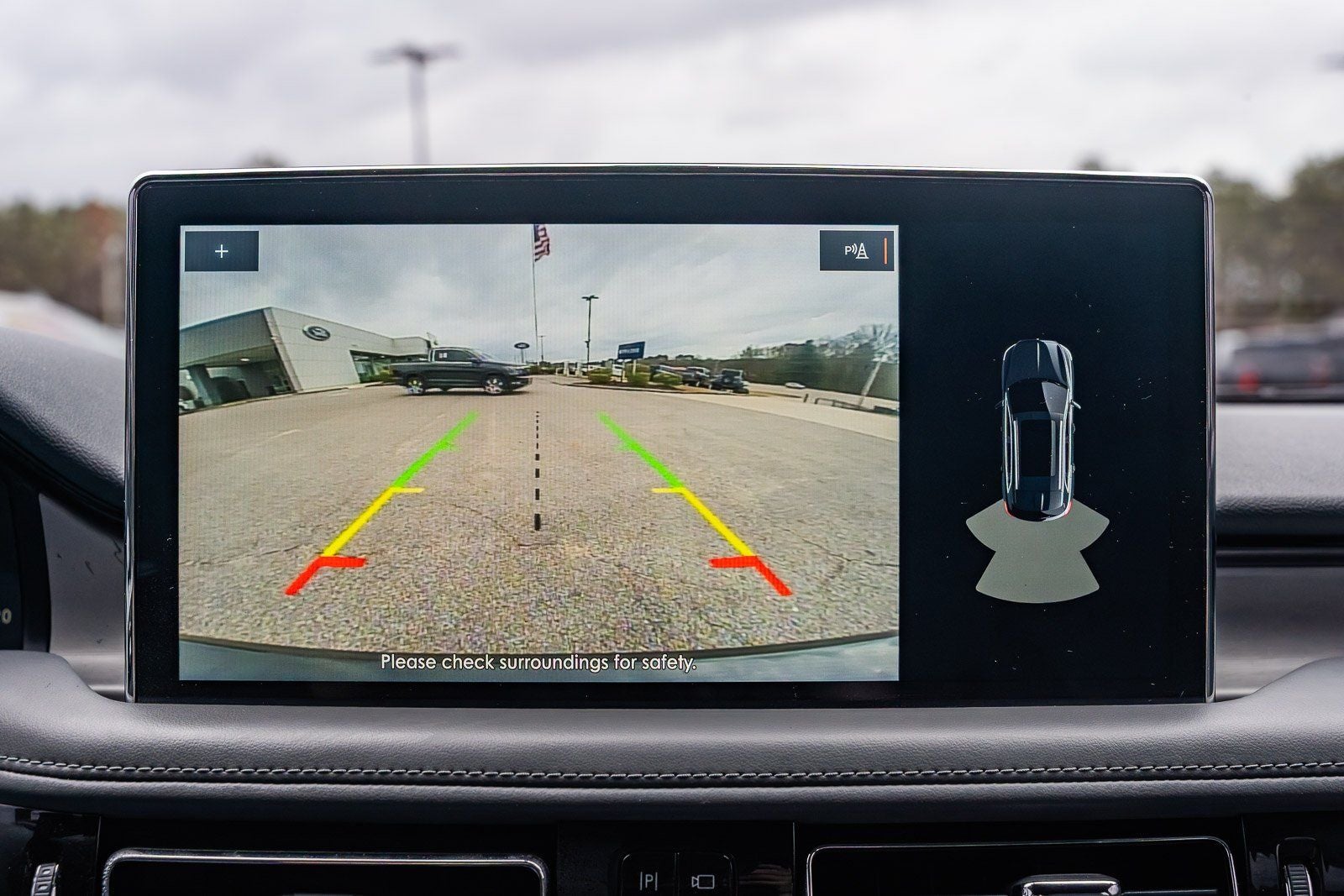 This vehicle comes equipped with Cargo Utility Package (110V/150W AC Power Outlet, Cargo Compartment w/Reversible Mat, Interior Cargo Cover, Molded Plastic Storage Bins, and Rear Cargo Management System), Equipment Group 200A, Monochromatic Package (20 Wheels, Black Lower Grille w/Painted Black Accent Trim, Body-Color Painted Nautilus Badging, Unique Body-Color Mesh Upper Grille, and Wheels: 20 Black Aluminum), 13 Speakers, 3.80 Axle Ratio, 4-Wheel Disc Brakes, ABS brakes, Air Conditioning, Alloy wheels, AM/FM radio: SiriusXM with 360L, Auto High-beam Headlights, Auto tilt-away steering wheel, Auto-dimming door mirrors, Auto-dimming Rear-View mirror, Automatic temperature control, Brake assist, Bumpers: body-color, Compass, Delay-off headlights, Driver door bin, Driver vanity mirror, Dual front impact airbags, Dual front side impact airbags, Electronic Stability Control, Emergency communication system: 911 Assist, Four wheel independent suspension, Front anti-roll bar, Front Bucket Seats, Front Center Armrest w/Storage, Front dual zone A/C, Front reading lights, Fully automatic headlights, Garage door transmitter: HomeLink, Heated door mirrors, Heated front seats, Heated rear seats, Heated steering wheel, Illuminated entry, Knee airbag, Leather steering wheel, Linear Brushed Aluminum Applique, Low tire pressure warning, Memory seat, Navigation System, Occupant sensing airbag, Outside temperature display, Overhead airbag, Overhead console, Panic alarm, Passenger door bin, Passenger vanity mirror, Power door mirrors, Power driver seat, Power Liftgate, Power moonroof: Panoramic Vista Roof, Power passenger seat, Power steering, Power windows, Prem Lthr-Trimmed Heated/Ventilated Captain Seats, Radio data system, Radio: Revel AM/FM/HD Audio System, Rain sensing wipers, Rear anti-roll bar, Rear reading lights, Rear seat center armrest, Rear window defroster, Rear window wiper, Remote keyless entry, Satin Roof Rack Side Rails w/o Crossbars, Security system, Speed control, Speed-sensing steering, Speed-Sensitive Wipers, Split folding rear seat, Spoiler, Steering wheel memory, Steering wheel mounted A/C controls, Steering wheel mounted audio controls, SYNC 4 w/Enhanced Voice Recognition, Tachometer, Telescoping steering wheel, Tilt steering wheel, Traction control, Trip computer, Turn signal indicator mirrors, Variably intermittent wipers, Ventilated front seats, and Wheels: 18 Premium Painted Bright Machined Alum.