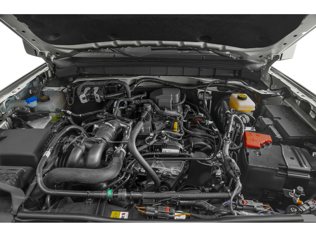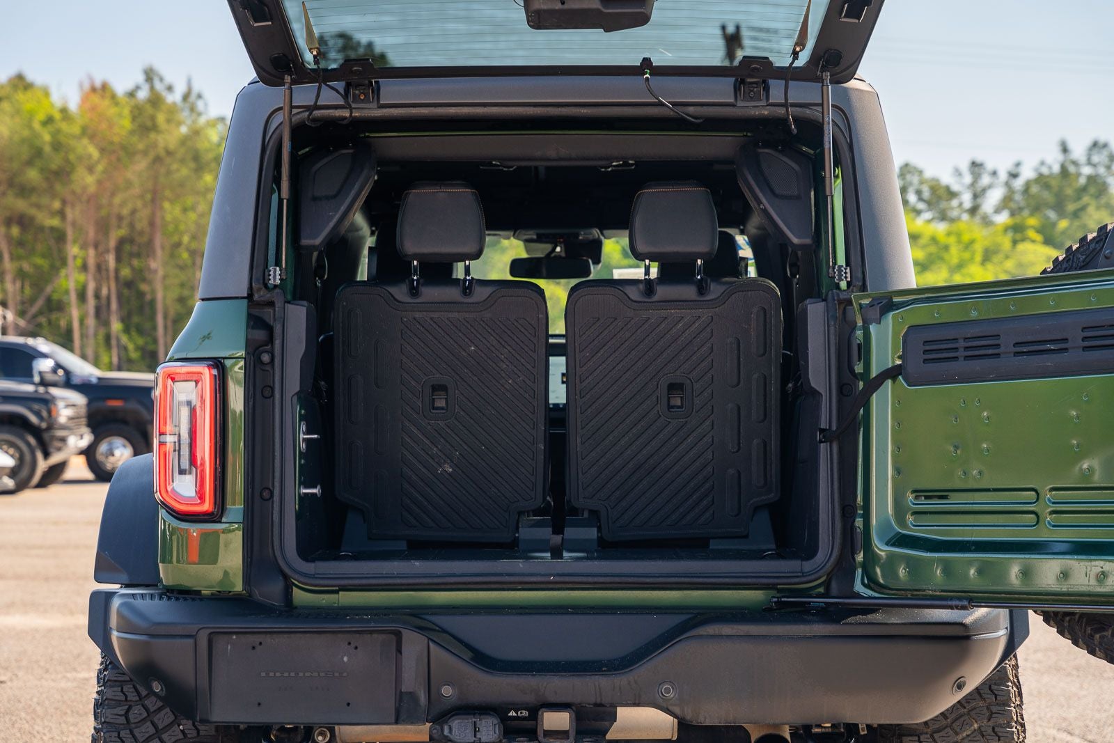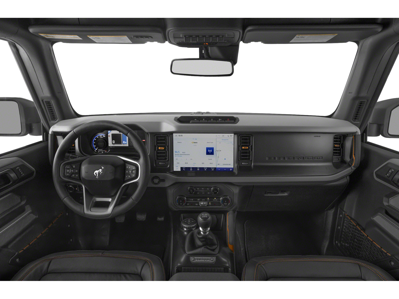 This vehicle comes equipped with Equipment Group 334A Lux Package (12 LCD Capacitive Touchscreen w/Swipe Capability, 2 Smart Charging USB Ports In Dashboard, 2-Door Intelligent Access w/Lock/Unlock, 360-Degree Camera, Adaptive Cruise Control, Additional Sound Deadening, Ambient Footwell Lighting, Auto-Dimming Interior Rear-View Mirror, Dr & Pass Illuminated Sliding Visor Vanity Mirrors, Dual-Zone Electronic Automatic Temperature Control, Enhanced Voice Recognition, Evasive Steering Assist, Front Parking Sensors, Front Row Heated Seats, Heated Steering Wheel, Information on Demand Panel, Power Outlet - Back Side of Center Floor Console, Radio: B&O Sound System by Bang & Olufsen, Rear Parking Sensors, Sideview Mirrors, Universal Garage Door Opener, and Wireless Charging Pad), Sasquatch Package (4.7 Final Drive Ratio, High Clearance Fender Flares, High Clearance Suspension, Position-Sensitive Bilstein Shock Absorbers, and Wheels: 17 Black High Gloss-Painted Aluminum), Ford Certified, 4-Wheel Disc Brakes, 4.7 Axle Ratio, 6 Speakers, ABS brakes, Air Conditioning, Alloy wheels, AM/FM radio: SiriusXM with 360L, AM/FM Stereo, Auto High-Beam Headlamps, Auto High-beam Headlights, BLIS Blind Spot Information System, Brake assist, Brush Guard, Compass, Convertible HardTop, Convertible roof lining, Delay-off headlights, Driver door bin, Driver vanity mirror, Dual front impact airbags, Dual front side impact airbags, Electronic Stability Control, Emergency communication system: 911 Assist, Exterior Parking Camera Rear, Ford Performance Heavy-Duty Modular Front Bumper, Front & Rear Floor Liners, Front anti-roll bar, Front Bucket Seats, Front Center Armrest, Front reading lights, Front Row Top Panels & Door Storage Bags, Front wheel independent suspension, Fully automatic headlights, Glass rear window, Hard Top Sound Deadening Headliner, Heated door mirrors, Illuminated entry, Integrated roll-over protection, Keyless Entry Keypad, Lane-Keeping System, Leather Shift Knob, Low tire pressure warning, Marine Grade Vinyl Bucket Seats, Occupant sensing airbag, Outside temperature display, Overhead airbag, Overhead console, Panic alarm, Passenger door bin, Passenger vanity mirror, Power door mirrors, Power steering, Power windows, Pre-Collision Assist w/Automatic Emergency Braking, Radio data system, Rear window defroster, Rear window wiper, Rear-View Camera, Remote keyless entry, Security system, SiriusXM Radio w/360L, Speed control, Split folding rear seat, Steering wheel mounted audio controls, SYNC 4, Tachometer, Telescoping steering wheel, Tilt steering wheel, Towing Capability, Traction control, Trip computer, Variably intermittent wipers, Voltmeter, and Wheels: 17 Machined Carbonized Aluminum.